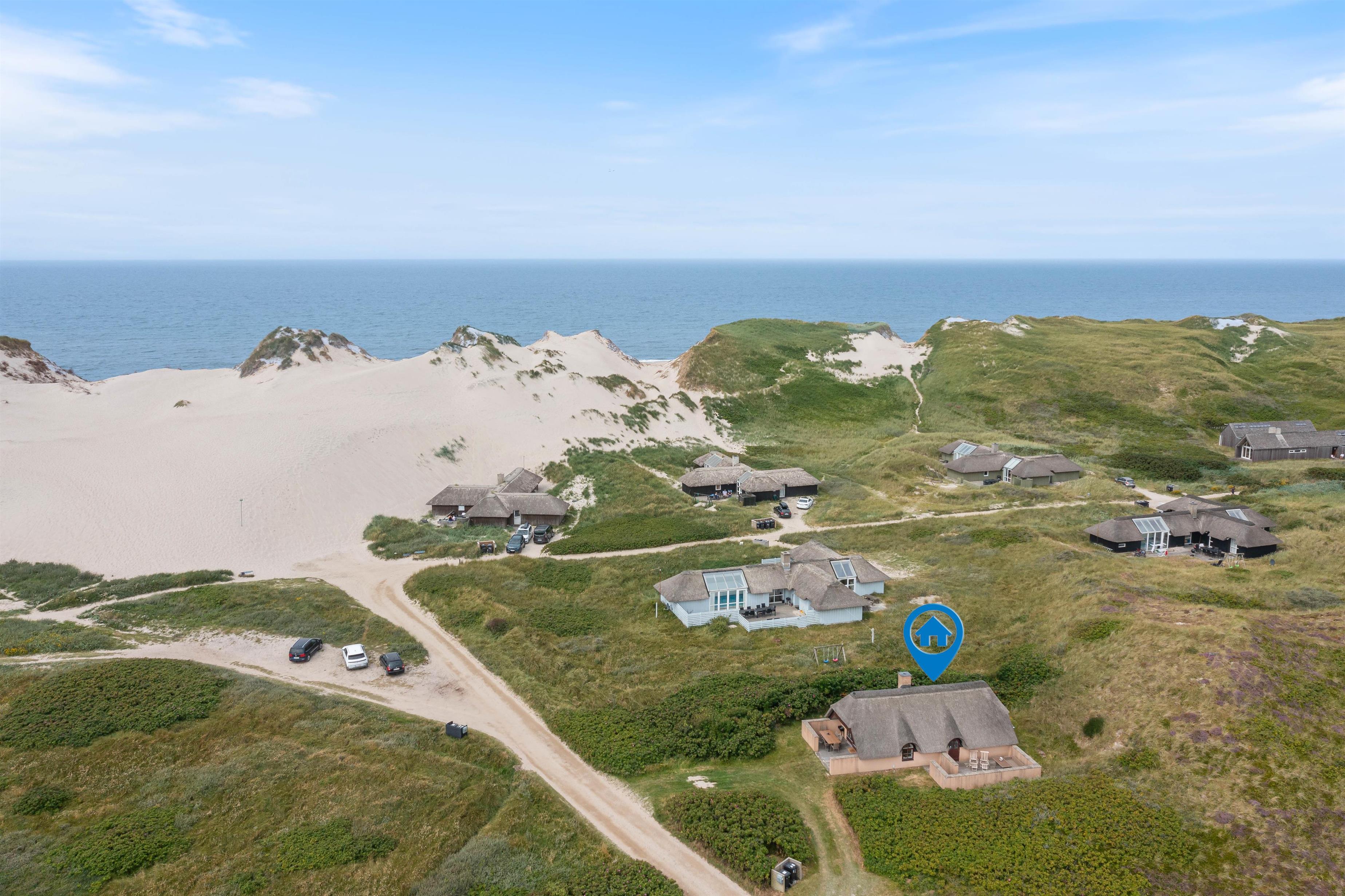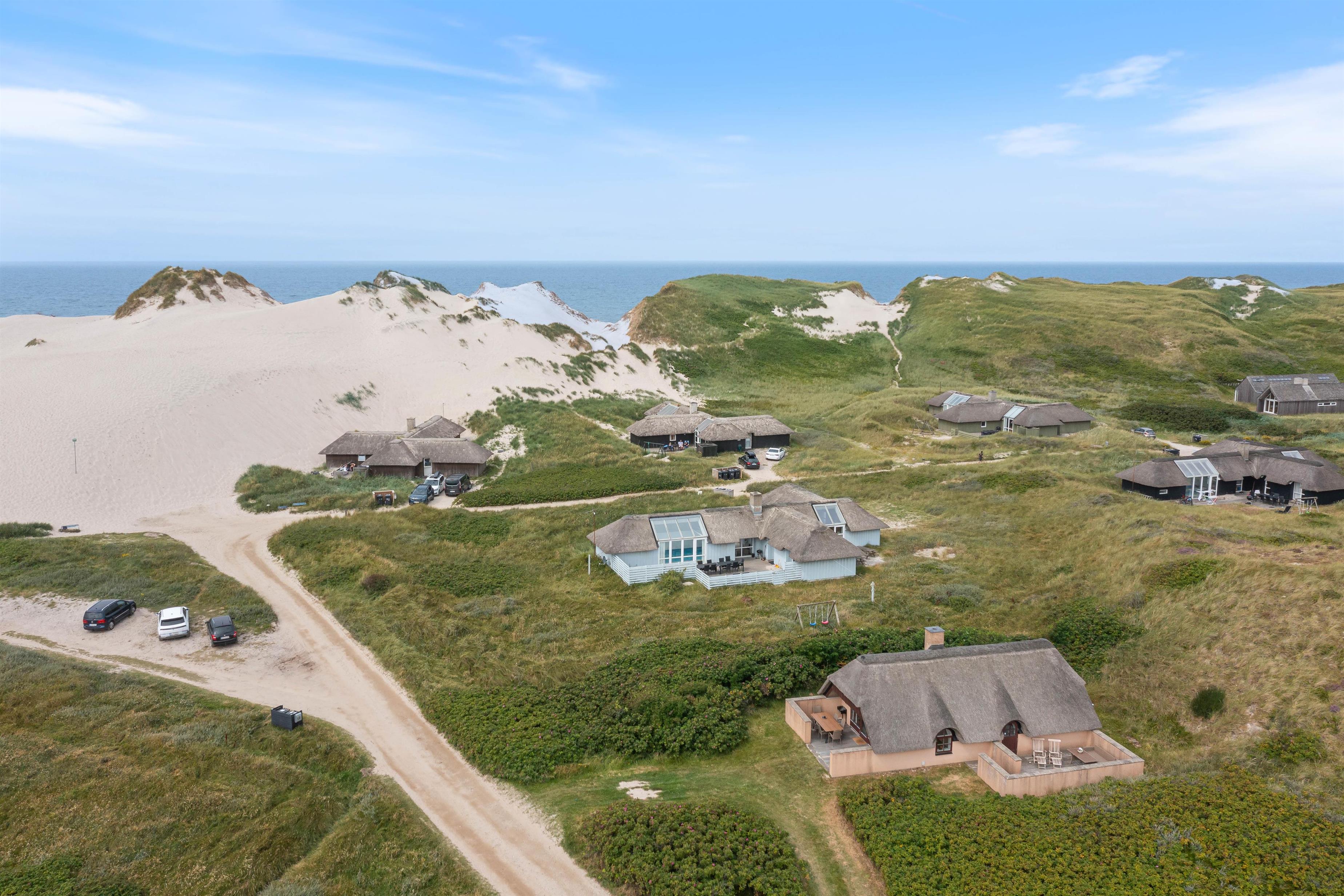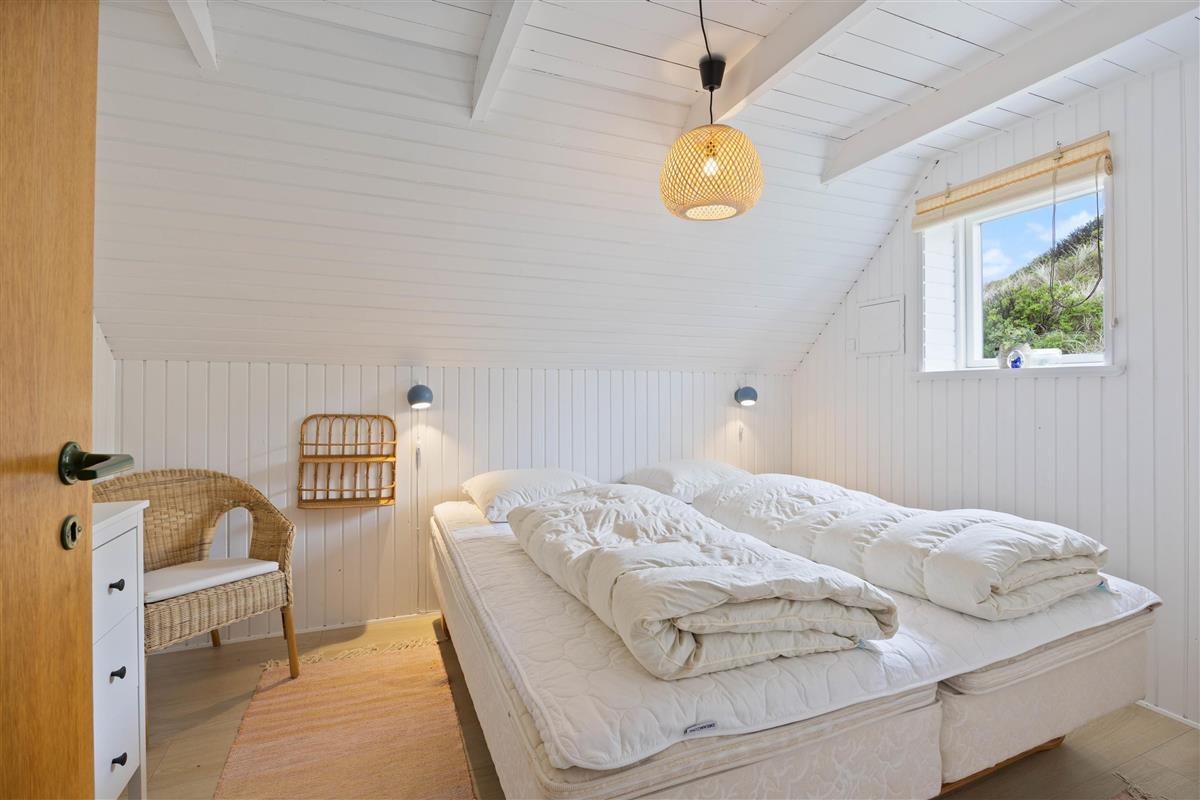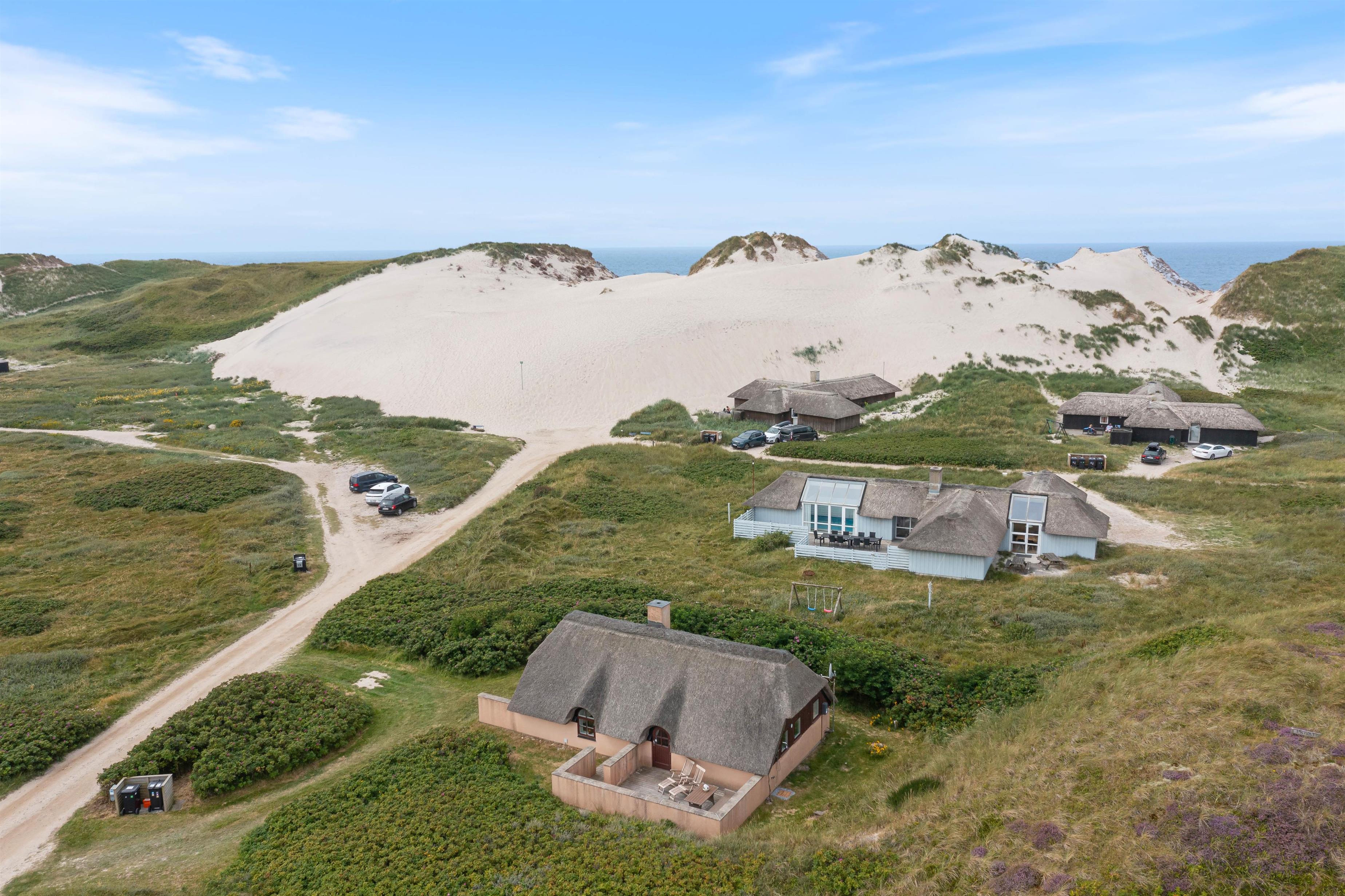 The holiday home at Vesterledevej 104 sits on a beautifully planted, hilly dune plot offering wonderful panoramic views across the neighbouring nature reserve. Thanks to its edge-of-development position, you can enjoy privacy and tranquility. The partially sheltered terrace offers garden furniture for relaxation and sun loungers for catching rays.