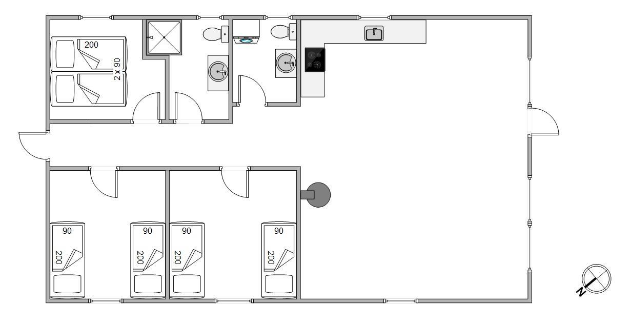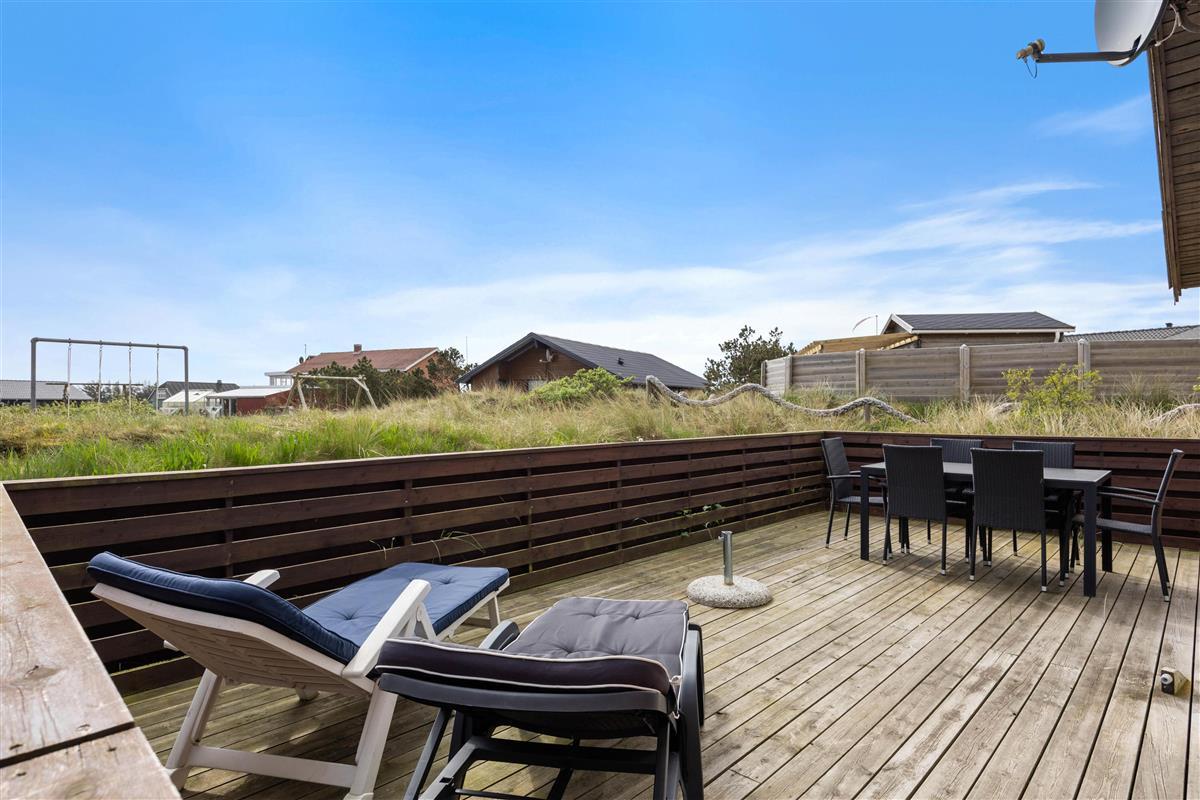 On the southern side of the holiday home, there's a wonderful enclosed terrace where you can spend many hours enjoying the fresh air and surroundings. The terrace is fully fenced, making it ideal for both toddlers and dogs.