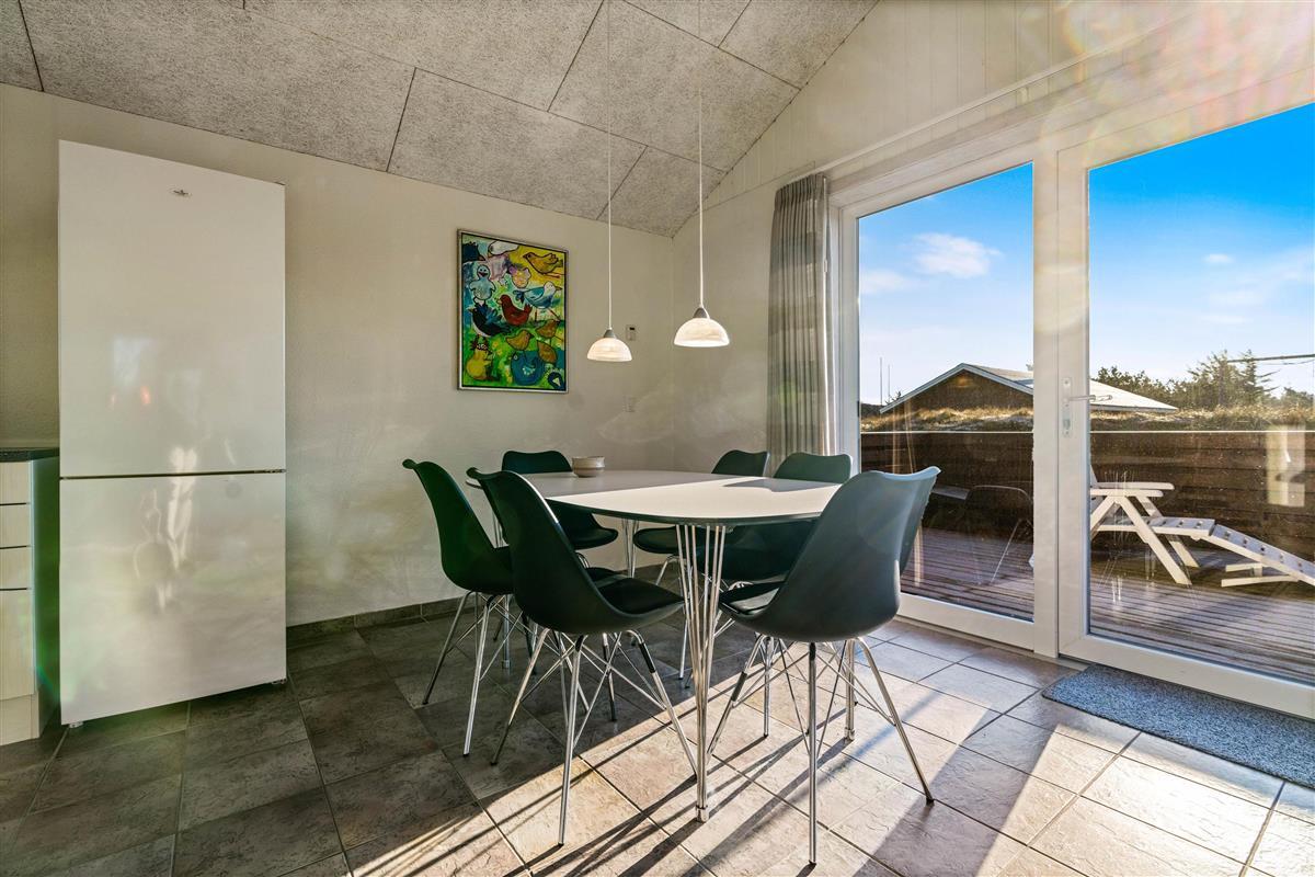 This classic holiday home is just a few hundred metres from Ringkøbing Fjord. Here you can enjoy walks in the beautiful natural surroundings – and if you'd like to experience the North Sea, it's within walking distance. Take a barefoot stroll along the beach and feel the sand between your toes.