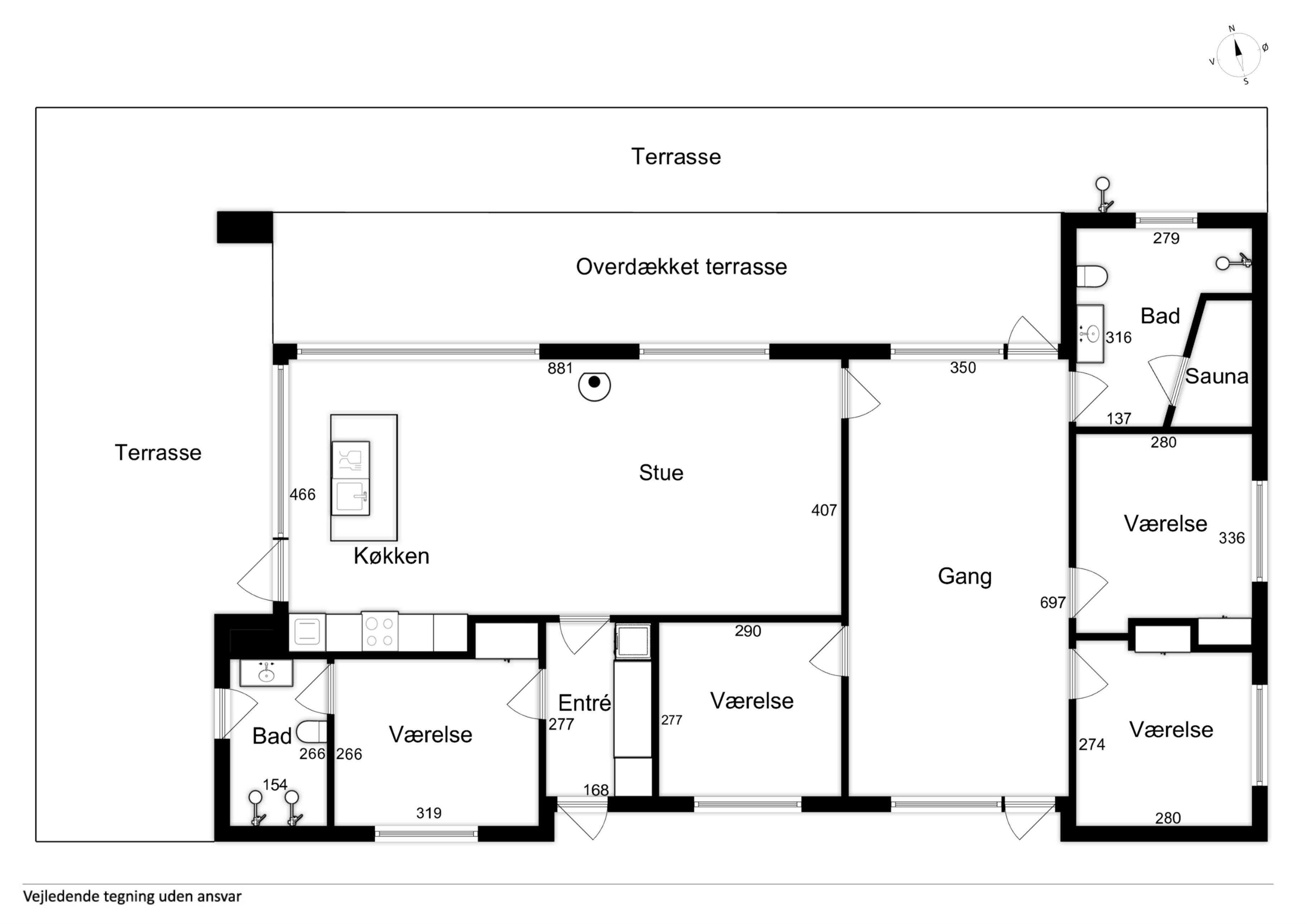 One of the holiday home's absolute advantages is the covered terrace, which is a perfect place to gather on a warm summer day. Here, you can also take a relaxing dip in the hot tub and enjoy a glass of wine under the stars on a quiet summer evening.