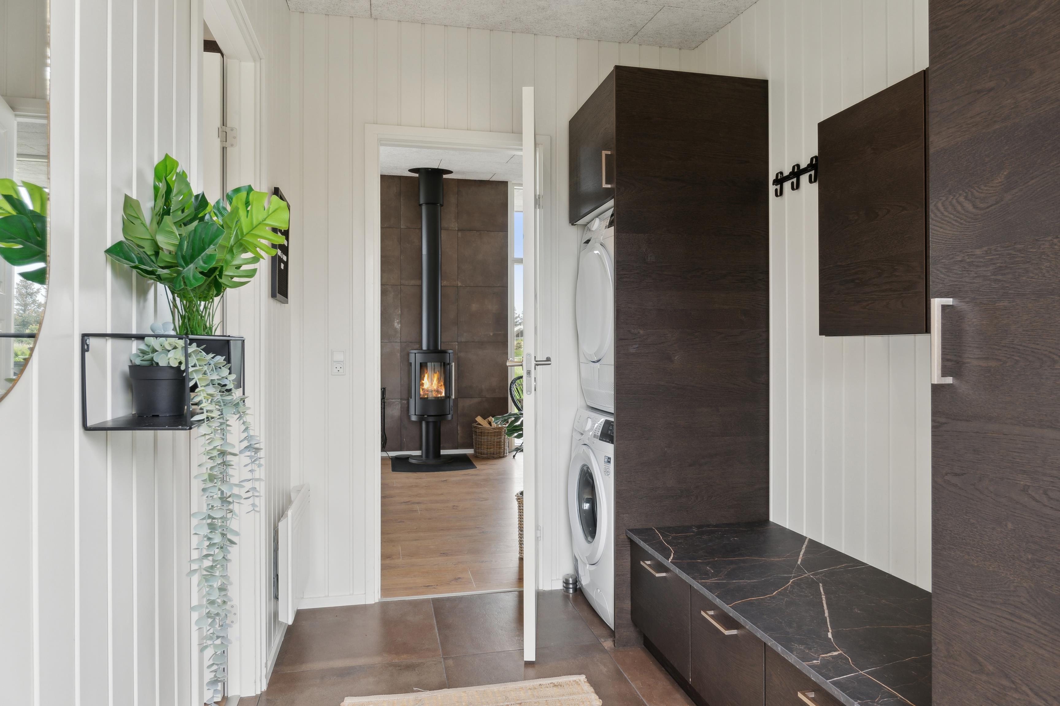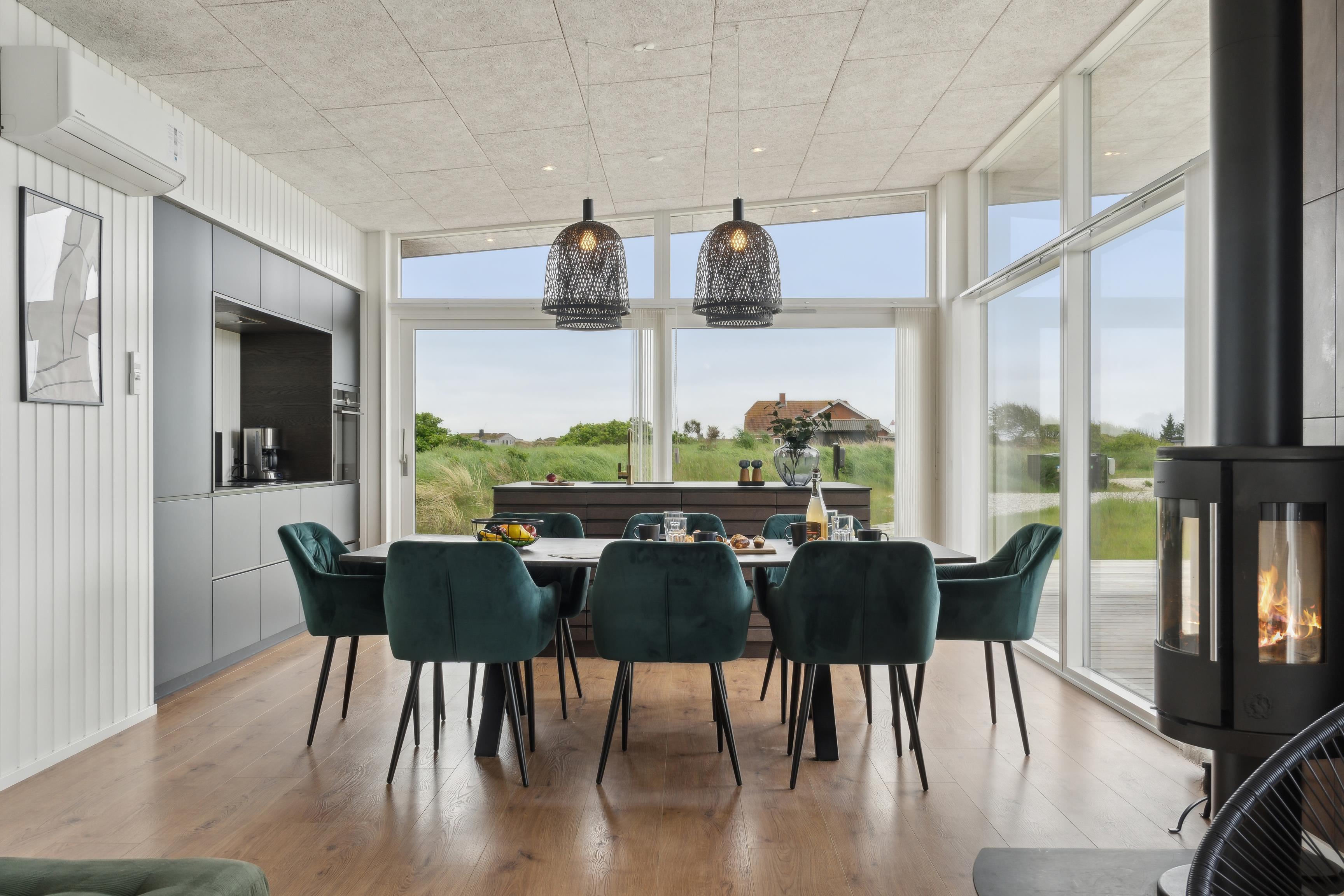 The holiday home is located on Holmsland Klit, a peninsula between the North Sea and Ringkøbing Fjord. It is only 900 meters to the beach, and the long sandy beach is ideal for long walks by the water. The children will surely love building sandcastles, collecting seashells, or flying kites!