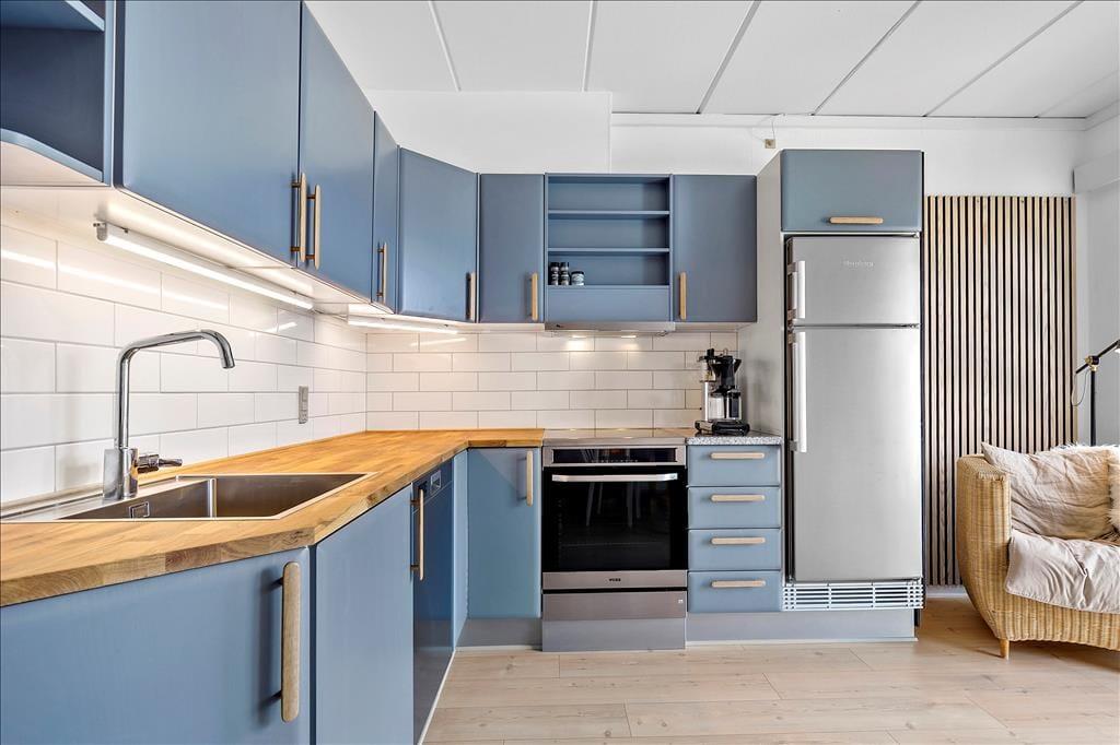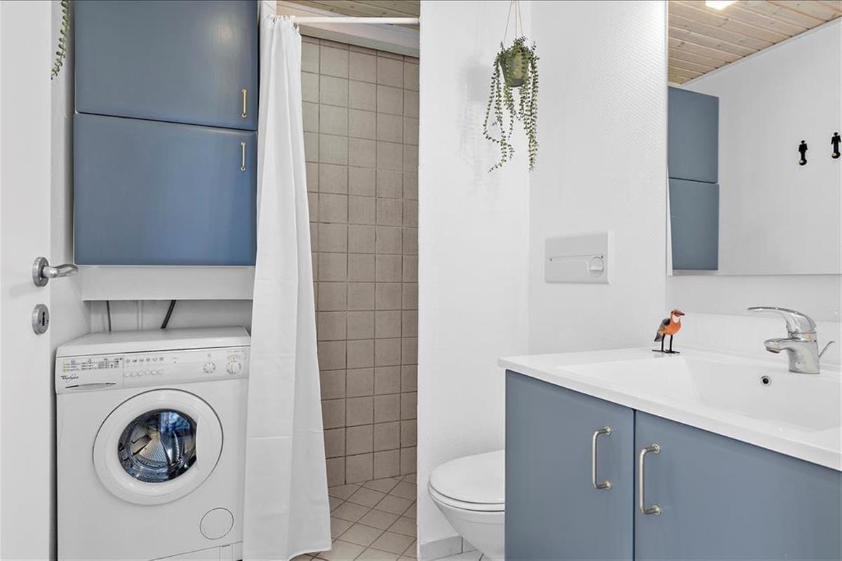 Das Innere des Hauses ist gemütlich und praktisch eingerichtet, und sowohl im Erdgeschoss als auch im ersten Stock herrscht ein guter Lichteinfall. Versammeln kannst du dich sowohl im Obergeschoss als auch im Erdgeschoss, denn auf beiden Etagen befindet sich ein Wohnbereich. Unten ist eine gut ausgestattete Küche integrierter Bestandteil des Esszimmers, und im ersten Stock kannst du es dir in den weichen Sitzmöbeln im Wohnzimmer gemütlich machen. Die Raumaufteilung bietet außerdem drei gute Schlafzimmer und ein schönes Badezimmer mit Dusche und Waschmaschine.