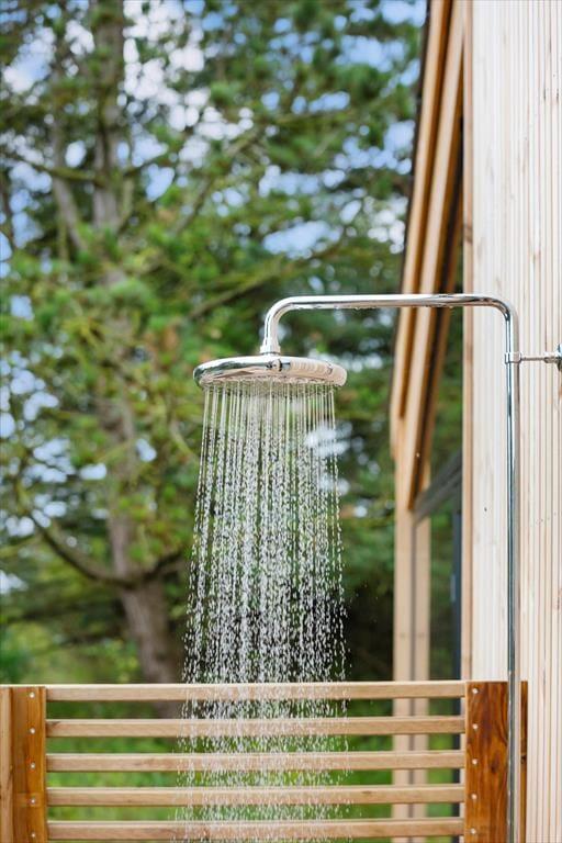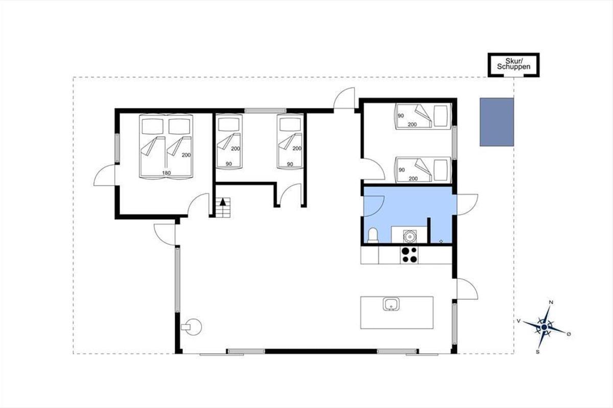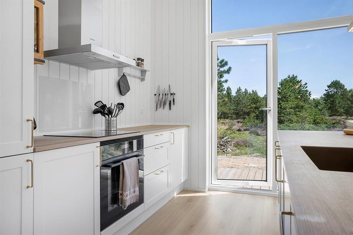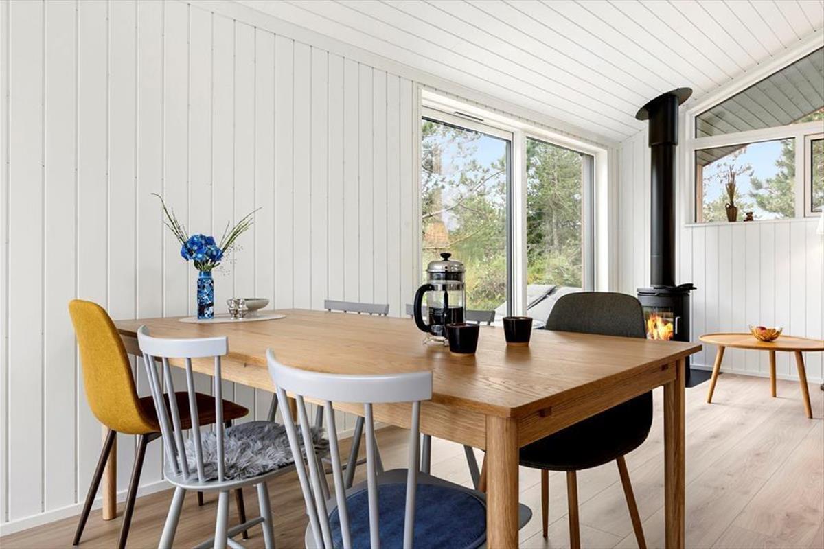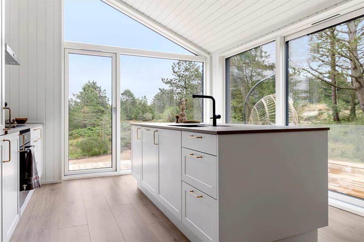 Wenn warme Temperaturen und Urlaubsstimmung herrschen, möchtest Du wahrscheinlich so viel Zeit wie möglich im Freien verbringen, und dann ist es wunderbar, inmitten eines großen und schönen Naturgrundstücks zu wohnen. Rund um das Ferienhaus erstreckt sich eine schöne Holzterrasse, auf der Du von morgens bis abends in den schönen Gartenmöbeln entspannen und Dich mit der Familie vergnügen kannst. An einem der Giebel findest Du eine Außendusche, die perfekt ist, wenn Du vom Schwimmen nach Hause kommst und Dir das Salzwasser vom Körper abspülen möchtest. Der Whirlpool im Freien hingegen ist ideal für die ruhigsten Momente des Urlaubs: Das Verweilen im warmen Wasser an einem hellen Herbsttag oder in der Dämmerung eines ruhigen Sommerabends kann leicht zu einer unvergesslichen Erinnerung werden, an die Du noch lange denken wirst.