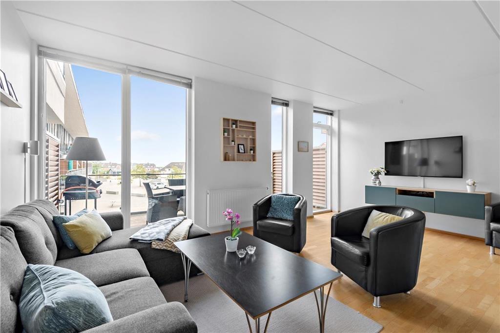 Diese ausgesprochen schöne Ferienwohnung ist Teil des modernen Gebäudekomplexes "Skansen", der unmittelbar an Havnebys Marktplatz liegt. Ein Supermarkt und mehrere interessante Geschäfte sind ebenfalls hier ansässig. Binnen kürzester Zeit erreichen Sie die verschiedenen Restaurants, das Fischgeschäft, den Golfplatz, ein Wellnesscenter, einen Fahrradverleih und vieles mehr. Von Ihrer Ferienwohnung aus spazieren Sie problemlos bis in den Hafen, in dem Sie den ein- und auslaufenden Fischkuttern zusehen oder selbst per Fähre zu einem Tagesausflug nach List auf die Insel Sylt aufbrechen können. Falls Sie lieber an Land bleiben, schlendern Sie einfach am Kai entlang und lassen den traumhaften Blick über das Wattenmeer, das nicht ohne Grund von der UNESCO zum Weltnaturerbe ernannt wurde, auf sich wirken. Rømø bietet Ihnen allerdings noch viele weitere herrliche Naturerlebnisse. Hierzu zählen unter anderem die beiden atemberaubend schönen, kilometerlangen Sandstrände Sønderstrand und Lakolk Strand, an denen Sie sich in die wogenden Nordseewellen stürzen oder anderen Strandaktivitäten und Strandsportarten nachgehen können. Falls Sie eher ein überdachtes Badeland vorziehen, sollten Sie zum beliebten Skærbækcenter auf dem Festland aufbrechen. In diesem Badeland genießen Sie als Mieter dieser Ferienwohnung kostenlosen Eintritt.