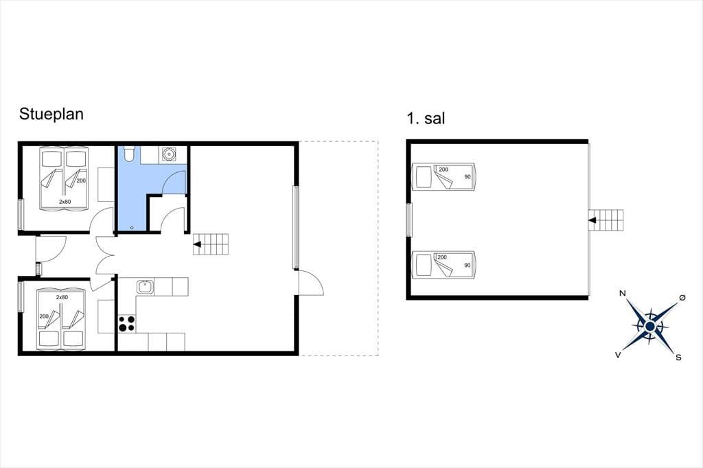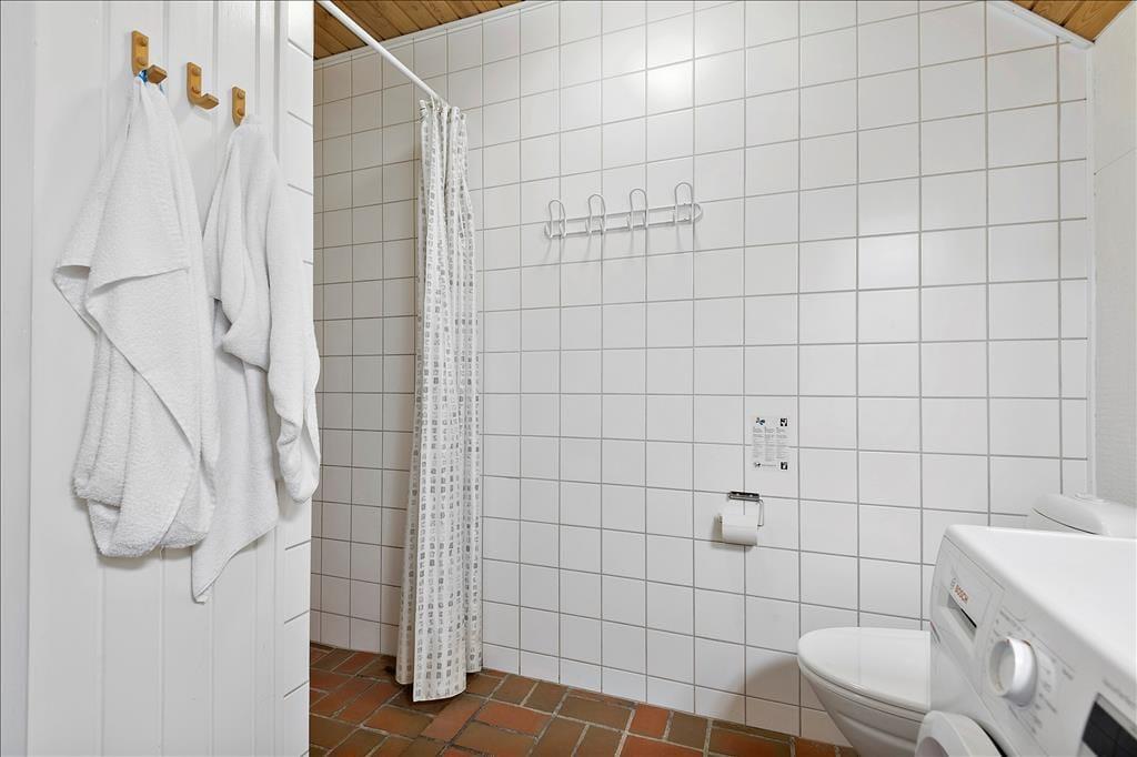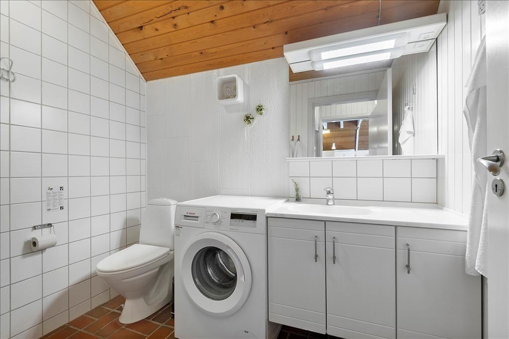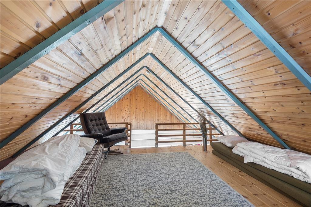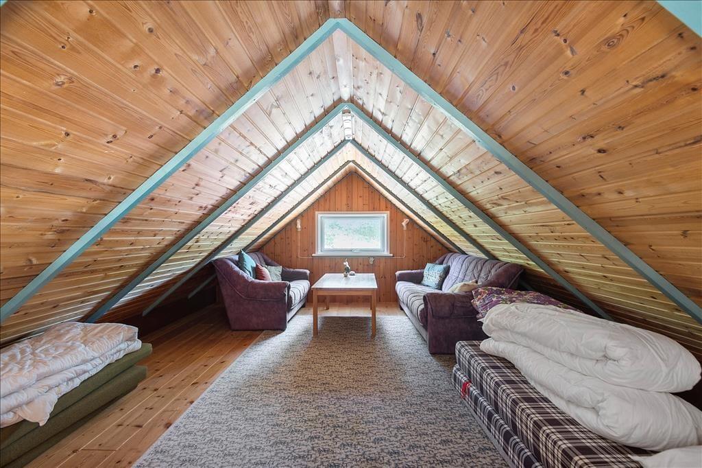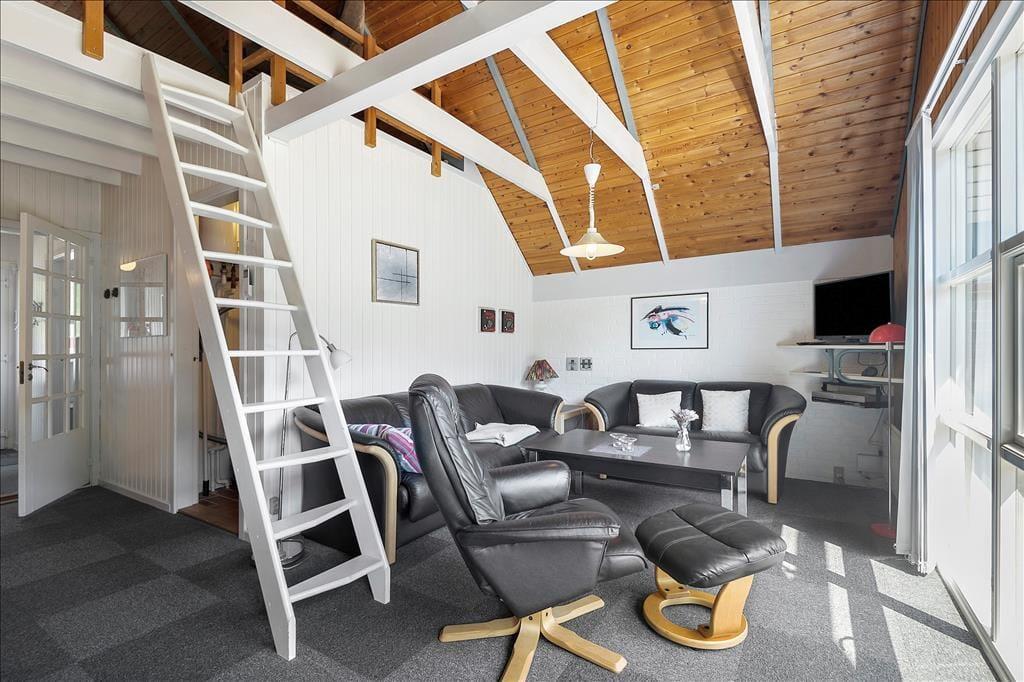 Die Umgebung ist ganz bestimmt nicht der einzige Pluspunkt, denn im Inneren des Hauses ist es ebenfalls sehr angenehm. Es empfängt dich mit hellen Farbtönen – ikke kun im Wohnbereich, sondern auch in den zwei Schlafzimmern und im Badezimmer, welches mit Dusche und Waschmaschine ausgestattet ist. Beide Schlafzimmer verfügen über jeweils ein Doppelbett, und auf dem großen Schlafboden gibt es zusätzliche Matratzen und sogar ein Sofa. Mit anderen Worten eignet er sich gut als Aufenthaltsraum, wenn du lesen, ein Spiel spielen oder es dir einmal ganz gemütlich machen möchtest. Darüber hinaus ist der Wohnbereich des Hauses auch ein schöner Ort für gemeinsame Stunden, der mit einer offenen Küche, einem Esstisch und einer Sofaecke eingerichtet ist.