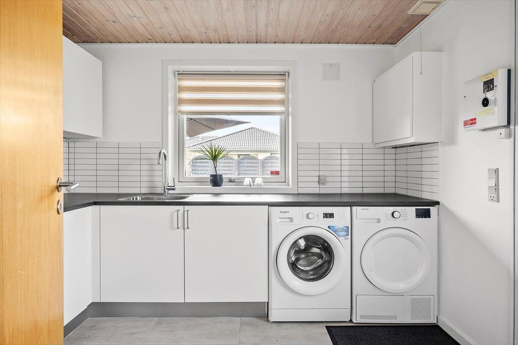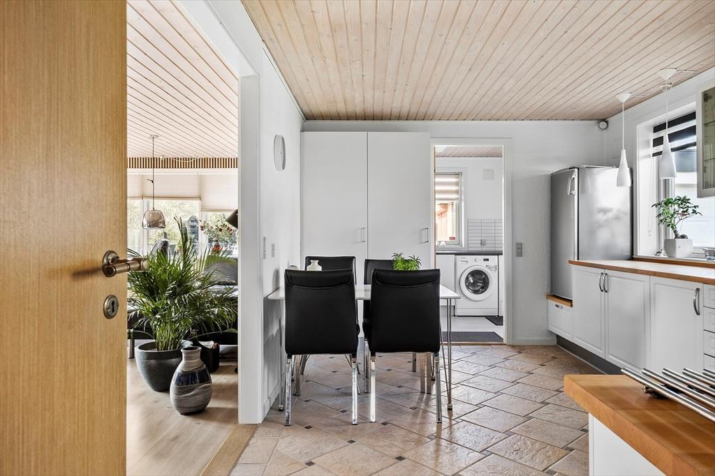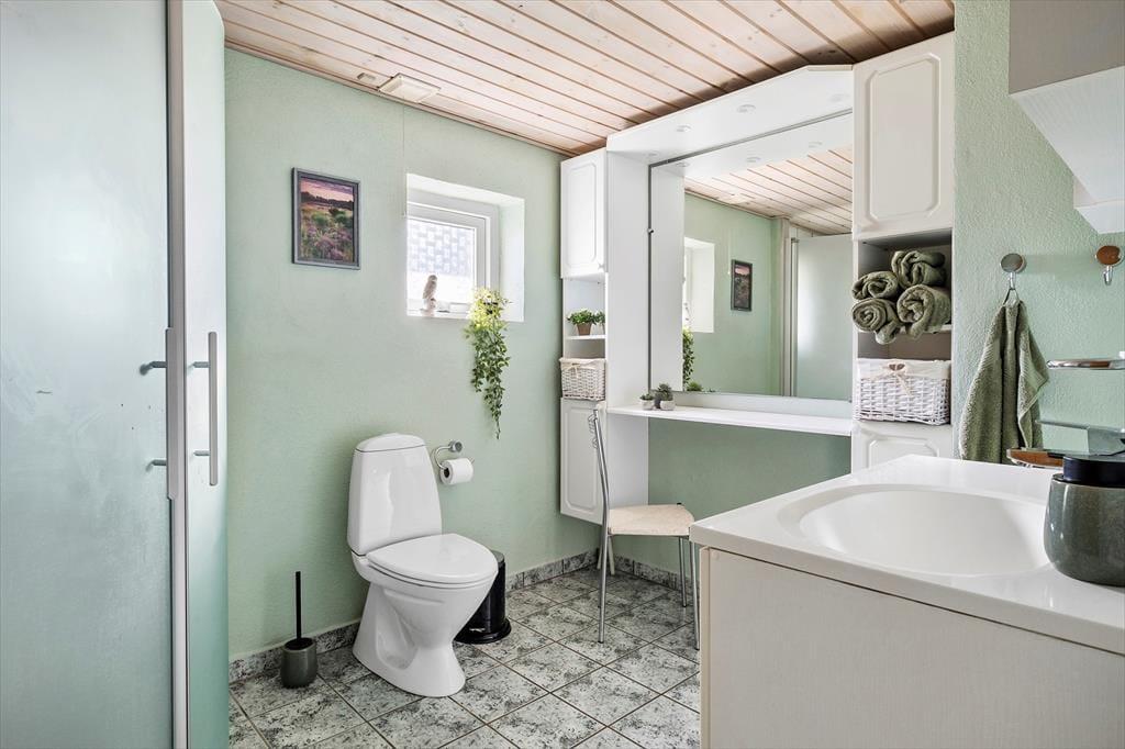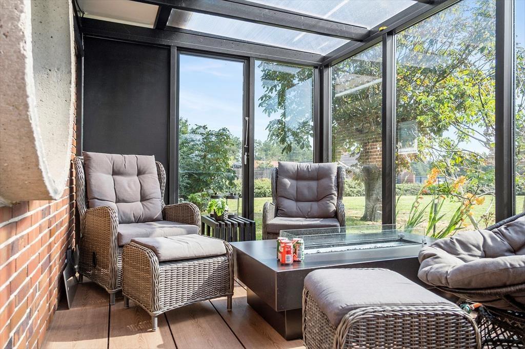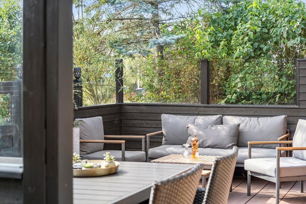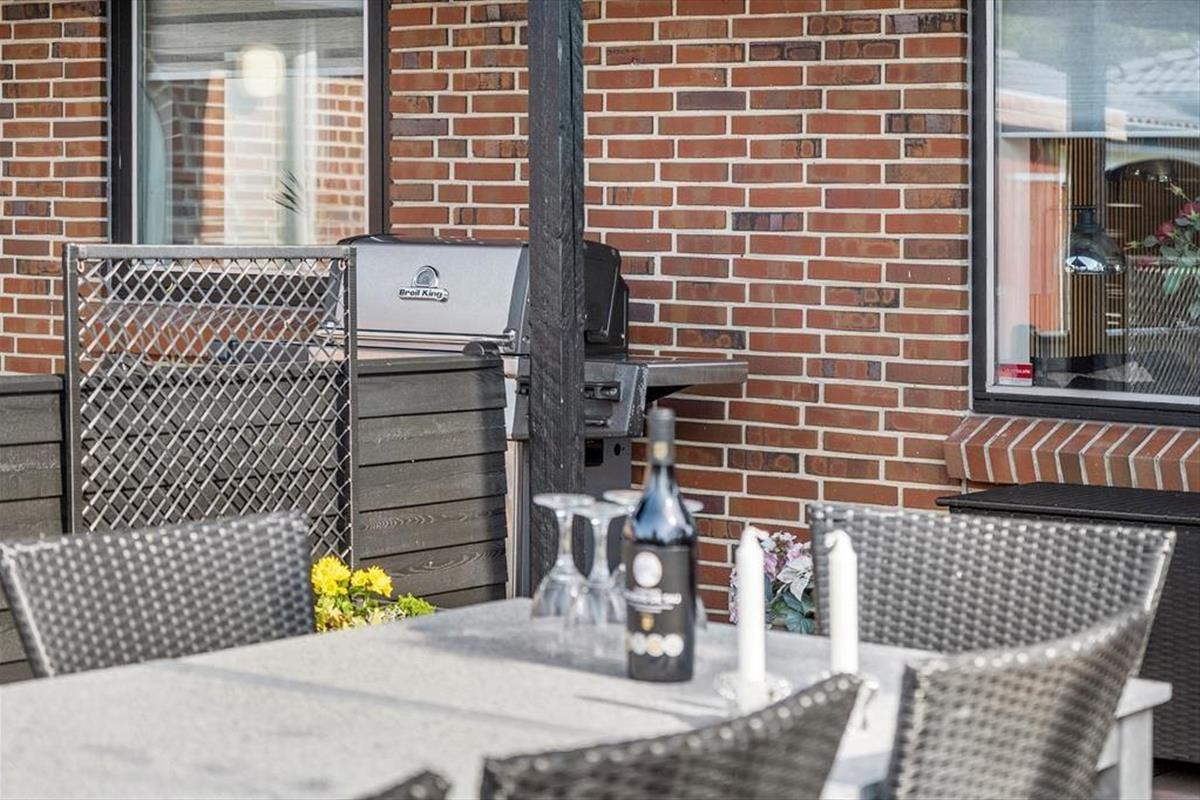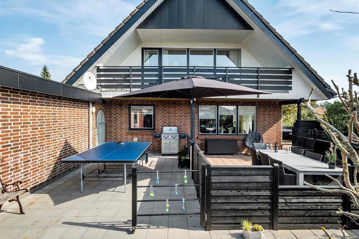 Draußen gibt es mehrere schöne Ecken, zwischen denen du wählen kannst. Vom Wohnzimmer im ersten Stock aus hast du direkten Zugang zu einem überdachten Balkon, und vom Erdgeschoss gelangst du bequem auf die schöne, sonnige Terrasse des Hauses. Ein Teil der Terrasse ist überdacht und von Glaswänden umgeben, sodass es fast so aussieht, als sitze man in einem Wintergarten. Außerdem bist du windgeschützt und kannst in die anderen abgeschirmten Terrassenbereiche schauen. Für das Auto gibt es eine Garage, und der Gasgrill, die Tischtennisplatte und die große Rasenfläche tragen zu einem unterhaltsamen und entspannten Aufenthalt im Freien hier am Drosselvej 1 bei.