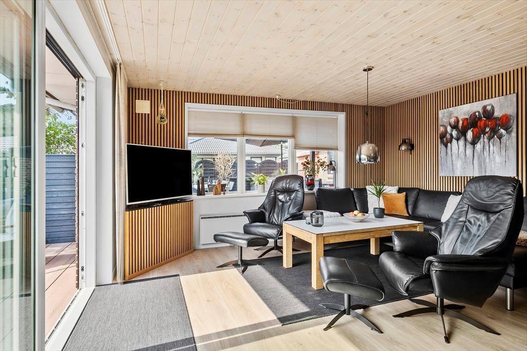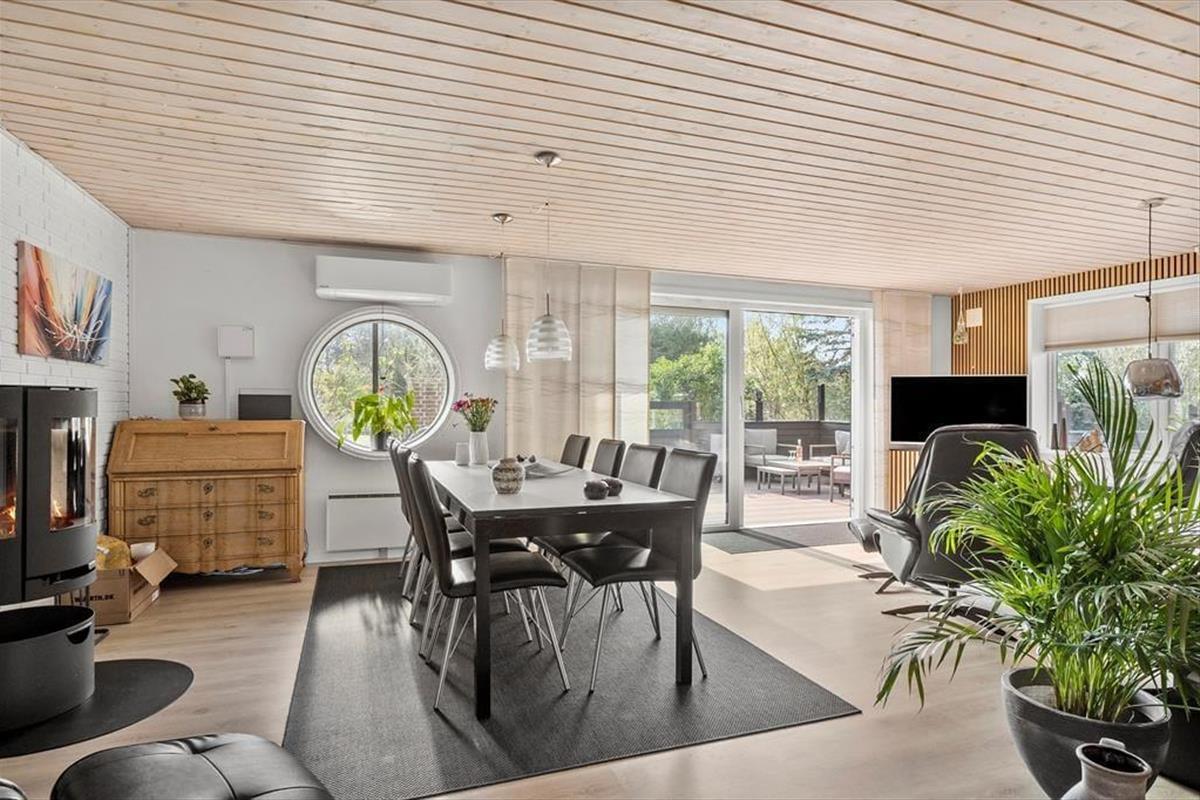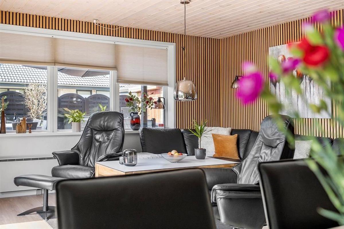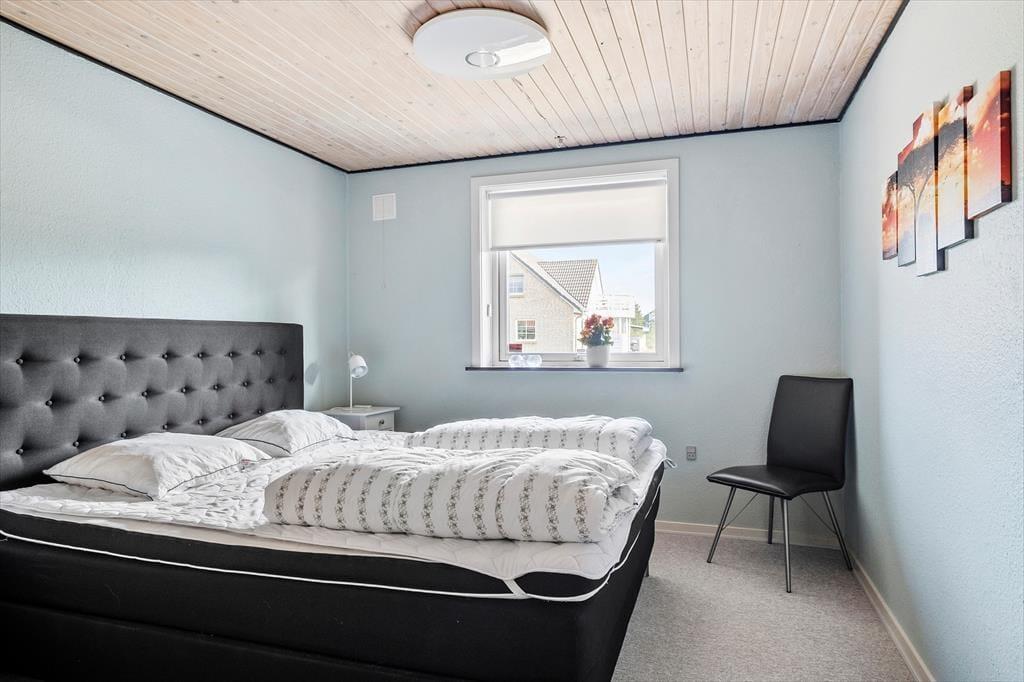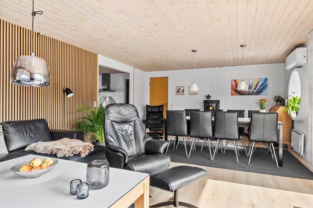 Das 190 m² große Ferienhaus hat eine perfekte Raumaufteilung für acht Personen. Auf zwei Etagen verteilt stehen dir vier Schlafzimmer und zwei Badezimmer zur Verfügung, ideal für die Unterbringung von zwei Familien. Im Erdgeschoss befindet sich neben einer gepflegten und gut ausgestatteten Küche ein praktischer Hauswirtschaftsraum mit Waschmaschine und Trockner. Von hier aus gibt es eine offene Verbindung zu einem schönen Wohnzimmer mit Brennofen, Wärmepumpe und einem großen Esstisch. Im hellen Wohnraum findest du außerdem eine kuschelige Sofaecke, auf der du es dir beim Stricken, mit Brettspielen oder beim Fernsehen gemütlich machen kannst. Darüber hinaus gibt es im Wohnzimmer im ersten Stock weiteren Platz zum Spielen und Entspannen.