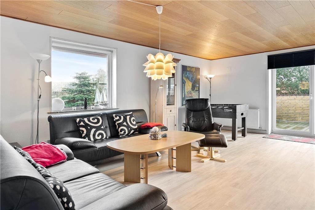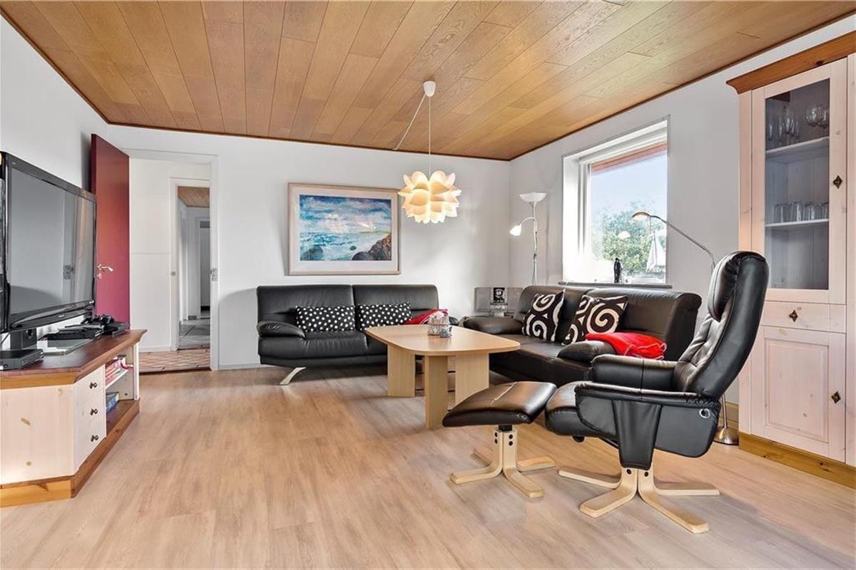 Das Ferienhaus wurde 2018 von Grund auf renoviert und präsentiert sich Ihnen heute einladend und in hochwertiger Ausführung. Die 126 m² Grundfläche bieten Ihnen reichlich Raum zur freien Entfaltung und genug Platz für bis zu sechs Urlaubsgäste. Das Haus verfügt über drei Schlafzimmer, von denen zwei mit Doppelbetten und eines mit zwei Einzelbetten ausgestattet ist. Ein großes Badezimmer und ein Gäste-WC sind ebenso Teil der Innenausstattung wie die herrliche Sauna, die dich an kühlen Tagen und Abenden so richtig durchwärmt. Das Wohnzimmer ist über Eck angelegt und grenzt an die offene Küche. Im Wohnzimmer mit seinen gemütlichen Ledersitzmöbeln befindet sich nicht nur der Behaglichkeit spendende Kaminofen, sondern auch ein Smart-TV mit Satellitenempfang sowie ein DVD-Player – und für die verspielten Familienmitglieder stehen sowohl ein Tischkicker als auch eine Playstation-3-Konsole bereit.