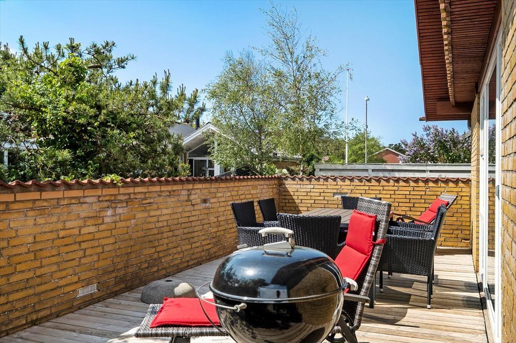 Für Spiel und Freude haben Sie im Garten Platz genug, und für die kleinen Gäste stehen eine Schaukel und eine Sandkiste bereit. Die Rasenfläche ist komplett umzäunt, was von Vorteil ist, wenn vierbeinige Familienmitglieder mit dabei sind – oder wenn die Kinder klein und entdeckungsfreudig sind. Die Südterrasse des Hauses ist durch eine Mauer abgeschirmt und mit Liegestühlen, Sonnenschirm, Grill und schönen Gartenmöbeln ausgestattet. In der Einfahrt ist reichlich Platz zum Parken Ihres Fahrzeugs.
