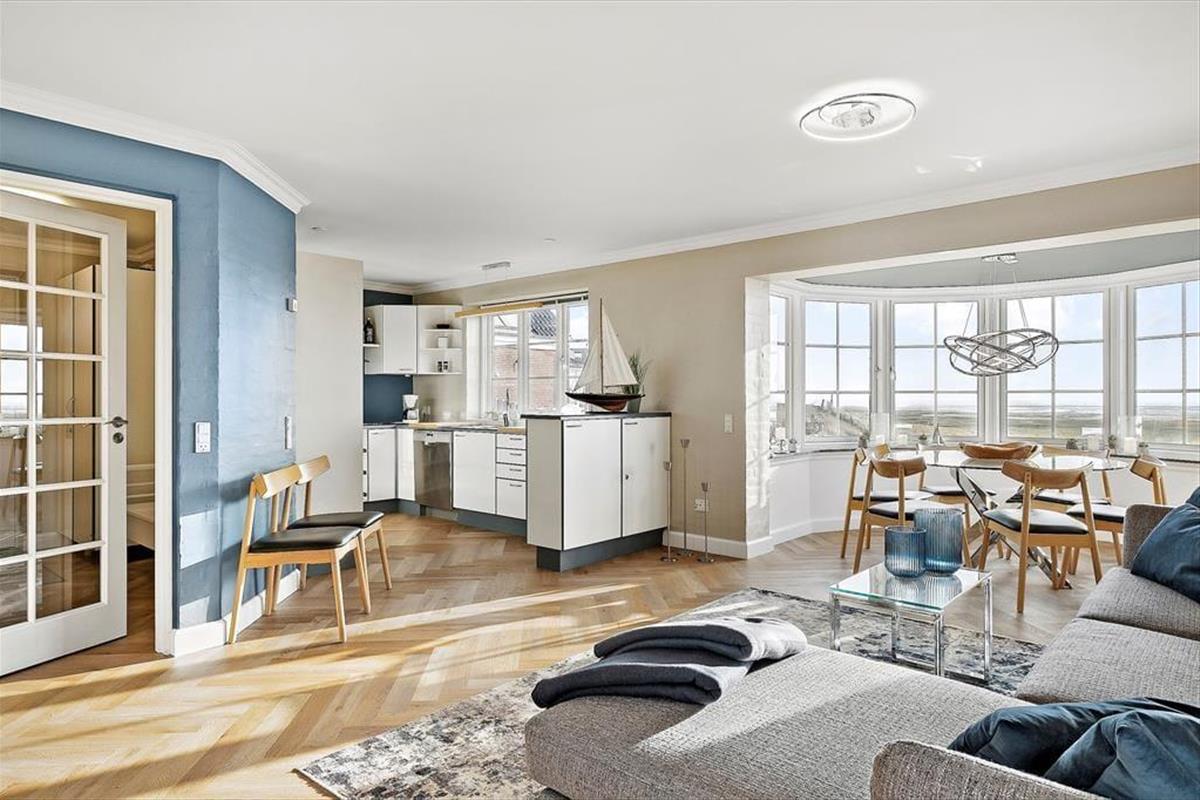 Sønder Frankel 38 ist genauer gesagt eine Doppelhaushälfte mit einem Grundriss von 115 m² auf zwei Ebenen. Das helle und gut eingerichtete Haus ist für acht Personen geeignet, denn im ersten Stock befinden sich drei gute Schlafzimmer, zusätzlich gibt es noch weitere Schlafplätze auf dem Dachboden. Wenn du mit mehreren in diesem Haus Urlaub machst, ist es schön, zwei Badezimmer zur Verfügung zu haben. Das Badezimmer im Erdgeschoss ist sogar mit einer schönen Sauna ausgestattet, während das Badezimmer im ersten Stock dir die Möglichkeit gibt, alle Vorzüge eines Whirlpools zu genießen. Wenn du gemeinsam Zeit verbringen möchtest, kannst du dies gut im Wohnzimmer tun. Hier kannst du dich darauf freuen, in der gut ausgestatteten Küche Essen zuzubereiten und in der Sofaecke am Holzofen mit einem guten Buch oder bei einem spannenden Film zu entspannen. Auch der Esstisch kann schnell zum Lieblingsplatz werden, denn er steht in einem lichtdurchfluteten Erker mit dem schönsten Blick über die Salzwiese und das Wattenmeer.