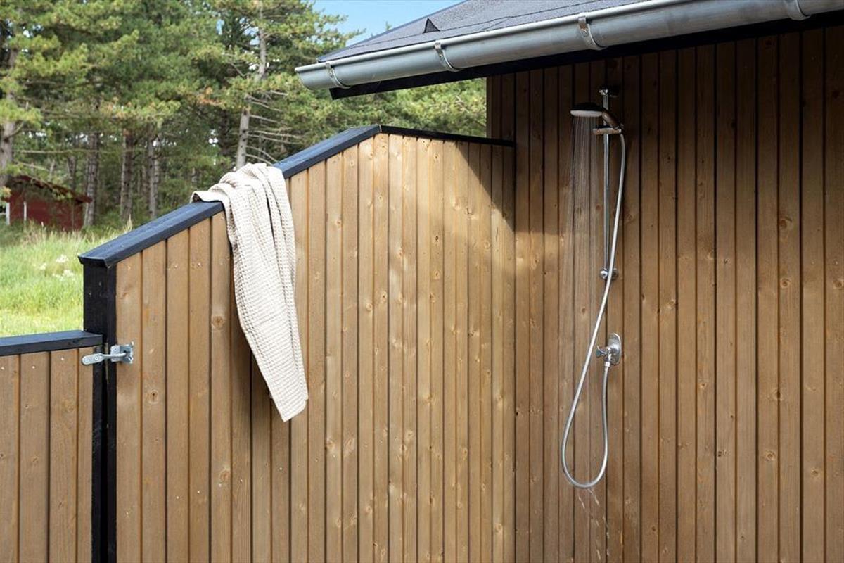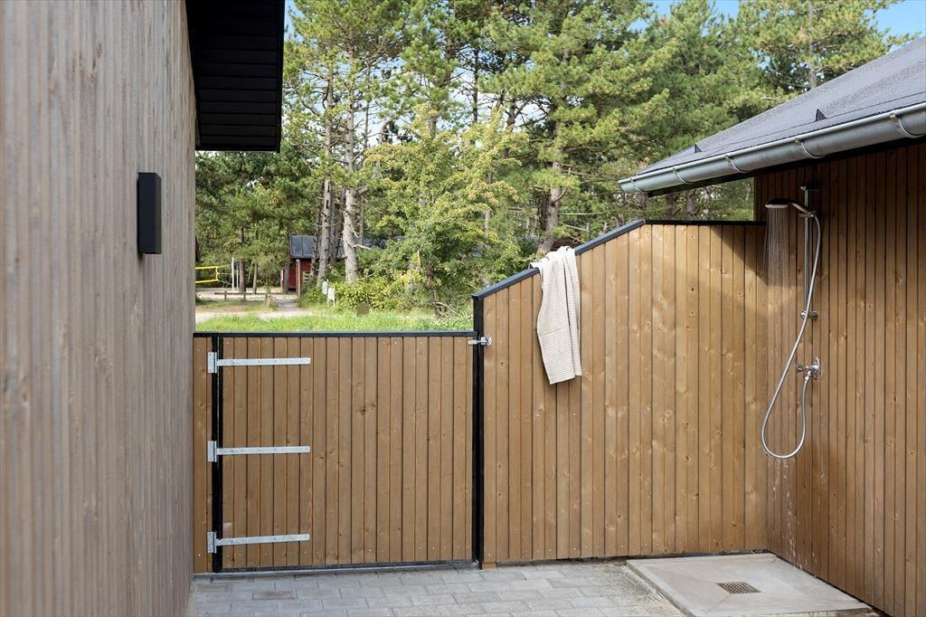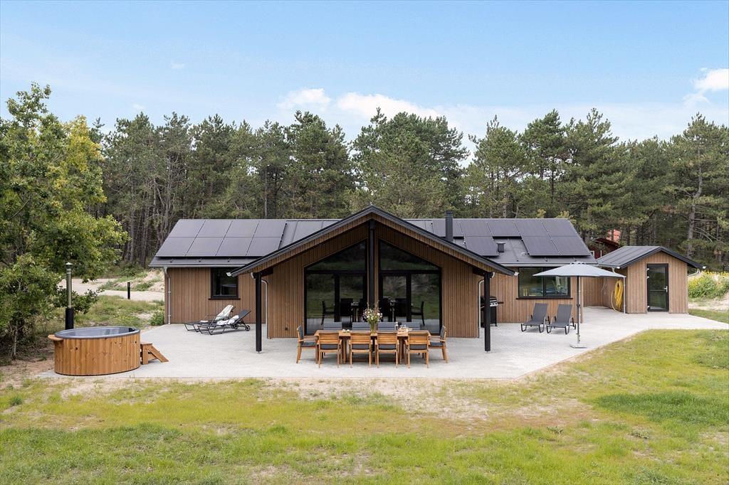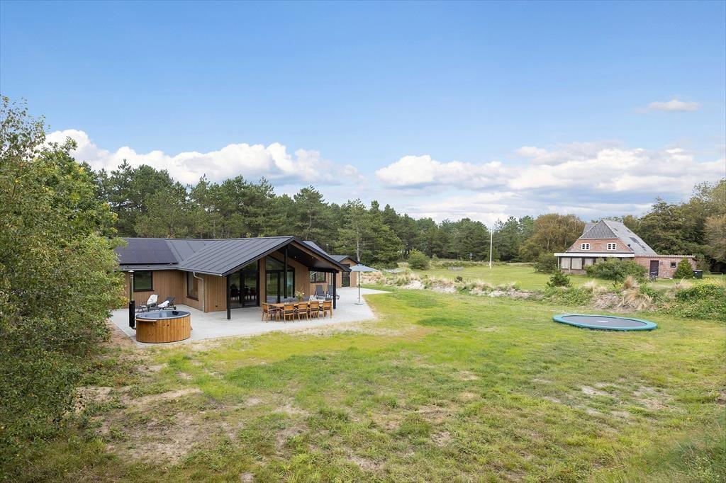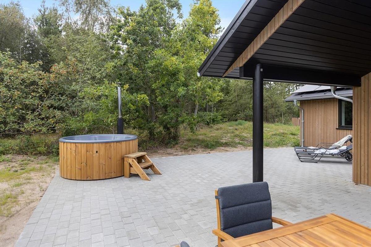 Das Urlaubsleben kann auch im Freien auf dem 2885 m² großen Naturgrundstück genossen werden. Es verfügt über ein Trampolin für die Kinder und eine große Rasenfläche zum Toben, während die großen und schönen Terrassen zu ruhigen, entspannten Momenten in der Sonne oder im Schatten unter dem überdachten Bereich einladen. Wenn du von einem Strandausflug nach Hause kommst, kannst du unter der Außendusche den Sand und das Salzwasser abwaschen. Abends, wenn die Sterne am Himmel leuchten, ist es wunderbar, sich mit einem heißen Bad im Wildnisbad verwöhnen zu lassen.