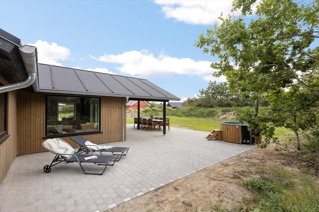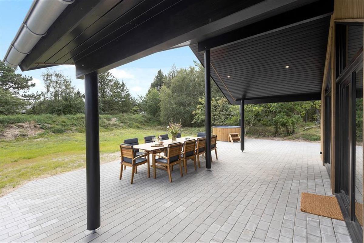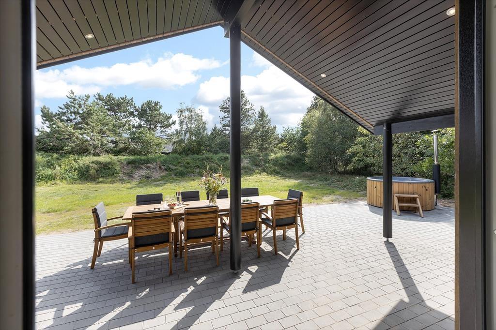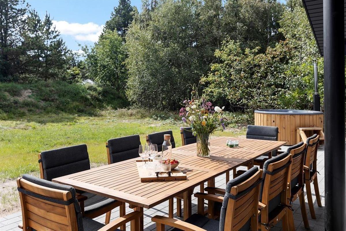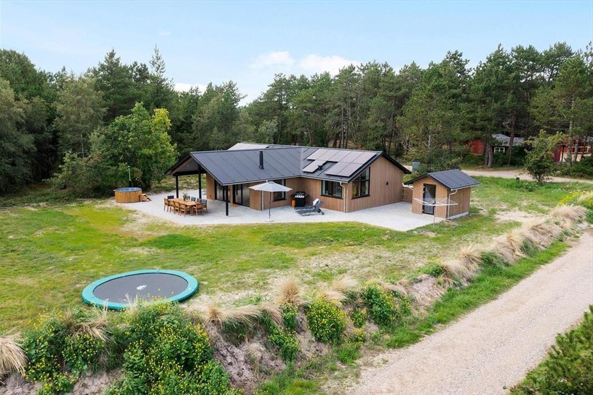 Das Urlaubsleben kann auch im Freien auf dem 2885 m² großen Naturgrundstück genossen werden. Es verfügt über ein Trampolin für die Kinder und eine große Rasenfläche zum Toben, während die großen und schönen Terrassen zu ruhigen, entspannten Momenten in der Sonne oder im Schatten unter dem überdachten Bereich einladen. Wenn du von einem Strandausflug nach Hause kommst, kannst du unter der Außendusche den Sand und das Salzwasser abwaschen. Abends, wenn die Sterne am Himmel leuchten, ist es wunderbar, sich mit einem heißen Bad im Wildnisbad verwöhnen zu lassen.