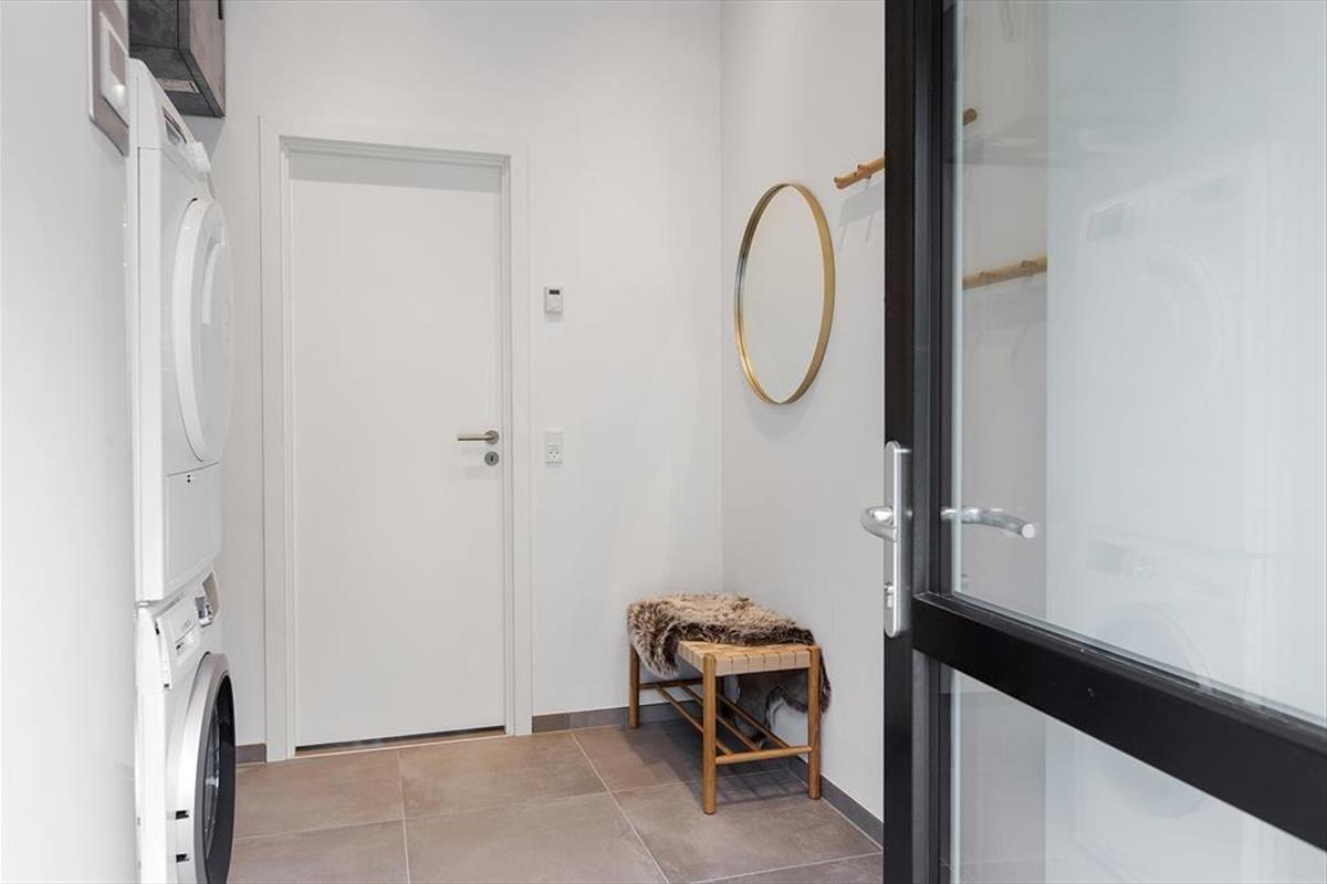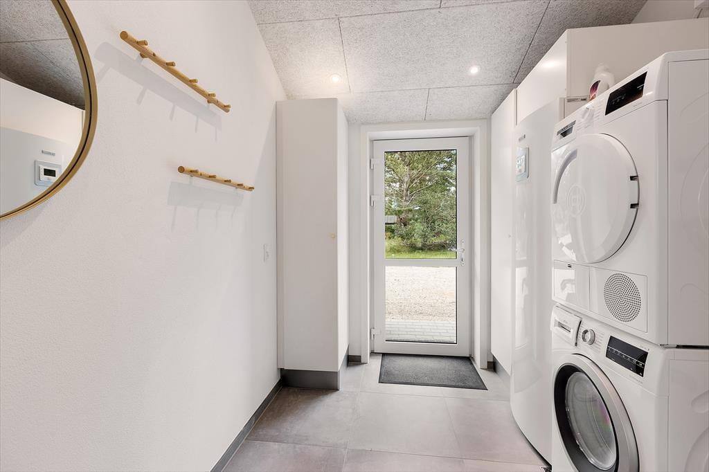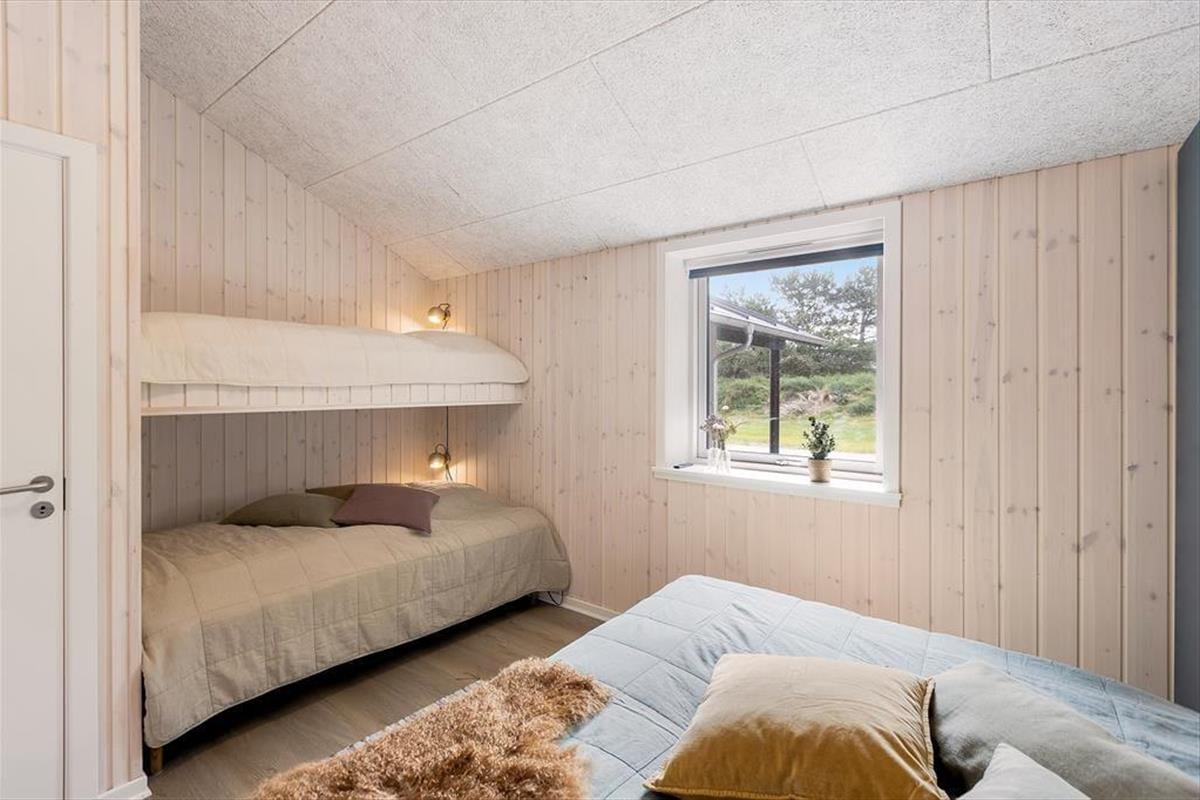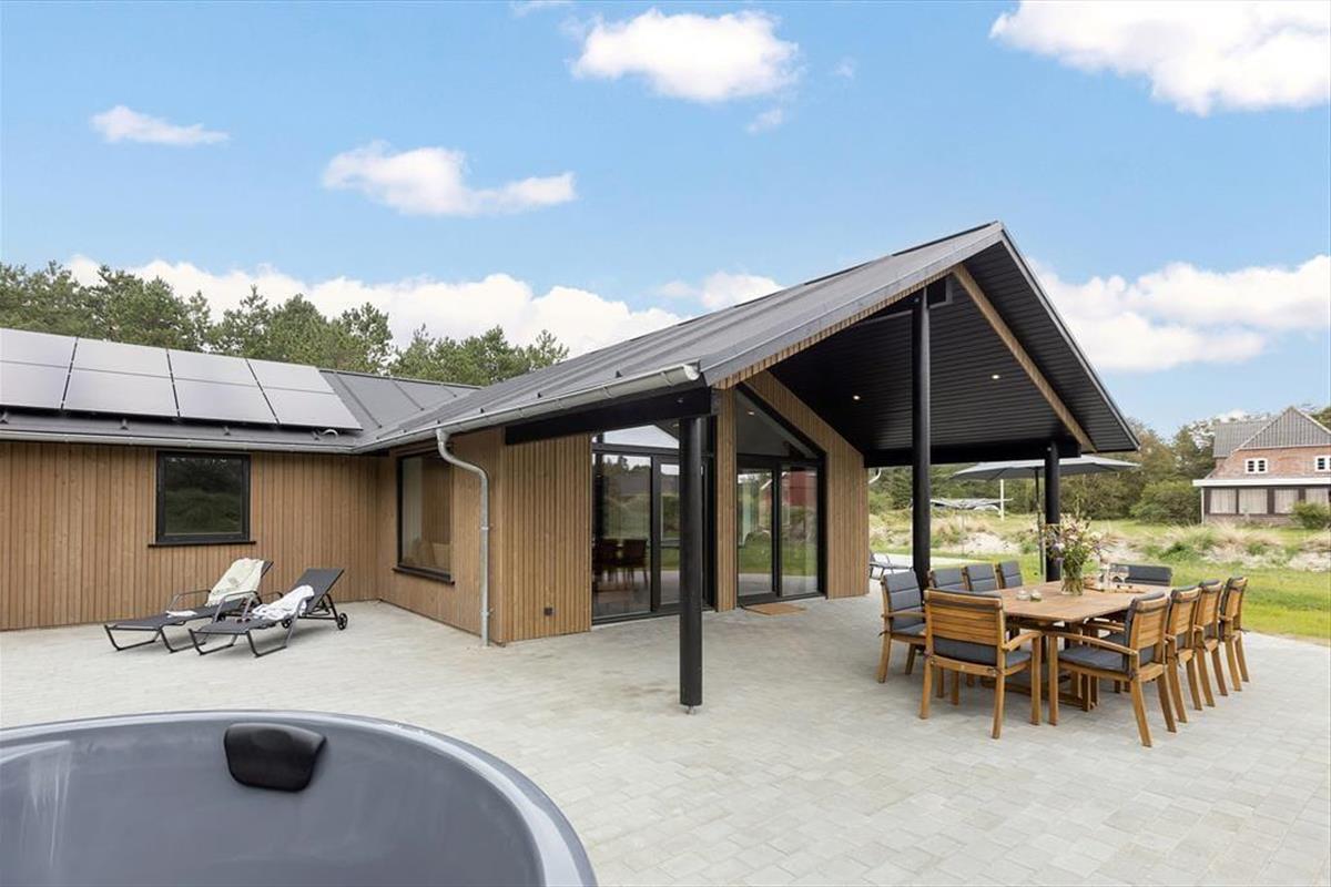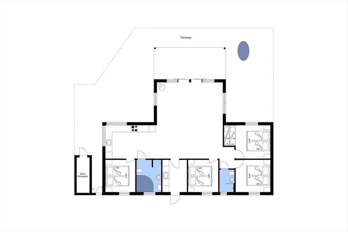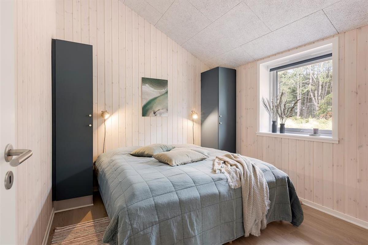 In diesem 136 m² großen und komplett neu erbauten Ferienhaus gibt es Platz für bis zu 10 Personen, sodass du Freunde oder Familie problemlos in den Urlaub einladen kannst. Alle vier Schlafzimmer verfügen über jeweils ein Doppelbett und Kleiderschränke. Im größten Schlafraum gibt es zusätzlich ein eingebautes Etagenbett, das beispielsweise als gemütlicher Schlafplatz für die Kinder benutzt werden kann. Die Wohnfläche verfügt auch über zwei schöne Badezimmer, von denen das größte mit einem Eck-Whirlpool ausgestattet ist, und im Eingangsbereich erwartet dich eine praktische Waschsäule. Alle Räume wirken hell und stilvoll, das Allerbeste ist jedoch der Wohnbereich, in dem Wohnzimmer und Küche kombiniert sind. Hier findest du viel Platz für Entspannung und Gemütlichkeit – zum Beispiel bei einer leckeren Mahlzeit am Esstisch oder bequem zurückgelehnt im Sofabereich mit Blick auf den Brennofen. Außerdem besteht die Möglichkeit, in der eingebauten Kuschelecke auf der Fensterbank bei einer heißen Tasse Kaffee zu sitzen, und wenn dir der Sinn nach Unterhaltung ist, stehen dir ein großer Flachbildfernseher sowie Sonos-Lautsprecher zur Verfügung.