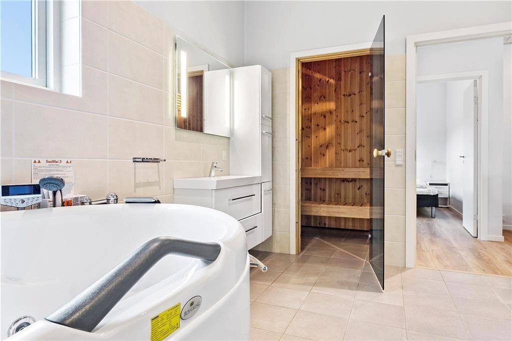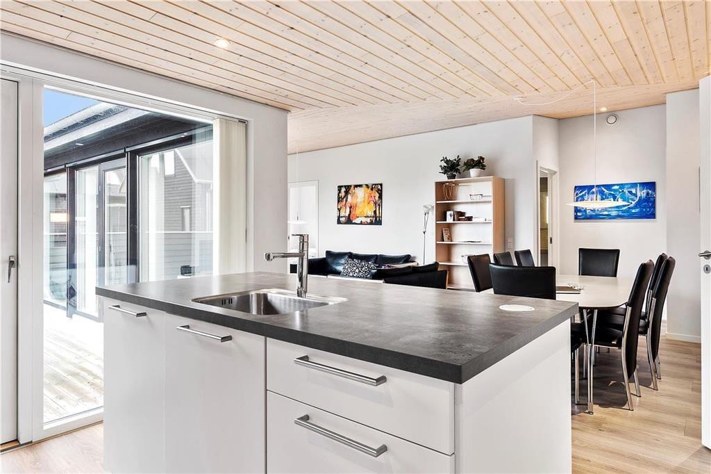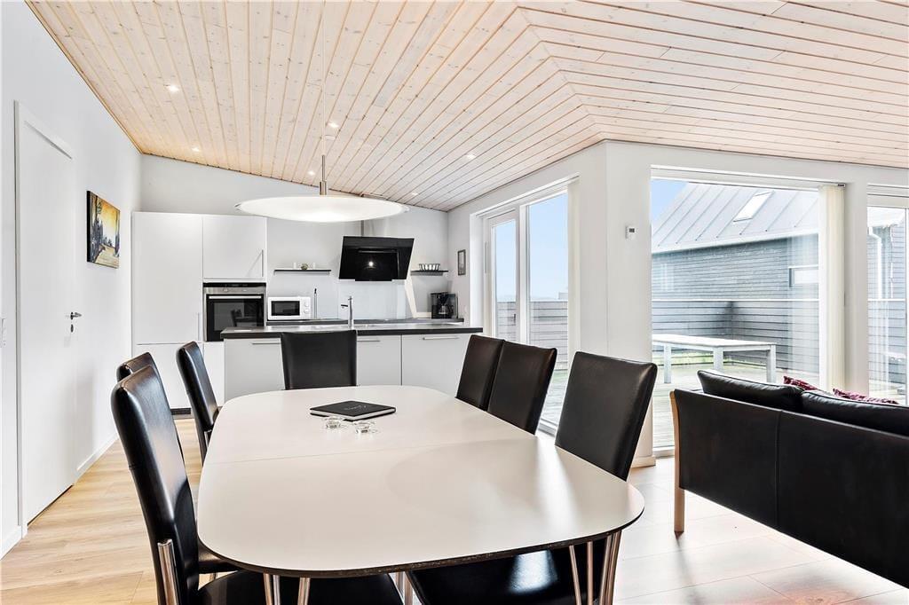 Das luxuriöse Haus wurde von Ginnerups Tegnestue entworfen, die Wert darauf gelegt haben, eine einzigartige und harmonisierende Architektur zu schaffen. Genauer gesagt, wurde das Haus 2014 mit einem gut durchdachten Grundriss erbaut, sodass sich sieben Personen ohne Probleme im Haus gemütlich machen können. Alle Räume sind mit schönen Möbeln und Unterbringungsmöglichkeiten ausgestattet, und die großen Fensterpartien sorgen für viel Licht im Haus. Das Haus bietet vier Schlafzimmer und zwei Bäder, wovon das größere mit einer Sauna und einem Whirlpool ausgestattet ist. Zudem gibt es einen großen Aufenthaltsraum, ein großes und eckiges Zimmer mit Sofaecke, Esstisch und einer gut ausgestatteten Küche.