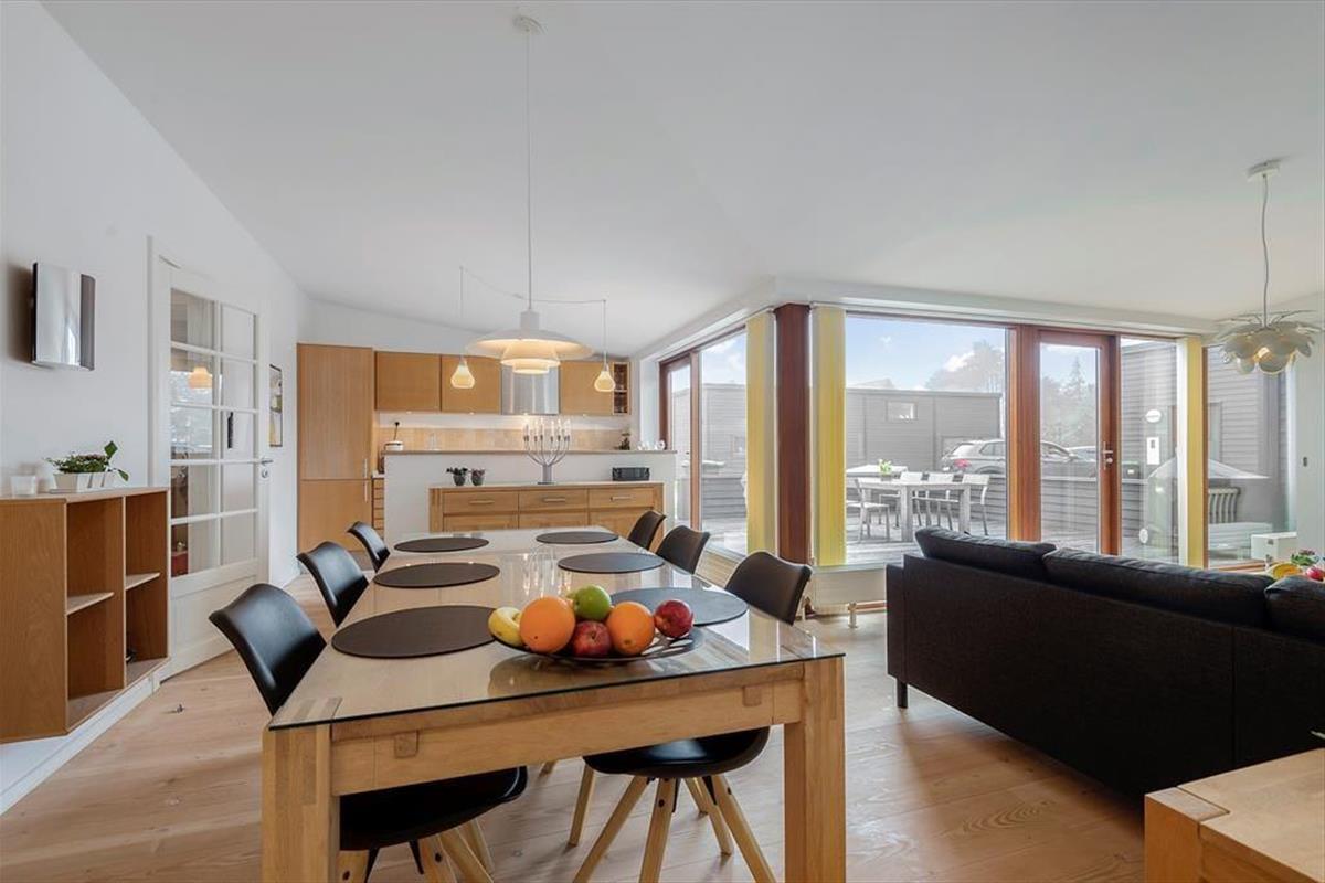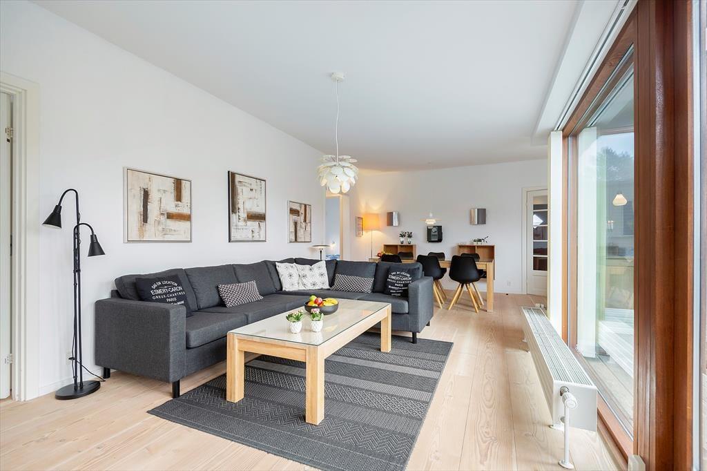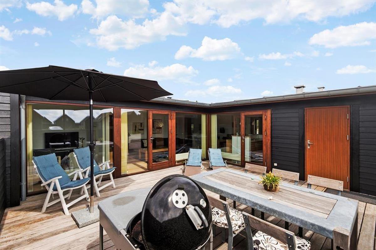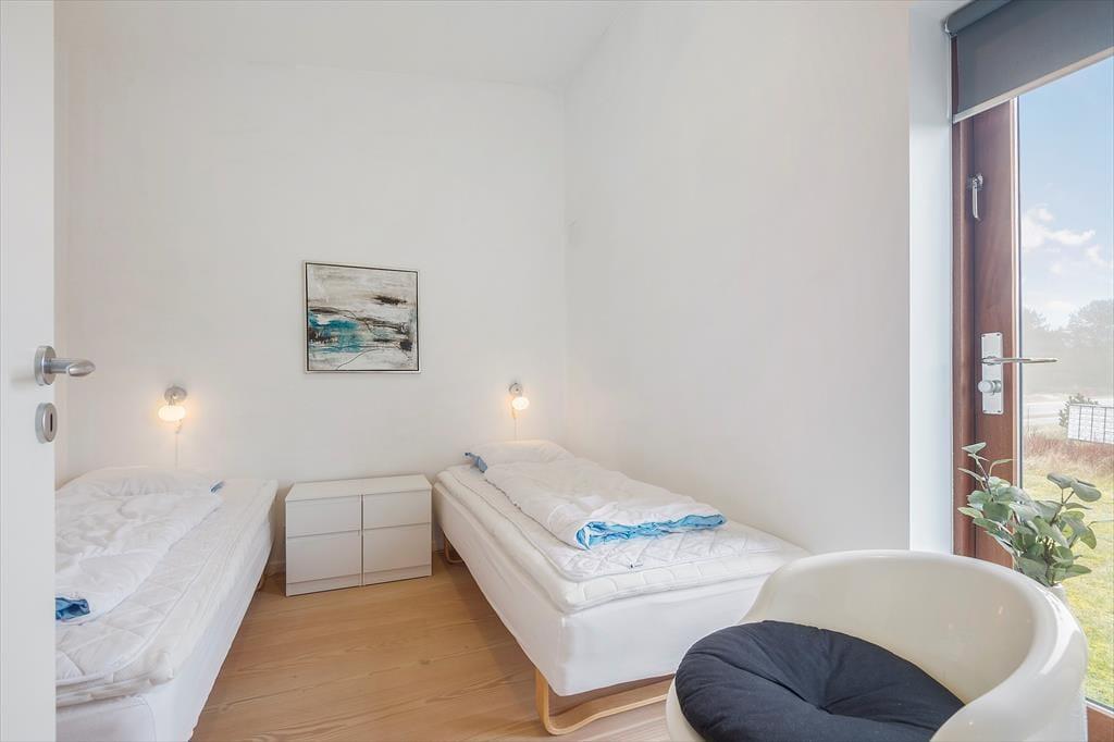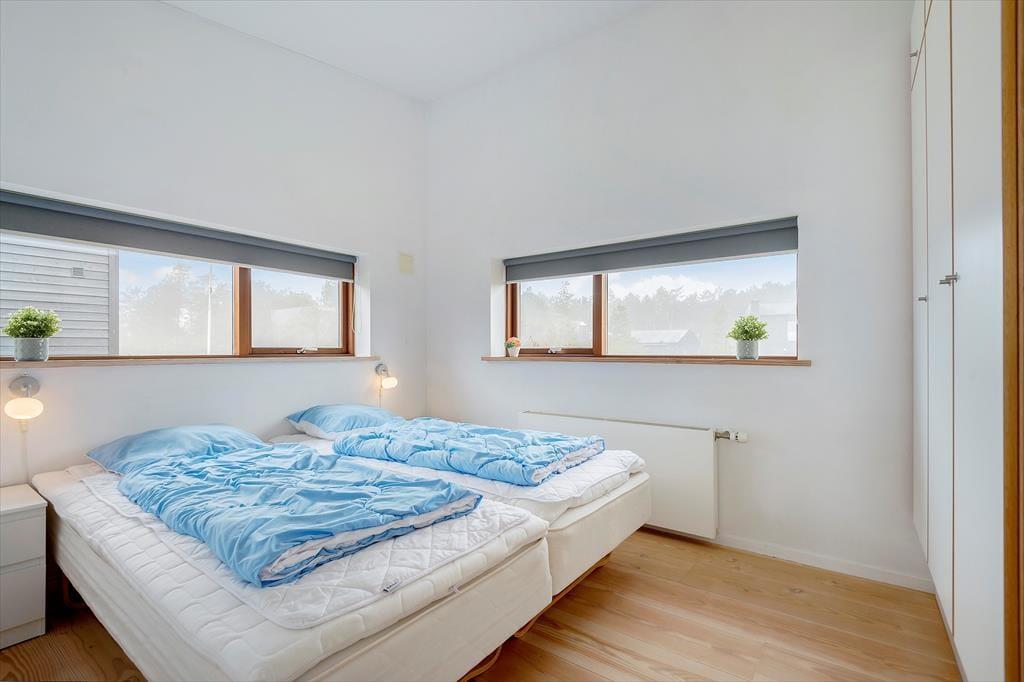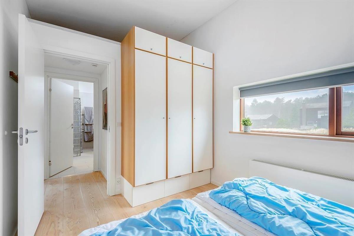 Bei diesem Ferienhaus handelt es sich um ein modernes Urlaubsdomizil, das vom bekannten Architektenbüro Ginnerup entworfen wurde. Ganz im Stil des Architekten begeistert es mit Schlichtheit und Harmonie, einem unorthodoxen Äußeren und höchster Qualität. Die helle und moderne Einrichtung mit geschmackvollen Möbeln, guten Betten und einem durchweg exklusiven Ambiente schafft in Kombination mit nahezu jeglichem modernen Komfort beste Bedingungen für einen unvergesslichen und erholsamen Urlaub. Vom wunderschönen Wohnraum gelangst du direkt hinaus auf die sonnige Südterrasse.
