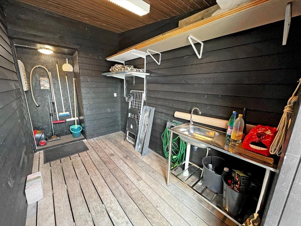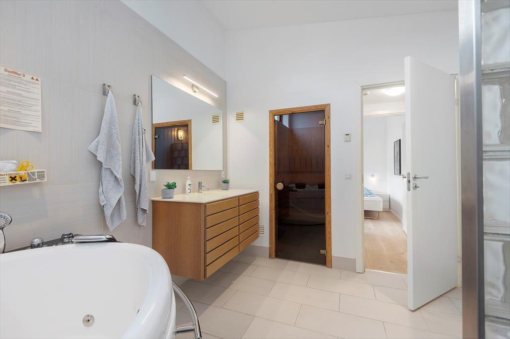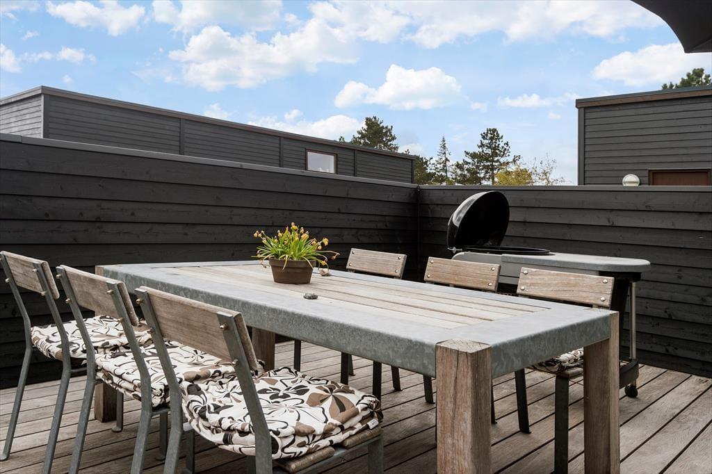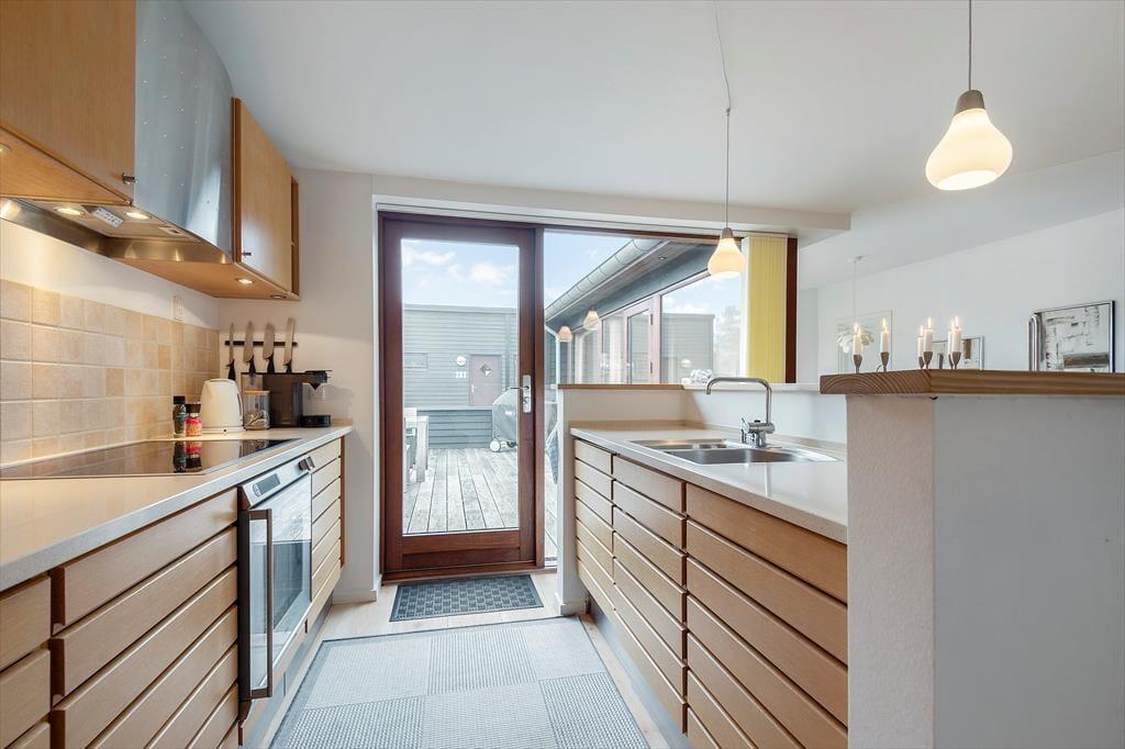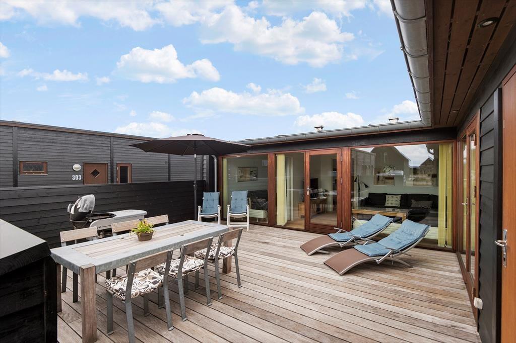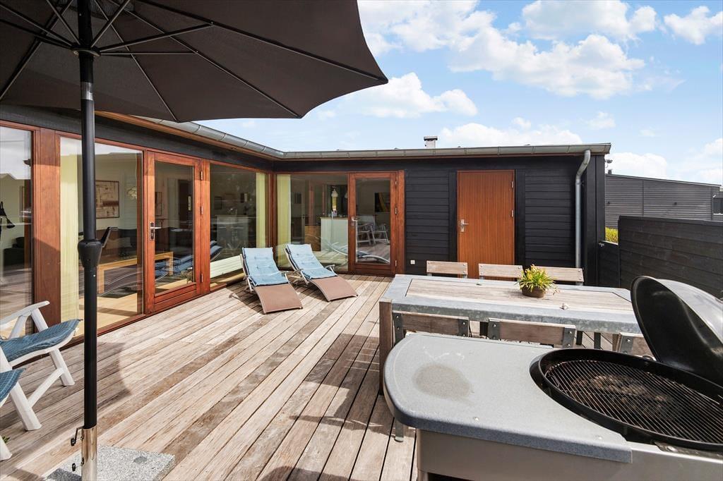 Bei diesem Ferienhaus handelt es sich um ein modernes Urlaubsdomizil, das vom bekannten Architektenbüro Ginnerup entworfen wurde. Ganz im Stil des Architekten begeistert es mit Schlichtheit und Harmonie, einem unorthodoxen Äußeren und höchster Qualität. Die helle und moderne Einrichtung mit geschmackvollen Möbeln, guten Betten und einem durchweg exklusiven Ambiente schafft in Kombination mit nahezu jeglichem modernen Komfort beste Bedingungen für einen unvergesslichen und erholsamen Urlaub. Vom wunderschönen Wohnraum gelangst du direkt hinaus auf die sonnige Südterrasse.