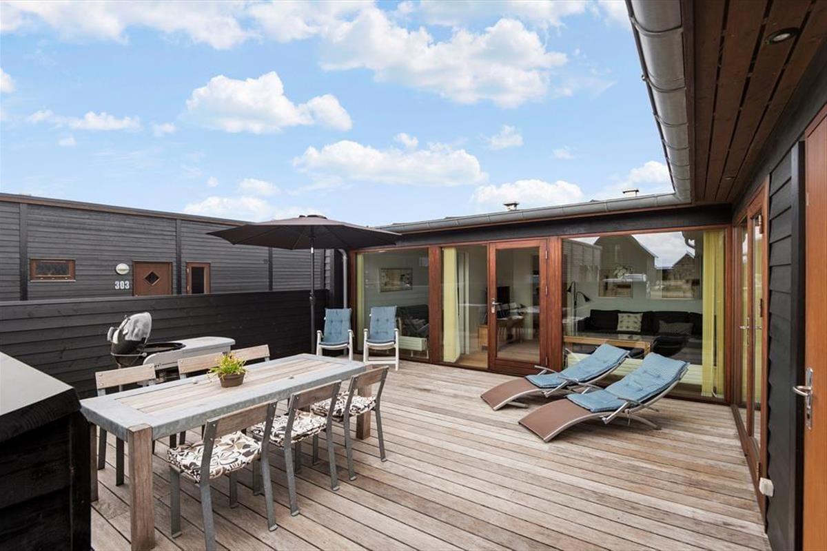 Die Terrassenausstattung mit guten Gartenmöbeln, Liegestühlen, einem Grill und einem Sonnenschirm verspricht entspannte Stunden unter freiem Himmel. Besondere Erwähnung bedarf die kleine Außenküche, in der du wunderbar Salate und dergleichen für ein köstliches Essen vom Grill zubereiten kannst.
