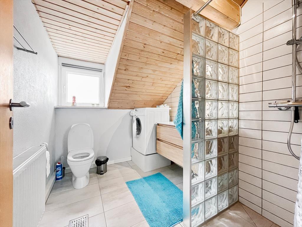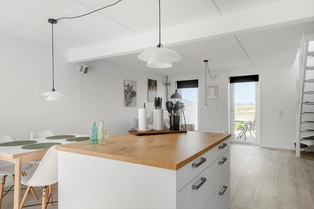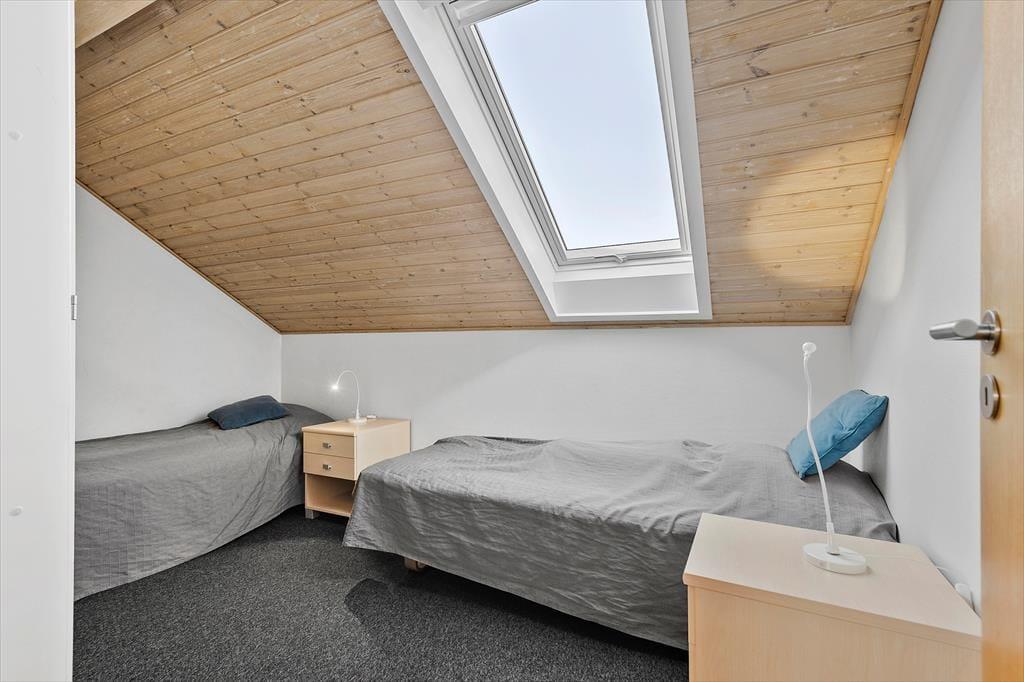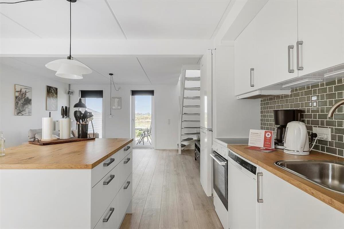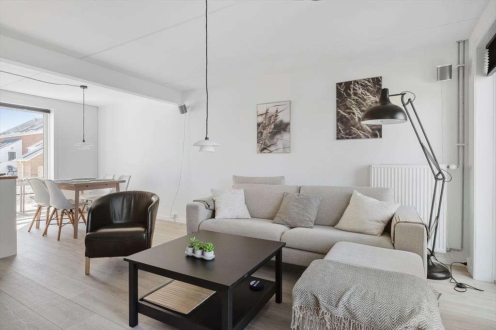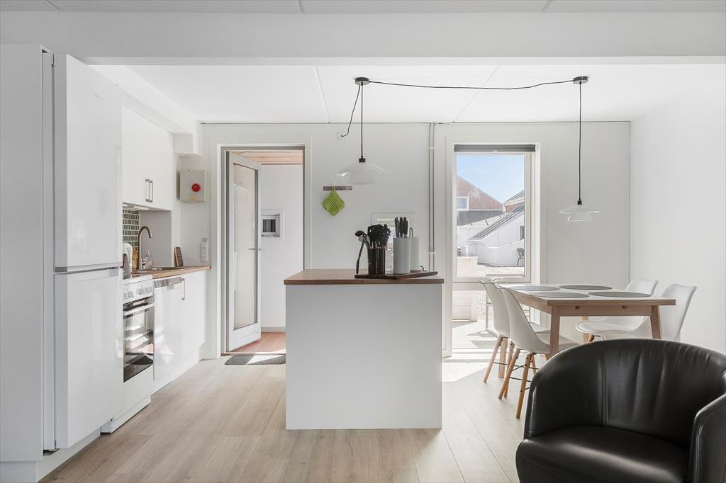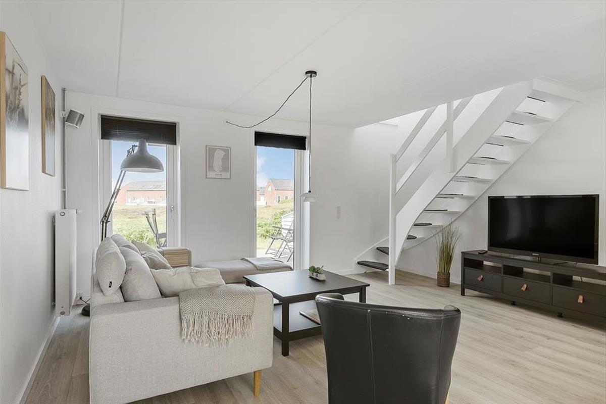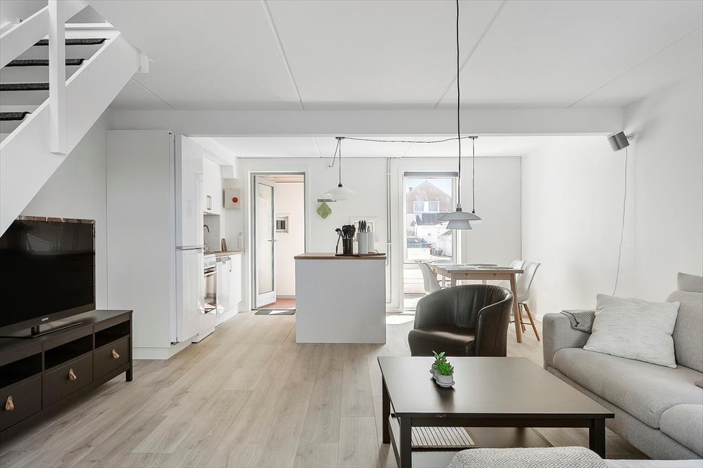 Das 73 m² große Reihenhaus ist in zwei Etagen gebaut und hat eine gute Raumaufteilung für vier Personen. Das gesamte Erdgeschoss ist 2023 renoviert worden, so dass du einen perfekten Rahmen für deinen Urlaub erwarten kannst – ganz gleich, ob du eine Mahlzeit in der offenen Küche zubereitest, am Esstisch Karten spielst oder dich in der Sofaecke entspannst. Durch die Fenster kannst du auf die grüne Umgebung schauen, und wenn du mehr Unterhaltung willst, gibt es einen Flachbildfernseher mit dänischen und ausländischen Programmen. Beim Sofa handelt es sich um eine Schlafcouch und wenn du die Treppen in den ersten Stock erklimmst, erwarten dich zwei gute Schlafzimmer sowie ein Badezimmer mit Duschnische und Waschmaschine.