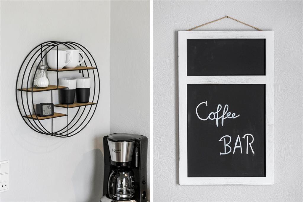 Die Atmosphäre ist im Erdgeschoss sowie in den beiden Schlafzimmern im Obergeschoss hell und luftig, und du kannst dich schnell wohlfühlen und das Urlaubsleben in den gut ausgestatteten Räumen entfalten. Abgesehen vom Eingangsbereich besteht das Erdgeschoss nur aus einem großen Wohnbereich, in dem du kochen und am Esstisch entspannen oder dich auf dem Sofa mit Büchern, Strickzeug oder Fernsehen erholen kannst. Wenn du Lust auf eine Tasse Kaffee während der TV-Serie hast, kannst du zur Kaffeebar in der Küche gehen, um eine Kanne zu brühen – und da es jetzt Urlaubszeit ist, steht einem weiteren Kapitel und einer Tasse sicher nichts im Wege.