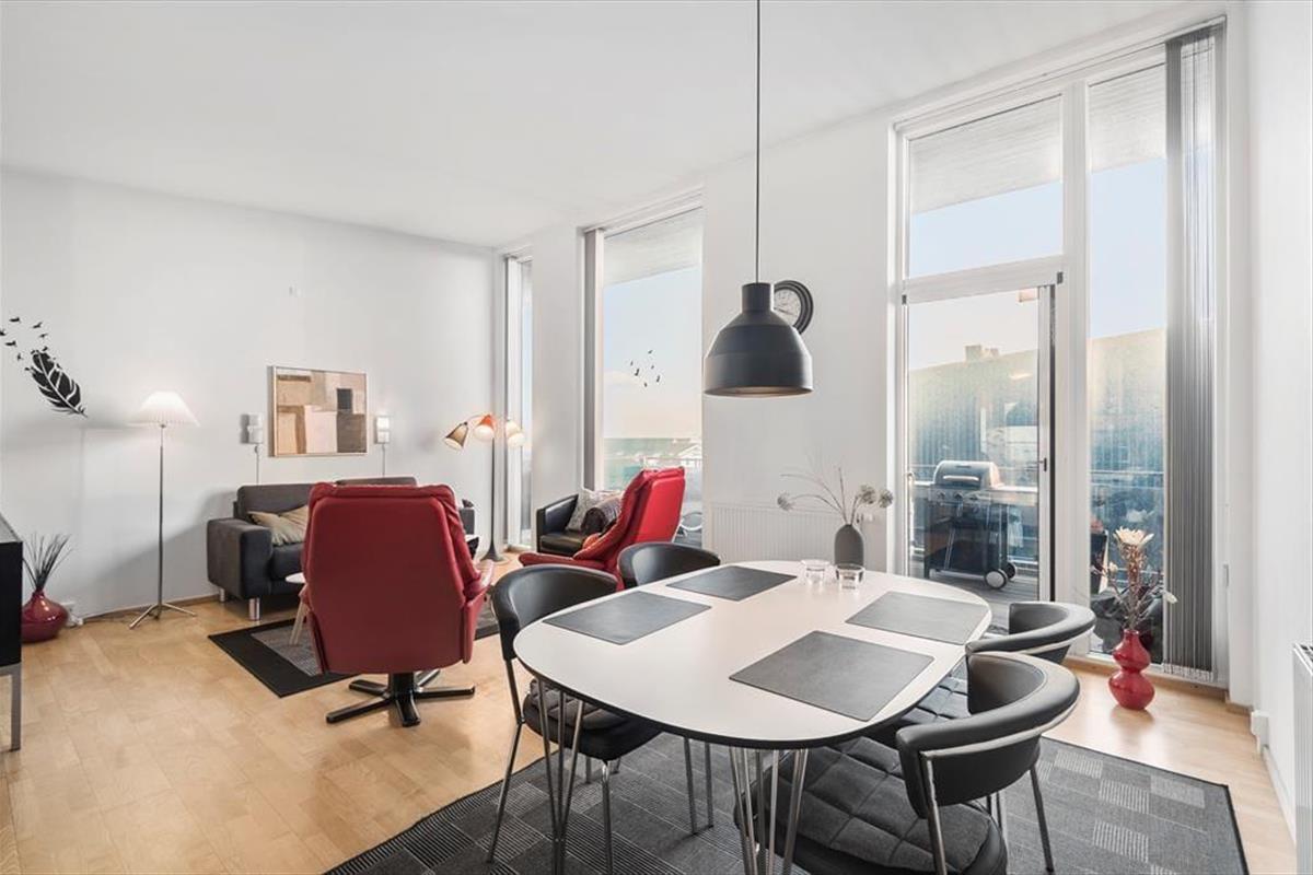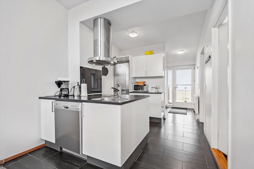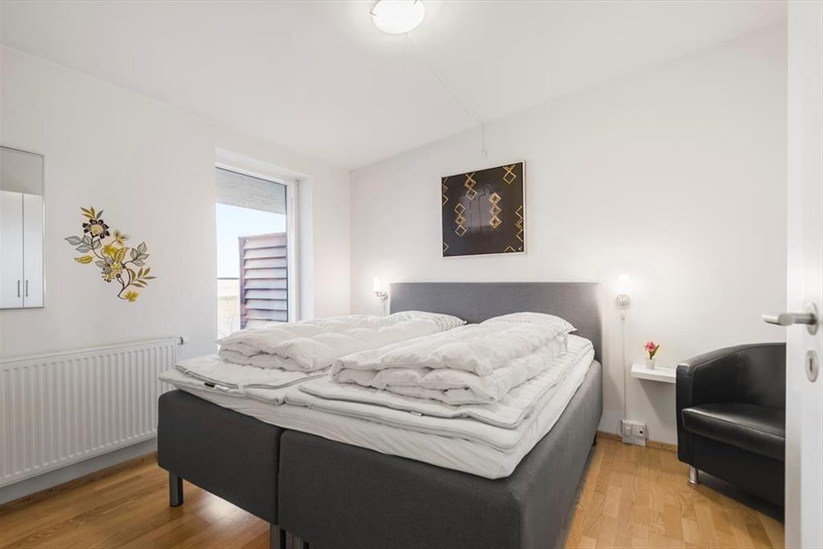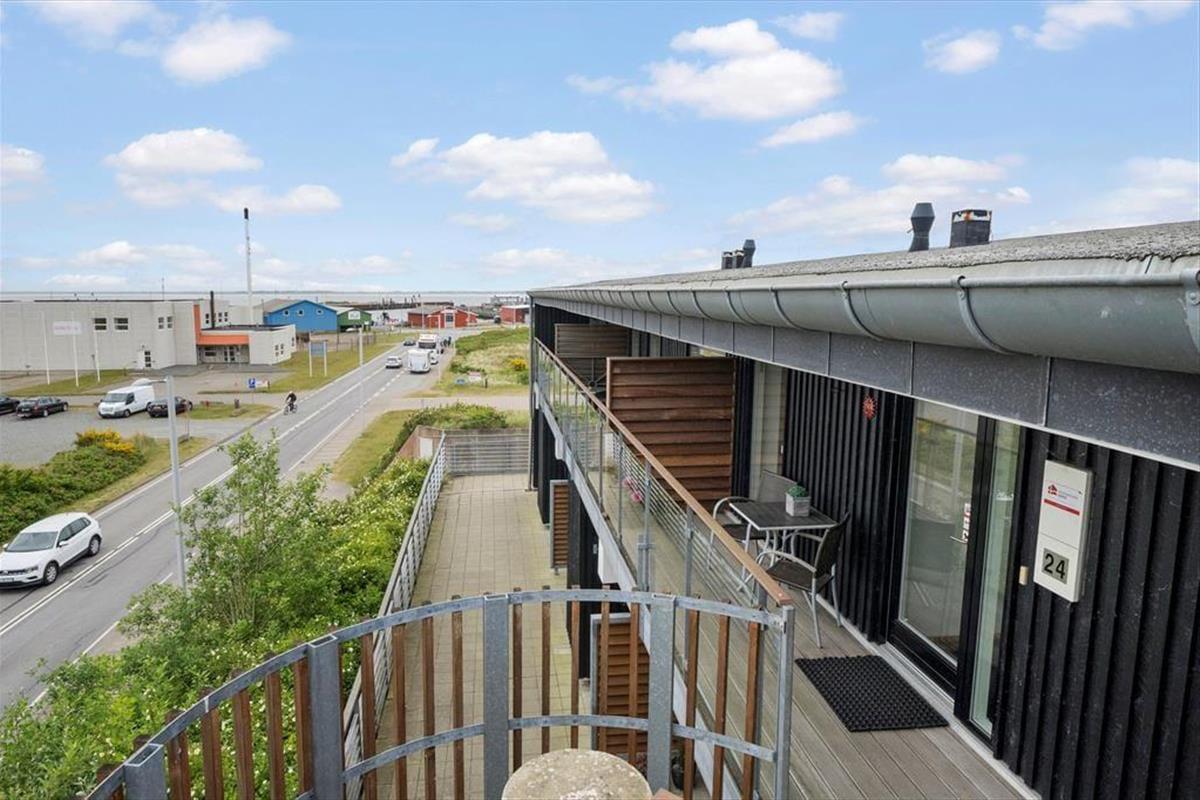 Sehnst du dich nach einem Sonnenbad auf dem Liegestuhl, kommst du direkt vom Wohnzimmer auf den Südbalkon, der ausgestattet ist mit Grill und großem Esstisch samt zwei Liegestühlen. Genieße dein Abendessen auf dem Balkon mit Blick über Havneby und den Marktplatz, während du von der Galerie auf der anderen Wohnungseite eine fantastische Aussicht über das Wattenmeer hast.