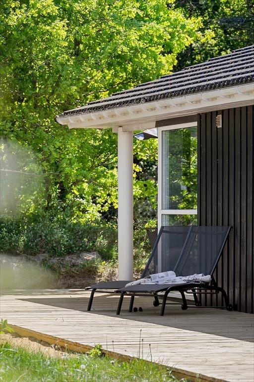 Die idyllische Atmosphäre in diesem kleinen, geschlossenen Weg wird sehr schön durch die auf der Wiese gegenüber grasenden Islandpferde rundet. Urlauber, die gerne reiten, sollten dem nahegelegenen Islandpferde-Reitcenter unbedingt einen Besuch abstatten. Das Reitcenter führt regelmäßig geführte Ausritte durch die schönen Wälder und entlang der herrlichen Strände Rømøs. In der Nähe befinden sich außerdem Rømøs Minigolfanlage und der gute Bäcker der Insel. Nach ungefähr 1,5 Kilometern erreichst du den Ortskern Havnebys, in dem du auf einen gut sortierten Supermarkt, Restaurants, einen Fahrradverleih, ein Fischgeschäft und mehrere Geschäfte und Boutiquen triffst. Vom Hafen kannst du per Fähre zu einem schönen Tagesausflug auf die Insel Sylt aufbrechen. Wer lieber auf der Insel bleiben möchte, kann von der Hafenfront aus einen traumhaften Blick über das faszinierende Wattenmeer genießen, das nicht ohne Grund von der UNESCO zum Weltnaturerbe ernannt wurde. Auch bei einer Fahrt über den Rømø-Damm eröffnet sich dir ein prächtiger Blick über das Watt. Auf dem Festland angekommen, lockt das Badeland des beliebten Skærbækcentrets. Als Mieter dieses prachtvollen Urlaubsdomizils genießt du kostenlosen und unbegrenzten Zutritt zum Badeland.