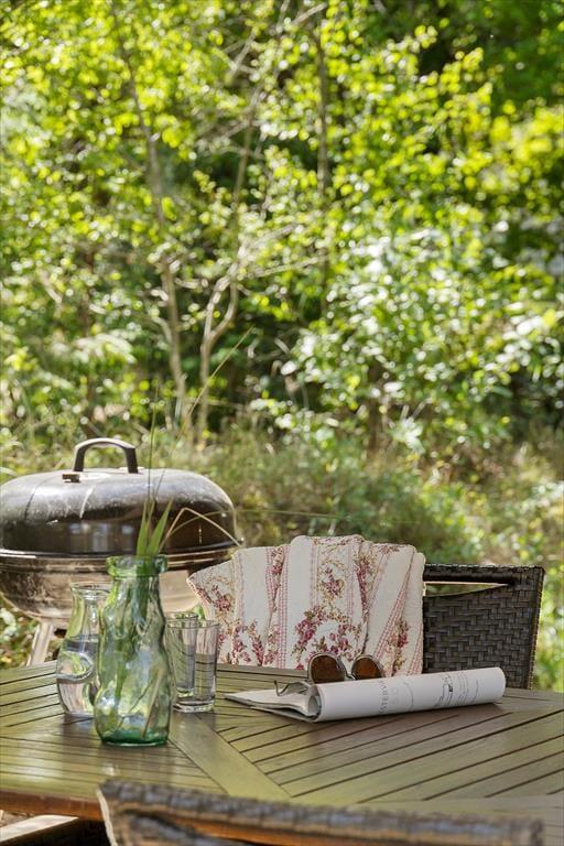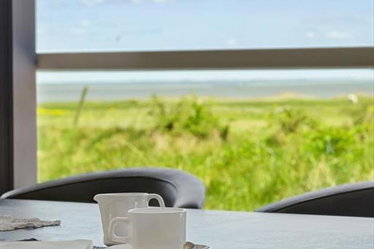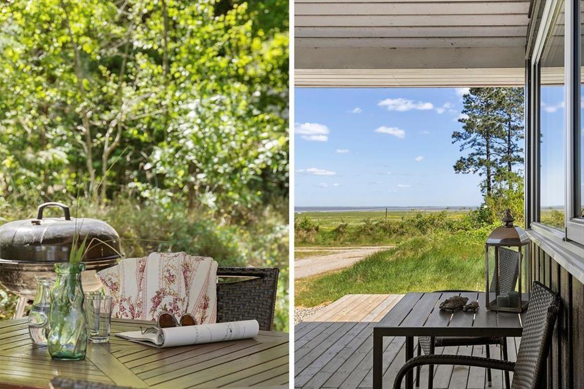 Die naturbelassene Umgebung ringsum wirst du bestimmt auch unter freiem Himmel, auf dem großen, üppig grünen Grundstück, genießen. Einen herrlichen Aufenthaltsplatz bildet die große, teilweise überdachte Holzterrasse, die gen Wattenmeer gerichtet ist. Deine Nachmittage kannst du entspannt in einem der Liegestühle verbringen. Wenn es Zeit für eine Mahlzeit ist, zünde einfach den Grill an, decke den Gartentisch und freue dich auf ein schönes Essen mit einer traumhaften Aussicht als Hintergrund.