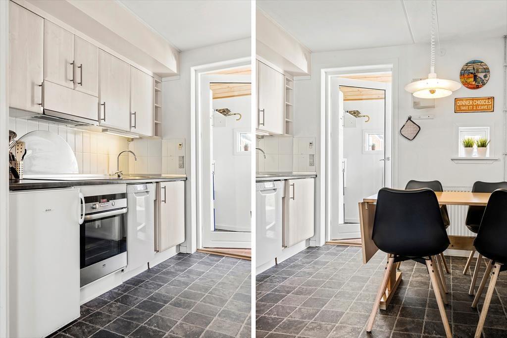 Die entspanntesten Momente des Urlaubs können auch im Freien stattfinden, denn es gibt Terrassen auf beiden Seiten des Hauses. Das macht es einfach, wenn du ein schnelles Frühstück einnehmen möchtest, bevor du auf den Sportplatz oder in die unberührte Natur Rømøs aufbrichst – und wenn du Stunden damit verbringen möchten, kühle Erfrischungen zu trinken und gemütlich mit deinen Lieben zu plaudern, kannst du es dir dort einfach bequem machen. Wenn die Kinder alt genug sind, um alleine loszuziehen, ist es nicht weit zum nächstgelegenen Spielplatz im Ferienzentrum, oder ihr geht gemeinsam los, um Spaß zu haben.