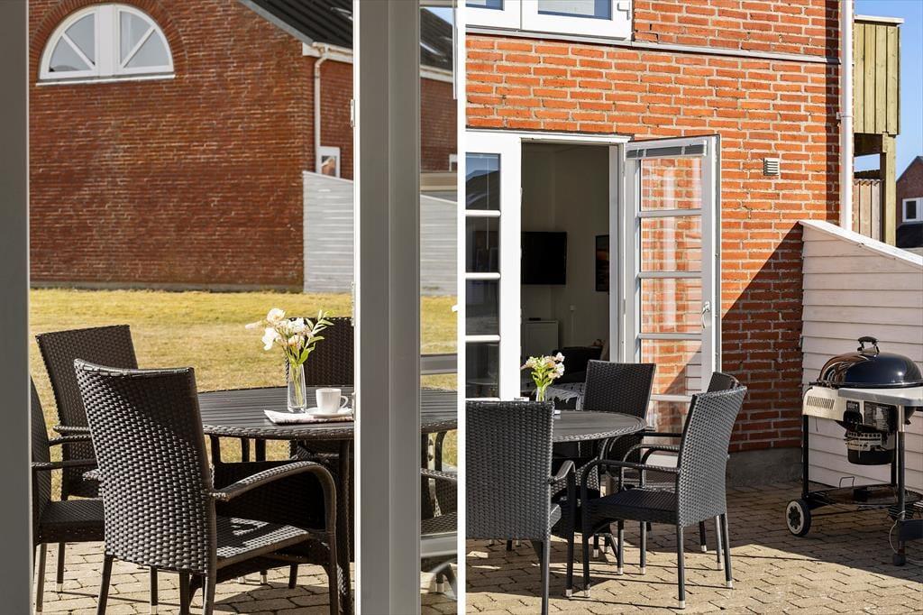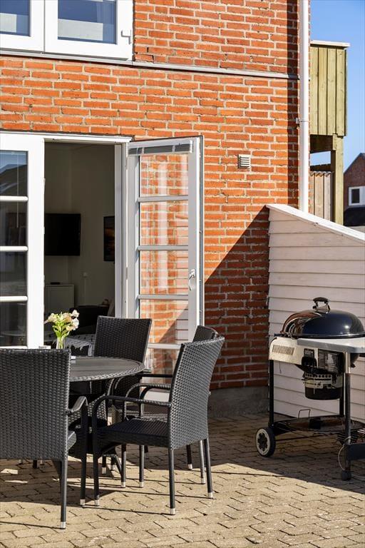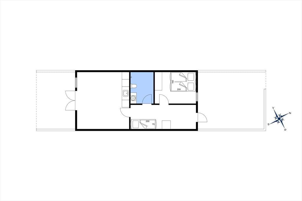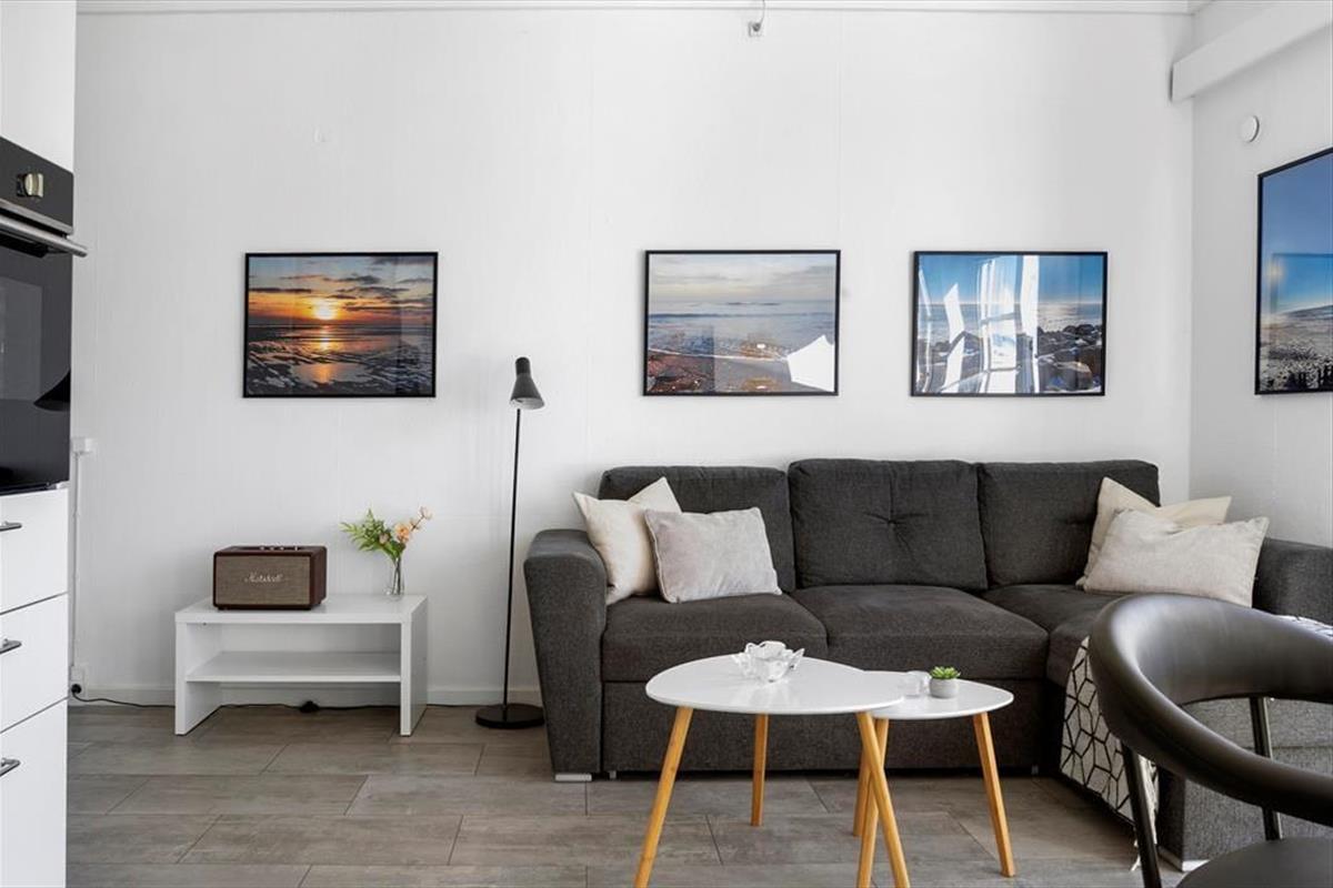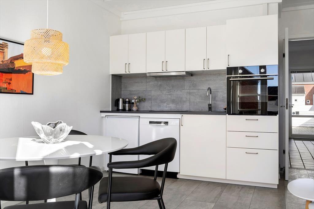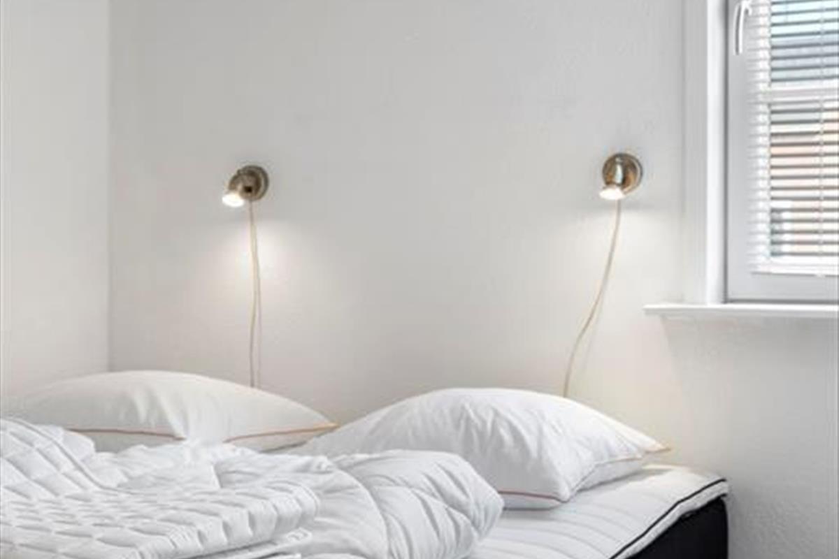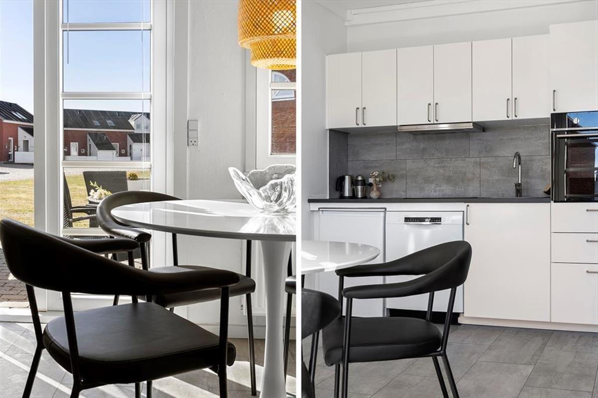 Im Innenraum empfängt dich eine helle und einladende Wohnatmosphäre. Alle Räume bestechen mit ihrer schönen und funktionalen Einrichtung. Die Wohnung beherbergt ohne Probleme bis zu vier Urlaubsgäste. Zur Wohnfläche zählen ein Badezimmer, ein Schlafraum mit einem Doppelbett und ein Durchgangszimmer mit einem Etagenbett. Falls du lieber im Wohnzimmer schlafen möchtest, ist dies auf dem komfortablen Schlafsofa möglich. Der Wohnraum beinhaltet darüber hinaus einen Esstisch und einen Fernseher mit dänischen und deutschen Sendern. Da die Küche offen in den Wohnraum integriert ist, befindest du dich selbst beim Zubereiten der Mahlzeiten mitten im Familiengeschehen.