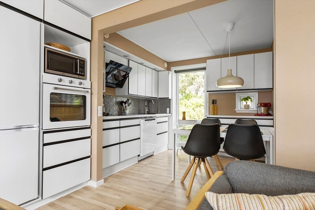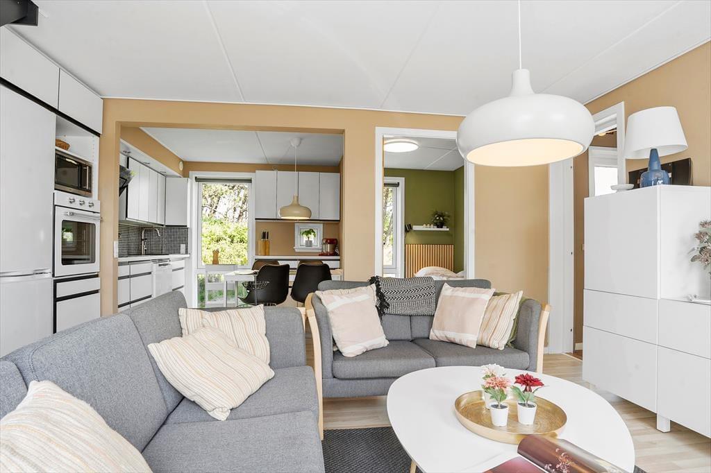 Bei diesem Ferienhaus handelt es sich um eine Doppelhaushälfte, in der sich 73 m² auf zwei Etagen verteilen. Das gediegene Steinhaus ist 2021 renoviert worden, was die schöne Einrichtung erklärt, die dich sowohl im Erdgeschoss als auch im ersten Stock erwartet. Zwei der Schlafzimmer befinden sich oben, ebenso das funktionelle Badezimmer mit Waschmaschine und Duschnische. Das dritte Schlafzimmer liegt im unteren Bereich, wo der größte Teil der Grundfläche von dem schönen Wohnbereich mit offener Küche und fantastischem Lichteinfall eingenommen wird.
