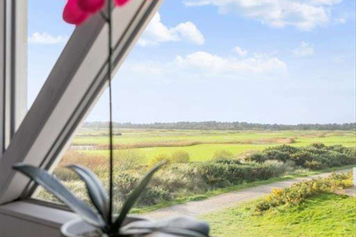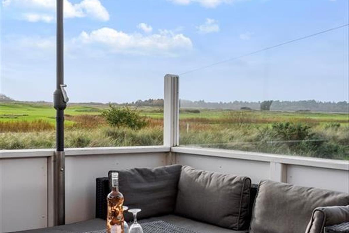Dieses schöne Ferienhaus liegt am südlichsten Ende des Feriencenters Rim Rømø und bietet dir den schönsten Blick über den Golfplatz und die flache Landschaft, die sich bis zum Wattenmeer erstreckt. Mit anderen Worten: Es bildet einen besonders schönen Rahmen für entspannende Momente im Inneren des Hauses und draußen auf den Terrassen – und wenn du deinen Urlaub aktiver verbringen möchtest, hast du problemlosen Zugang zu den vielen unterhaltsamen und sportlichen Gemeinschaftseinrichtungen des Feriencenters.