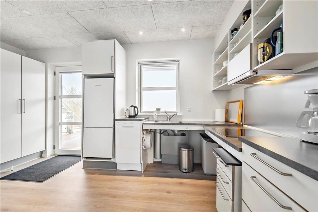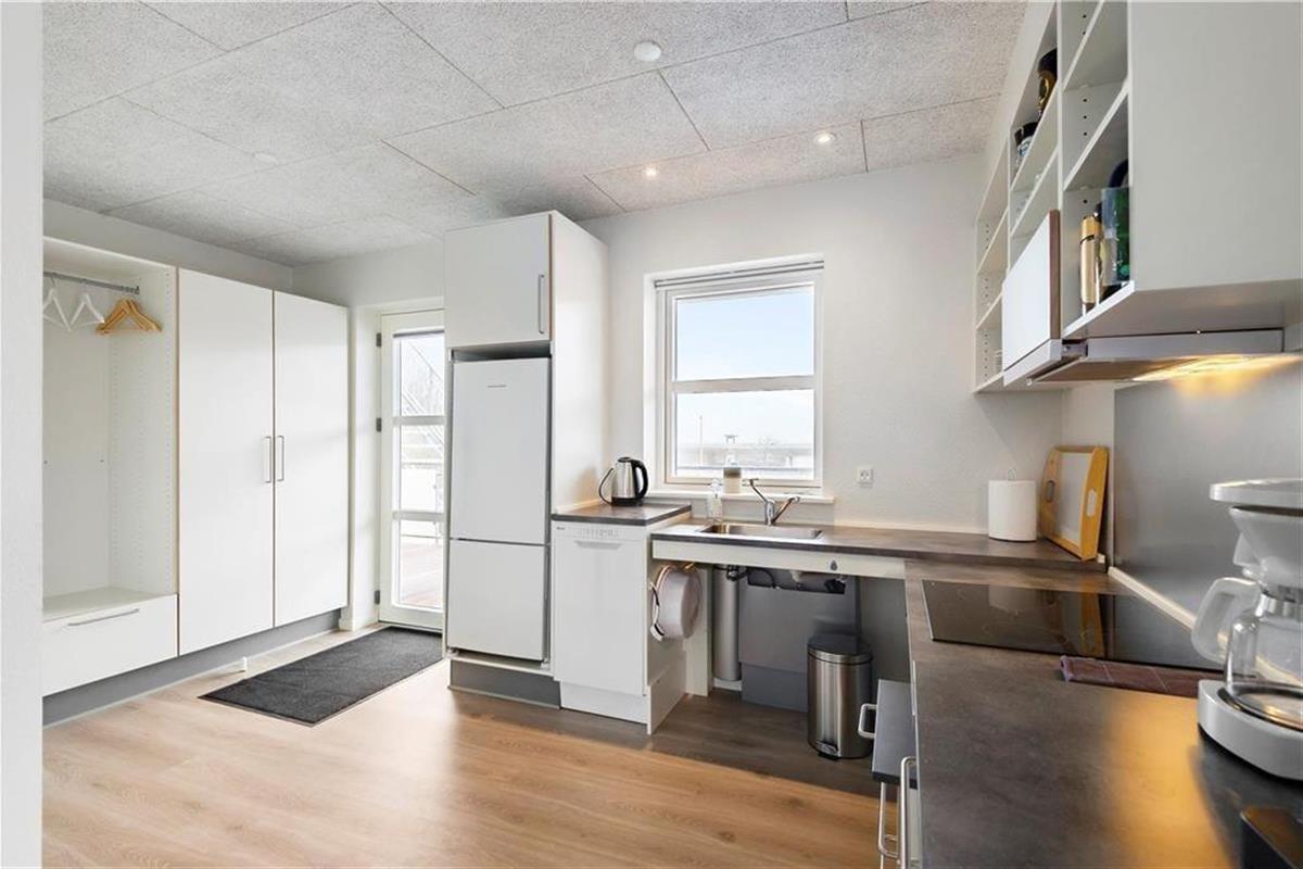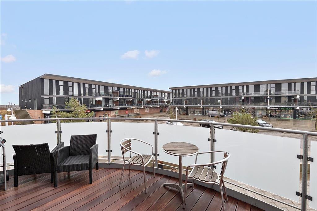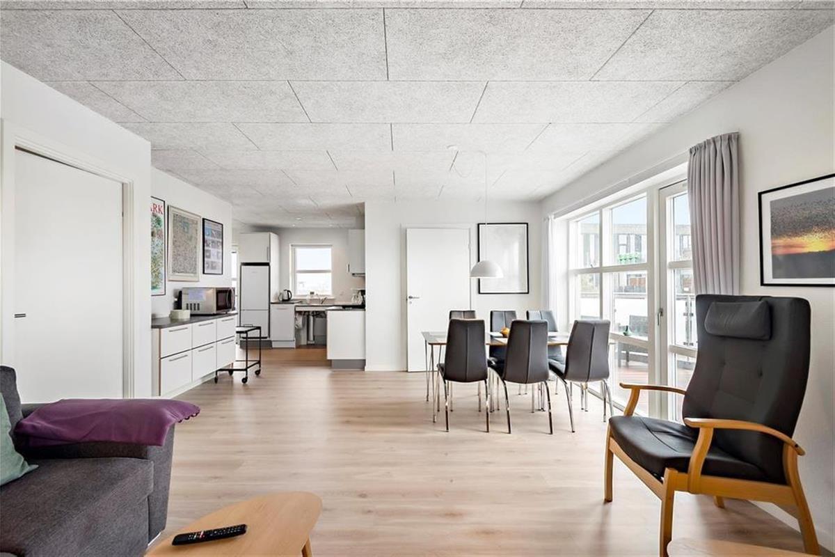 Vom Wohnbereich aus hast du direkten Zugang zu einem großen Balkon, der südöstlich zum Zentrum in Havneby ausgerichtet ist. Das bedeutet, dass du dem regen Treiben auf dem Platz folgen kannst, während du die Sonne und deinen Frühstückskaffee genießt. Gleichzeitig sorgt die Abschirmung des Balkons dafür, dass du nicht selbst zum Blickfang wirst. Darüber hinaus kannst du es dir auch auf der geräumigen Galerie gemütlich machen, die nach Norden ausgerichtet ist und Aussicht über das Wattenmeer ermöglicht. Außerdem muss noch erwähnt werden, dass zur Wohnung ein privater Parkplatz gehört.
