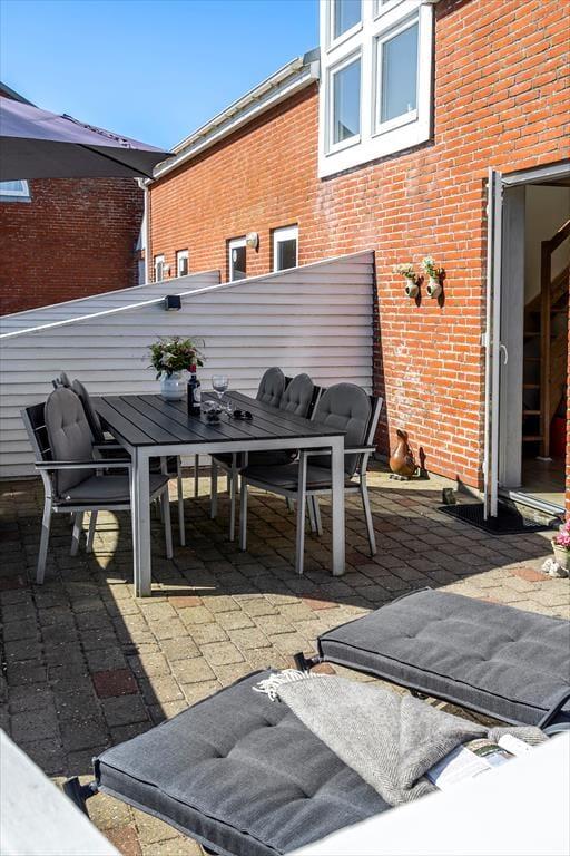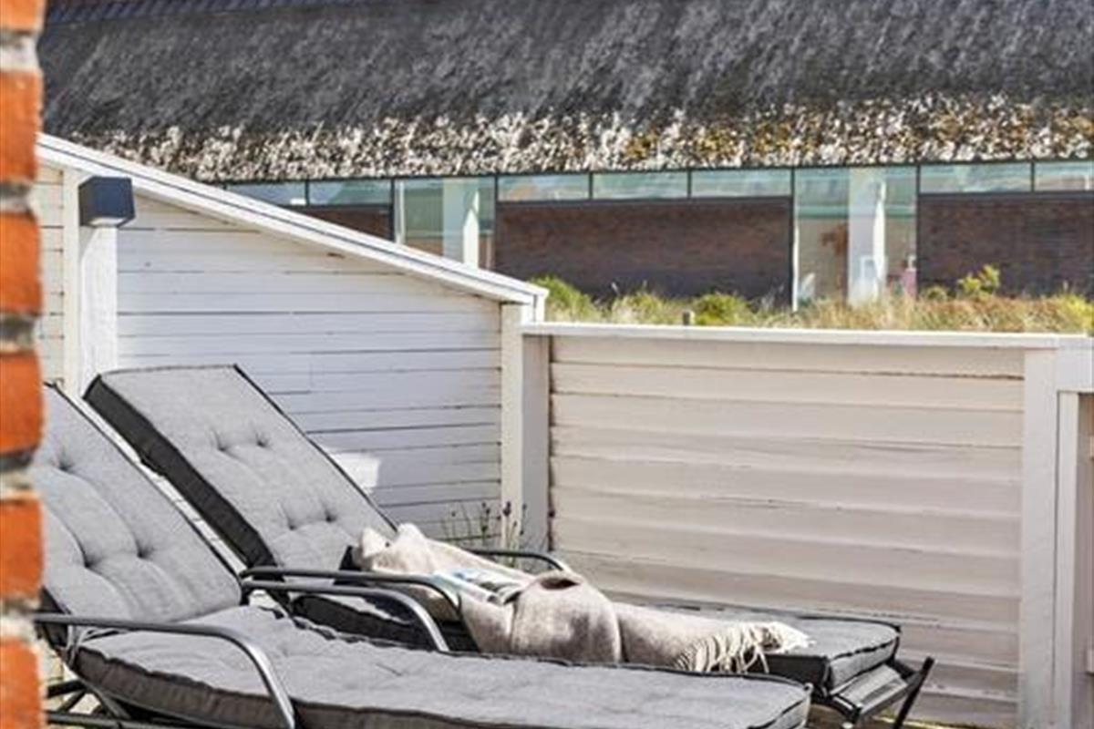 Wenn die Sommersonne hoch am Himmel über Havneby steht, sind die Terrassen der perfekte Ort, um einen Großteil des Urlaubs dort zu verbringen. Beide sind umzäunt, und während du auf der Ostterrasse die Morgensonne genießen kannst, wird die andere am Ende des Tages von der Abendsonne verwöhnt – und wer lieber im Schatten sitzen möchte, kann den Sonnenschirm aufspannen. Von der Ostterrasse aus hast du sogar Aussicht auf den Golfplatz und die flachen Salzwiesen, was dich vielleicht dazu inspiriert, hinauszugehen und die interessante Umgebung zu erkunden. Es gibt aber ebenfalls gute Gründe, im Feriencenter zu bleiben, denn hier stehen Spielpladser, Ballplätze, ein Minigolfplatz und vieles mehr zur Verfügung. Auch ein erfrischender Besuch im Freibad mit anschließendem Sonnenbad ist möglich und wer lieber drinnen schwimmen möchte, hat freien Zugang zu einer Schwimmhalle.