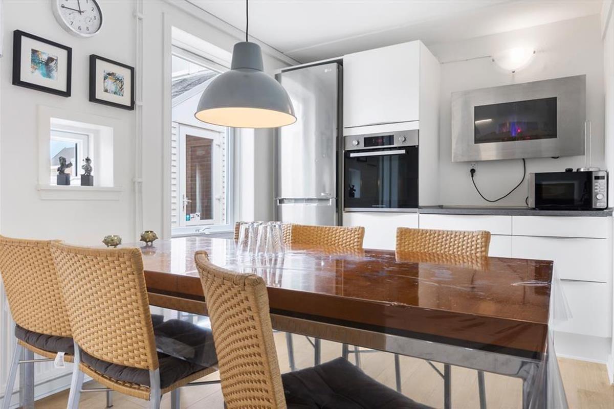 Im Ferienzentrum Rim Rømø säumen rote Ziegelhäuser die ruhigen Straßen, und genau hier könnt ihr euch auf 73 m², verteilt auf zwei Etagen, ausbreiten. Die Einrichtung ist auf beiden Etagen hell und einladend, sodass ihr euch von Anfang an wohlfühlt – vom Moment, in dem ihr in einem der Schlafzimmer morgens die Augen öffnet, bis hin zu einer erfrischenden Dusche im Badezimmer im Obergeschoss. Im Erdgeschoss befindet sich der Wohnbereich, wo ihr zusammen in der Küchenecke kochen und die Mahlzeiten am Esstisch genießen könnt. Nach dem Essen ist es wunderbar, sich in der bequemen Sofaecke zu entspannen, Karten zu spielen, einen Film auf dem Flachbildfernseher anzusehen oder über die Pläne für den nächsten Tag zu plaudern.