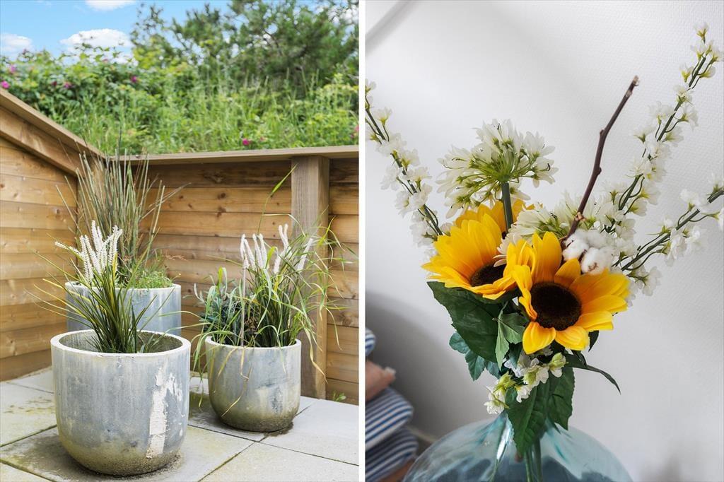 Wenn du an einem sonnigen Sommertag Eiskaffee zubereitet hast, gibt es nichts Besseres, als ihn draußen in der frischen Luft zu genießen. Es gibt Terrassen auf beiden Seiten des Hauses, aber die, die an das Wohnzimmer grenzt, wird vermutlich dein Lieblingsplatz. Sie liegt abgeschirmt und bietet Aussicht auf einen Windschutz aus duftenden Heckenrosen. Abends könnt ihr grillen, und wenn die Kinder noch Energie haben, nachdem das Abendessen beendet ist, ist es nur ein kurzer Weg zum nächsten Spielplatz des Ferienzentrums, wo sie schaukeln und klettern können.