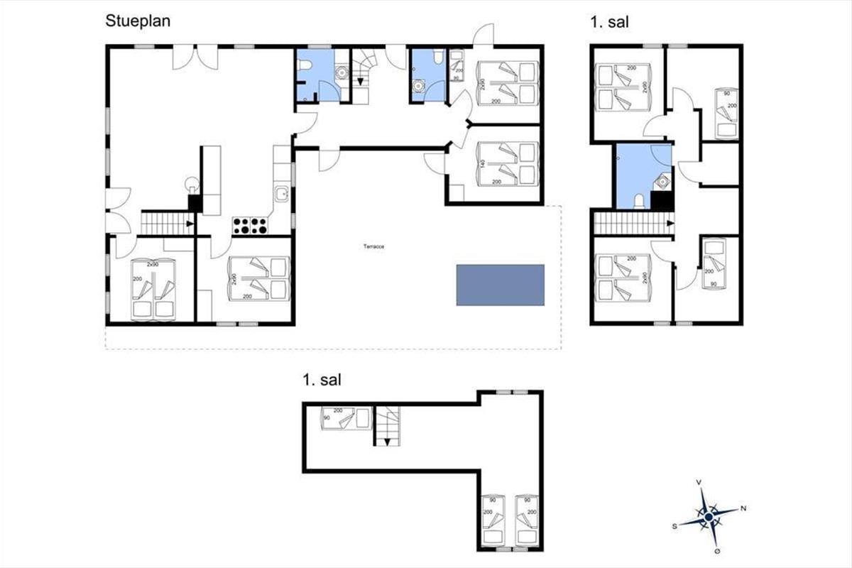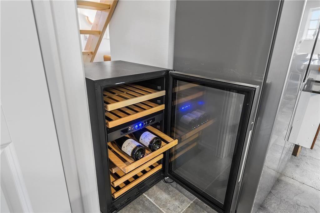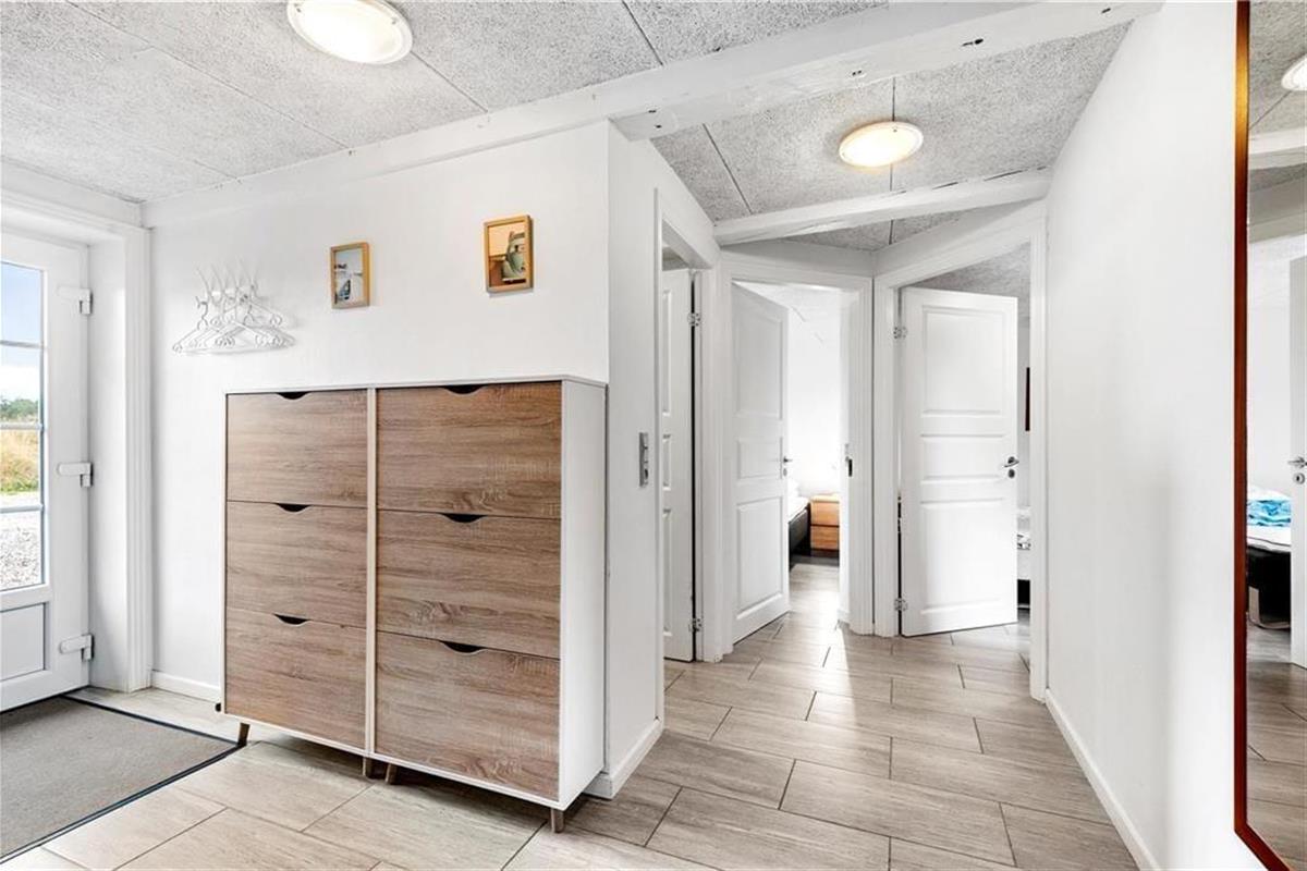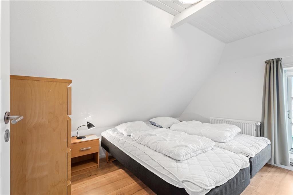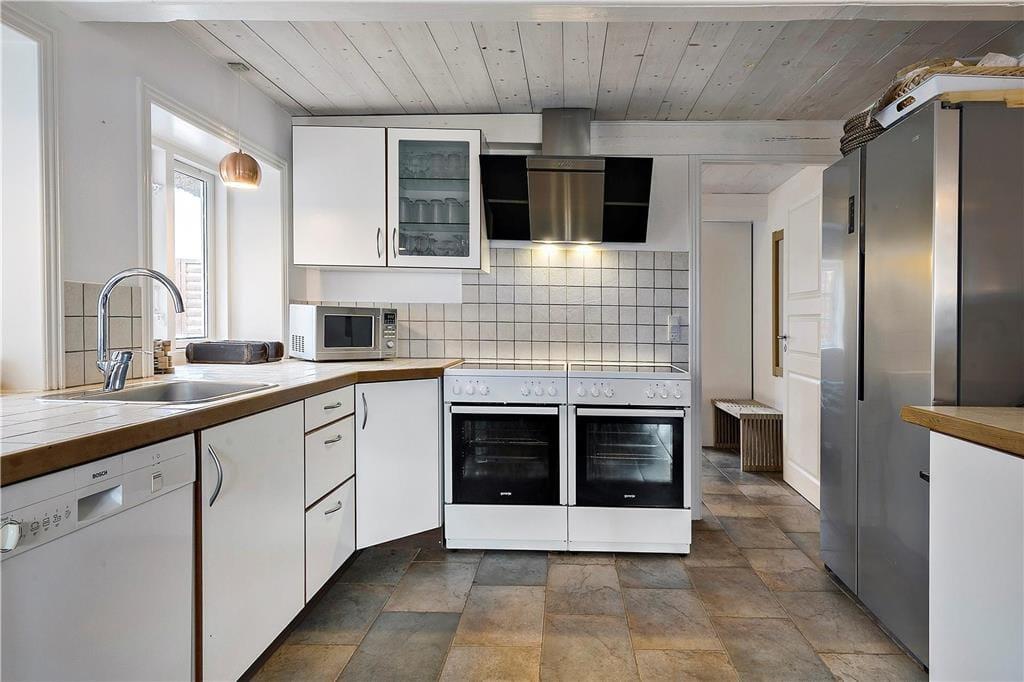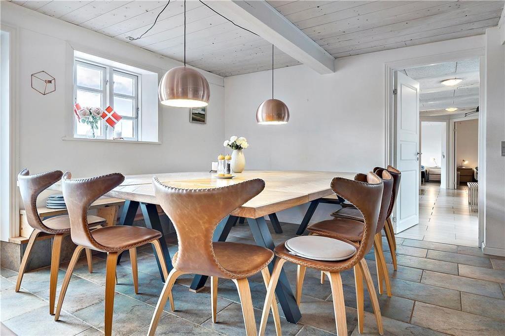 Das ursprünglich aus dem Jahr 1827 stammende Haus wurde nach allen Regeln der Kunst renoviert. Hier findest du modernen Komfort und authentischen Rømø-Charme; mit Strohdach, verputzter Fassade und Sprossenfenstern. Innen herrscht eine unglaublich einladende Atmosphäre und du merkst, dass die Renovierung mit großem Respekt gegenüber dem ursprünglichen Stil vorgenommen wurde. Das Herz des Hauses ist der große Aufenthaltsraum, wo Küche und Wohnzimmer offen miteinander verbunden sind. Sichtbare Deckenbalken und rustikale Bodenfliesen sorgen für ein stimmiges Ambiente. Der Raum ist eingerichtet mit einem großen Esstisch, an dem sich alle zu den Mahlzeiten versammeln können. Als zusätzliches Detail steht ein 2-Zonen-Weinkühlschrank zur Verfügung. Zudem gibt es eine große Sofagruppe und eine gemütliche Ecke mit Sesseln vor dem Kaminofen. Es gibt insgesamt acht Zimmer im Haus: vier Doppelzimmer im Erdgeschoss und zwei Doppelzimmer sowie ein Einzelzimmer im 1. Stock. Zudem gibt es drei Badezimmer.