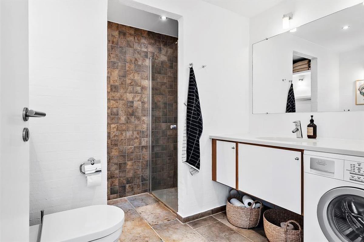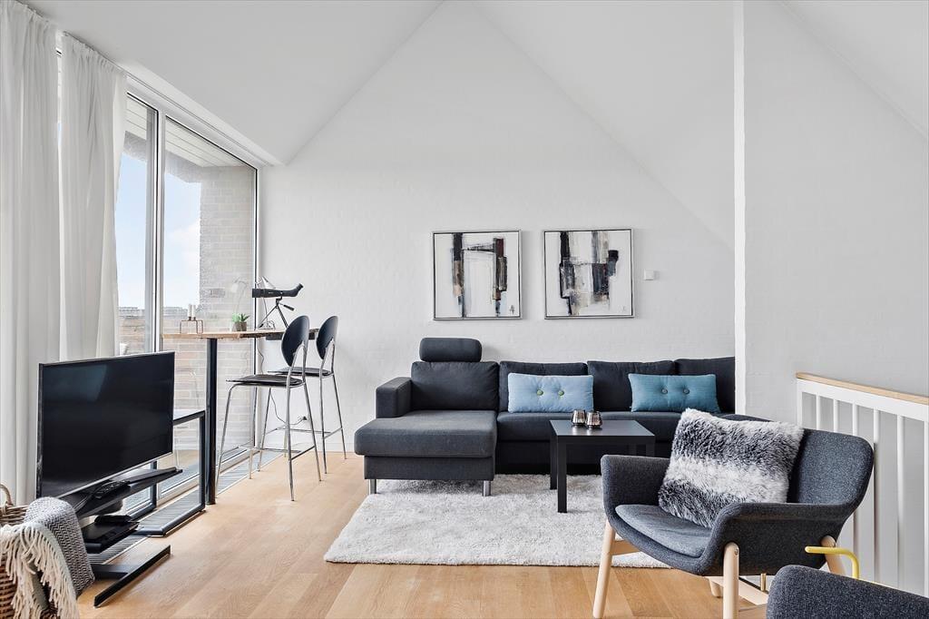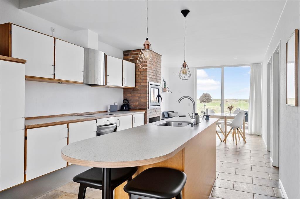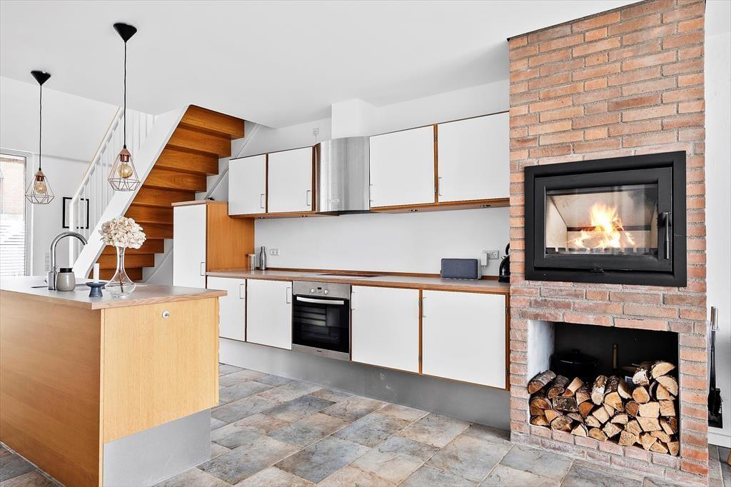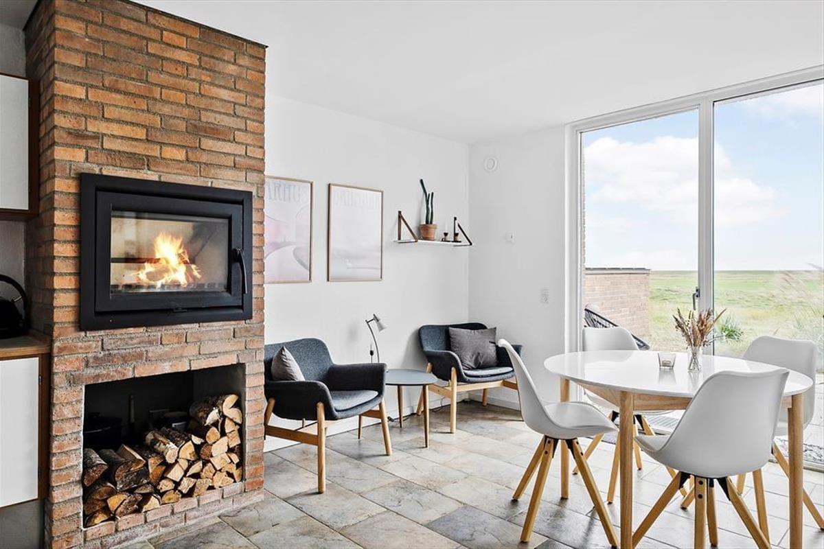 Auf den 97 m² Wohnfläche im Innenbereich gibt es ausreichend Platz für vier Personen, und du hast sogar zwei Wohnzimmer zur Auswahl, wenn du Zeit gemeinsam verbringen möchtest. Die große Wohnküche im Erdgeschoss ist ein idealer Ort, wenn du kochen oder dich einfach am integrierten Kamin ausruhen möchtest. Der Esstisch befindet sich direkt am Fenster, sodass du beim Kaffeetrinken oder Mittagessen direkt auf die grüne Landschaft blicken kannst – und die Aussicht wird noch besser, wenn du dich in die erste Etage begibst, um dort im hellen und gut eingerichteten Wohnraum zu entspannen. Den schönen Ausblick auf die Natur kann man auch von einem der beiden Schlafzimmer im Erdgeschoss genießen. Beide Schlafräume sind mit Kleiderschränken und guten Doppelbetten ausgestattet. Zwischen den beiden Zimmern befindet sich ein Badezimmer, welches wie die anderen Räume gepflegt und modern eingerichtet ist.