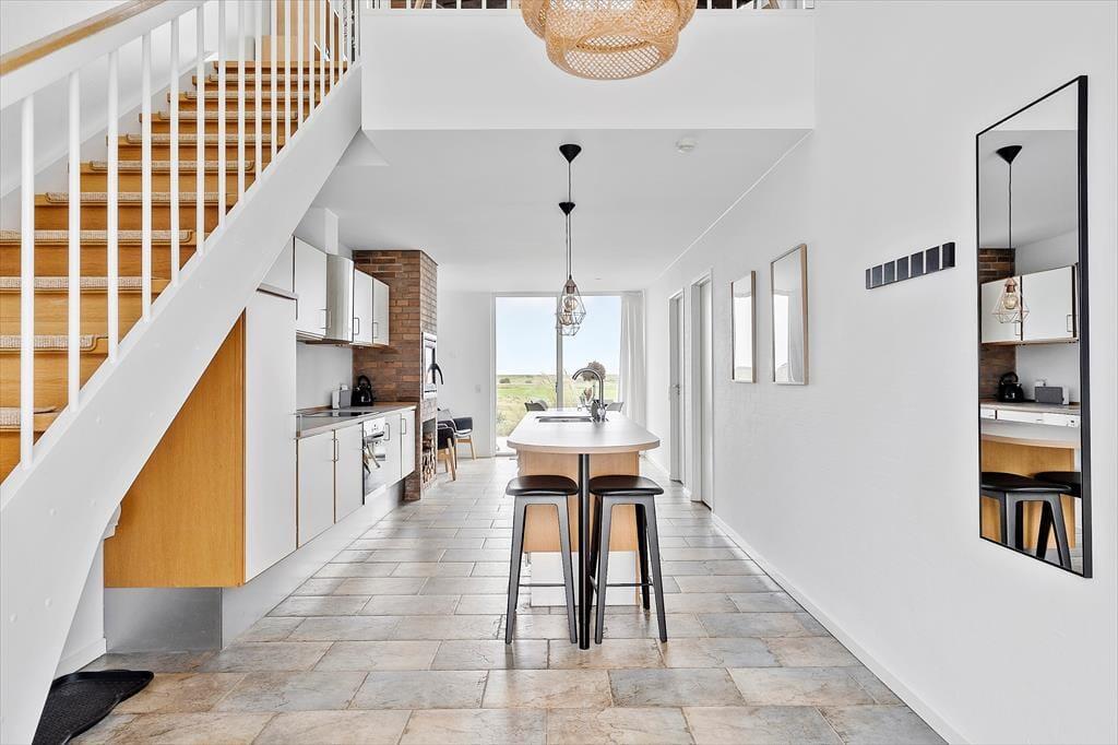 Entscheidest du dich für dieses Feriendomizil am Gulirisvej 60, so wird dein Urlaub in einer wunderschönen Umgebung im Ort Havneby stattfinden. Das Ferienhaus erscheint hell und freundlich und ist in zwei Ebenen aufgeteilt. Von beiden Etagen aus kannst du die fantastische Aussicht über den schönen Links-Golfplatz des Rømø Golf Clubs und die flache Landschaft bis zum Wattenmeer genießen.