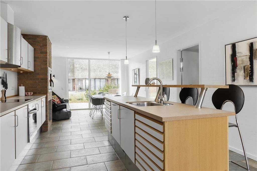 Das Haus ist ein Qualitätsgebäude aus dem Jahr 2007, das schön und funktional eingerichtet ist. Hier gibt es zwei Etagen, auf denen du dich ausbreiten kannst. Das Erdgeschoss sowie das Obergeschoss sind mit großen Fensterfronten ausgestattet, die viel Sonnenlicht hereinlassen. Das Erdgeschoss bietet ein herrliches Badezimmer und zwei geräumige Schlafzimmer, die beide mit einem Doppelbett eingerichtet sind. Alle Räume des Erdgeschosses verfügen über eine Fußbodenheizung - auch im Wohnbereich, in dem Wohnzimmer und Küche elegant kombiniert wurden. Hier kannst du in der gut ausgestatteten Küche kochen und anschließend die zubereiteten Köstlichkeiten am Esstisch neben dem eingebauten Kamin genießen. Wenn du Lust hast, einen Film zu schauen oder es dir auf den komfortablen Sofas gemütlich zu machen, kannst du dies im Wohnbereich im Obergeschoss tun. Das Wohnzimmer bietet auch zwei Schlafsofas, sodass dir hier auch weitere Schlafplätze zur Verfügung stehen.