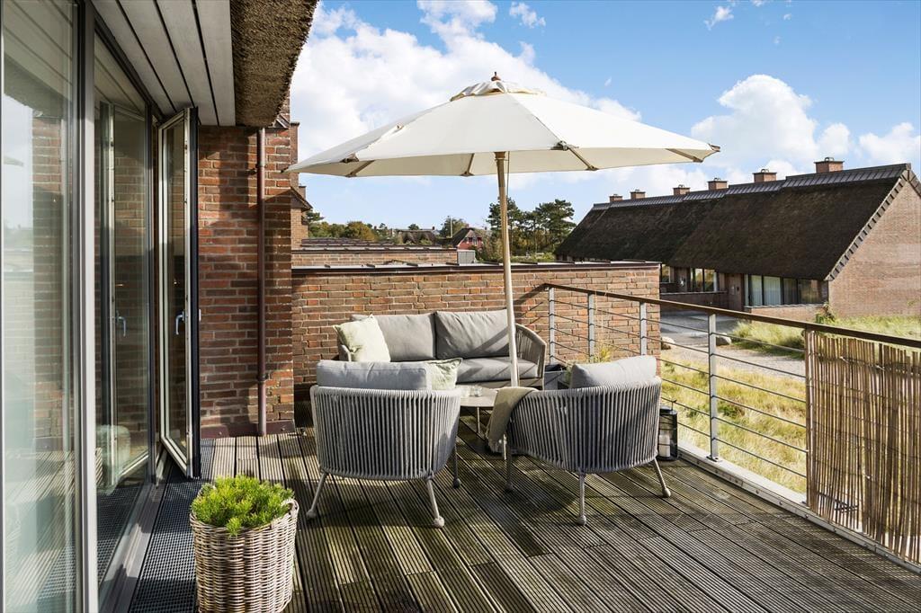 Auch wenn es in Havneby und der Umgebung viel zu sehen und zu erleben gibt, ist es auch wunderbar, das schöne Wetter in Ruhe auf den Außenbereichen des Hauses zu genießen. Vom Wohnzimmer im ersten Stock kannst du direkt auf einen nach Süden ausgerichteten Balkon treten, der ein herrlicher Ort ist, um sich in der Sonne zurückzulehnen – es sei denn, du bevorzugst es, auf der großen gepflasterten Terrasse des Ferienhauses im Erdgeschoss zu sitzen, die sich ebenfalls nach Süden ausdehnt. Genau wie die Innenausstattung strahlen auch die Gartenmöbel Gemütlichkeit und hohe Qualität aus, und die naturnahe Bepflanzung rund um das Haus trägt dazu bei, ein fantastisches Urlaubsgefühl zu schaffen.