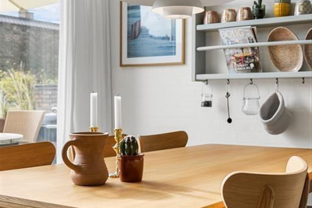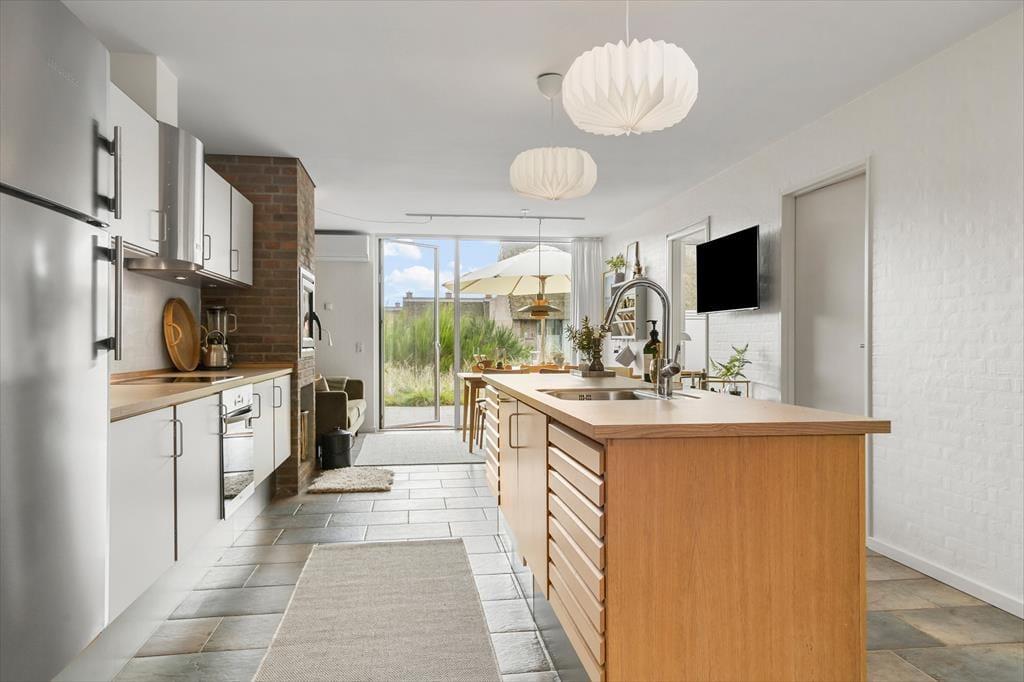 Genauer gesagt handelt es sich um ein schön gestaltetes Eckreihenhaus mit Reetdach, rotbrauner Ziegelfassade und großen Fensterfronten sowohl im Erdgeschoss als auch im ersten Stock. Das Baujahr ist 2006, aber die charmante Einrichtung zeigt, dass es 2024 renoviert wurde, sodass sowohl Komfort als auch Ästhetik erstklassig sind – hier findest du und deine Lieben den perfekten Rahmen für entspannte Tage. Im Wohnbereich im Erdgeschoss sind Küche und Wohnzimmer auf praktische Weise miteinander verbunden, während im ersten Stock ein weiteres Wohnzimmer mit einer großen gemütlichen Couch auf dich wartet. Die drei Schlafzimmer des Hauses sorgen dafür, dass alle eine erholsame Nachtruhe genießen können, sodass ihr voller Energie seid, um Rømø am Tag zu erkunden.