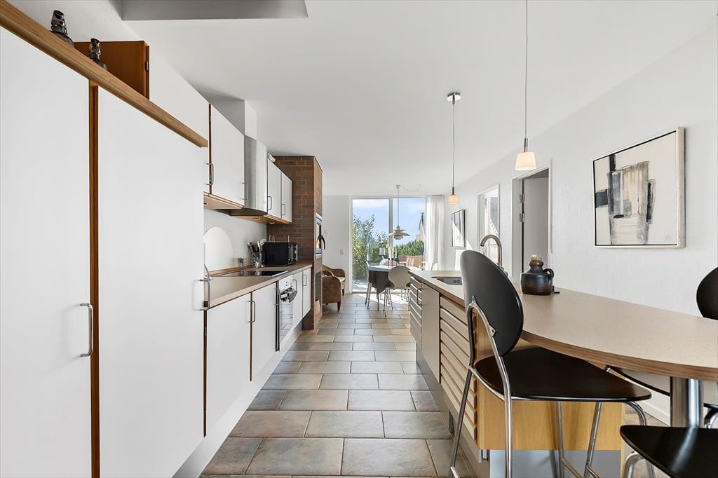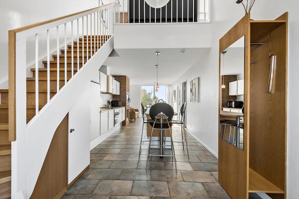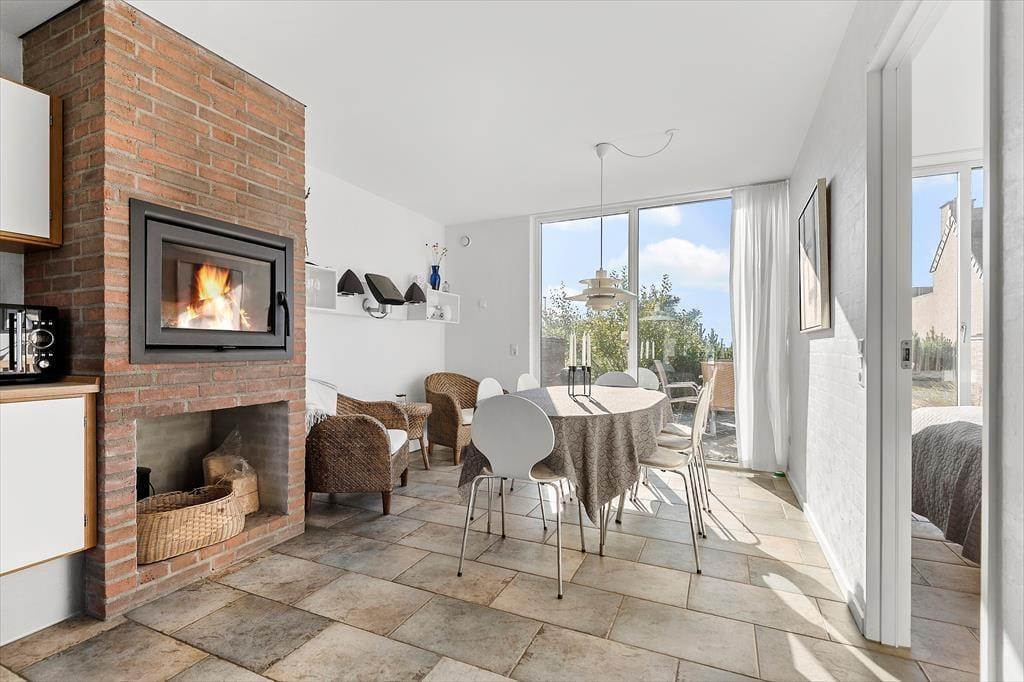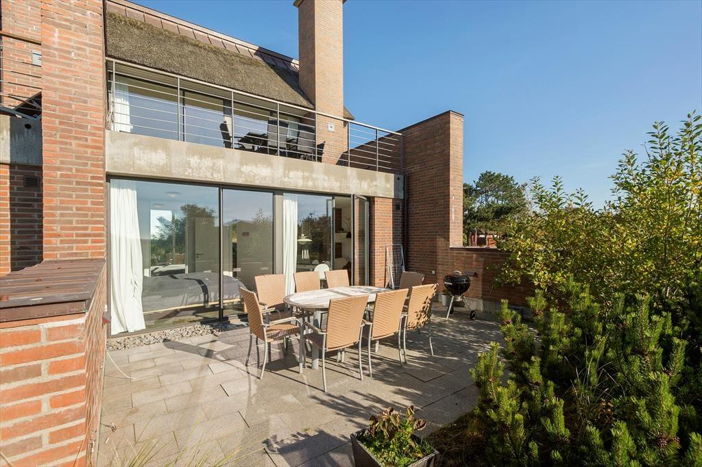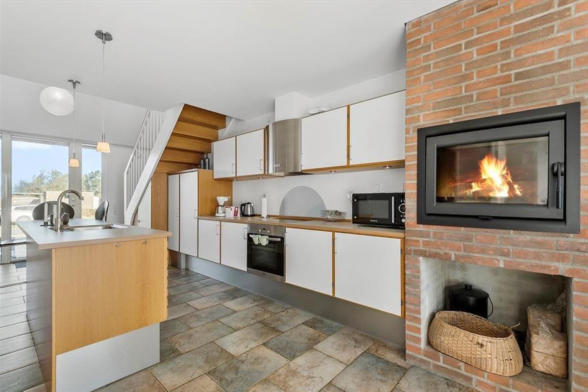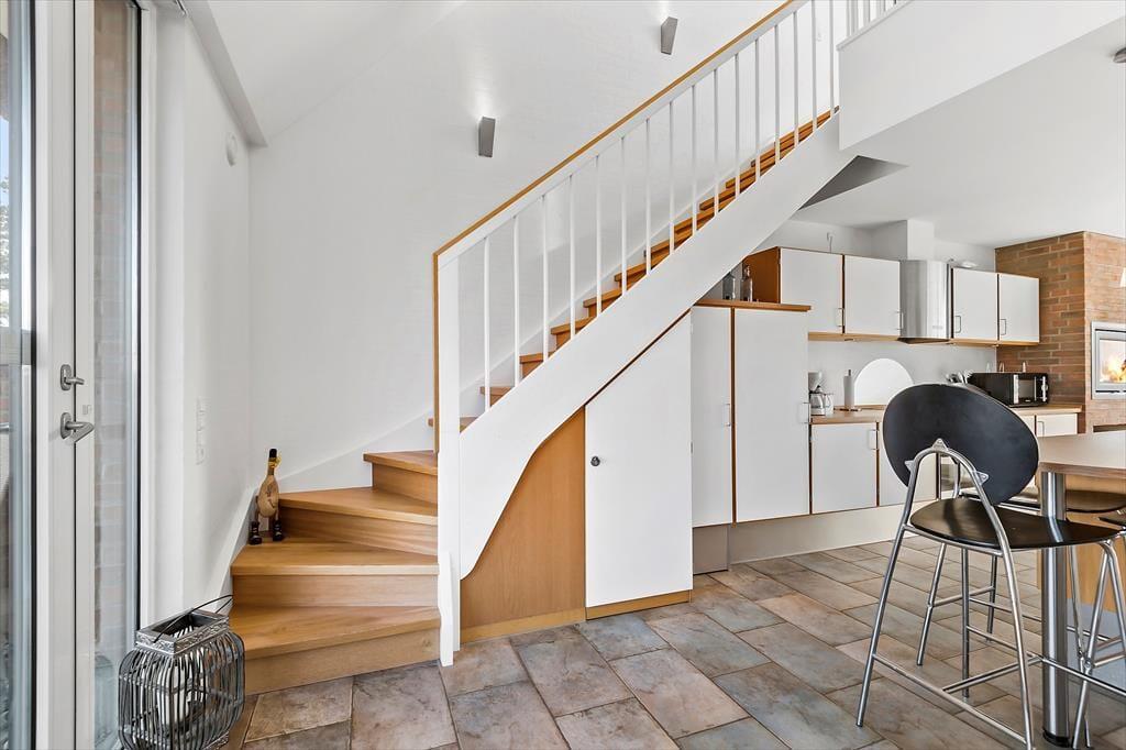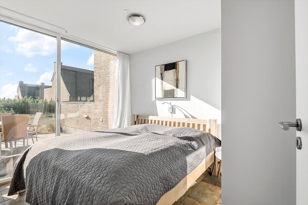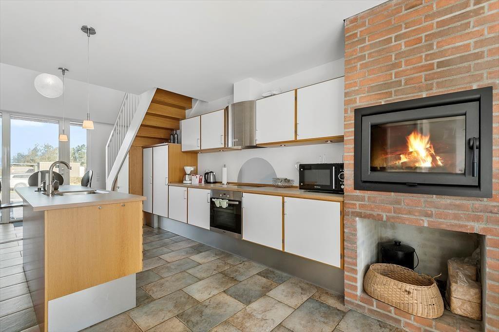 Dieses Haus ist ein vom Architekten entworfenes Reihenhaus mit Strohdach und rot-brauner Ziegelsteinfassade. Hier handelt es sich sogar um ein Endreihenhaus, sodass man keine Nachbarn zu der einen Seite hat. Wie man es von einem Qualitätsgebäude von 2007 erwarten kann, ist das Ferienhaus mit einem schönen Badezimmer und einer gut ausgestatteten Küche ausgestattet. Die große Fensterfront lässt viel Sonnenlicht rein, und man kann die Aussicht genießen. Und als komfortables, aber fast nicht ersichtliches Detail hat das ganze Haus Fußbodenheizung. Das Haus besteht aus 2 Schlafzimmern, dem zuvor schon genannten Badezimmer und einem Aufenthaltsraum mit Wohnzimmer und integrierter Küche. Wenn du das Hier und Jetzt genießen möchtest, geh einfach hoch in die erste Etage. Von hier aus kannst du die Aussicht über den Rømø Golfplatz mit Links-Course und das Wattenmeer auf der anderen Seite des Havneby-Deiches genießen.
