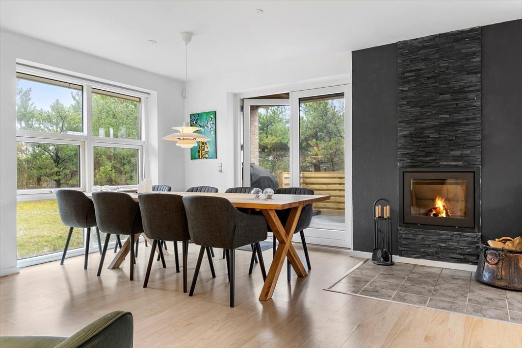 Das reizende Ferienhaus begrüßt dich einladend mit seinen hellen und geräumigen Räumen, die zu Gemütlichkeit und Zusammensein einladen. Die offene Küche ist ideal für Familienaktivitäten, bei denen du köstliche Mahlzeiten zubereiten kannst, während du die Gesellschaft deiner Lieben genießt. Der große Essbereich bietet Platz für gemeinsame Zeit, wo Spiel und lebhafte Gespräche gedeihen können. Hier gibt es Raum, um Zeit miteinander zu genießen und Erinnerungen zu schaffen. Im Wohnzimmer kannst du dich vor dem Kamin entspannen, in ein gutes Buch vertiefen oder Fotos von den Urlaubstagen ansehen. Mit mehreren Schlafzimmern gibt es Platz genug, um sich nach einem erlebnisreichen Tag zurückzuziehen, damit jeder seine Nachtruhe bekommt.