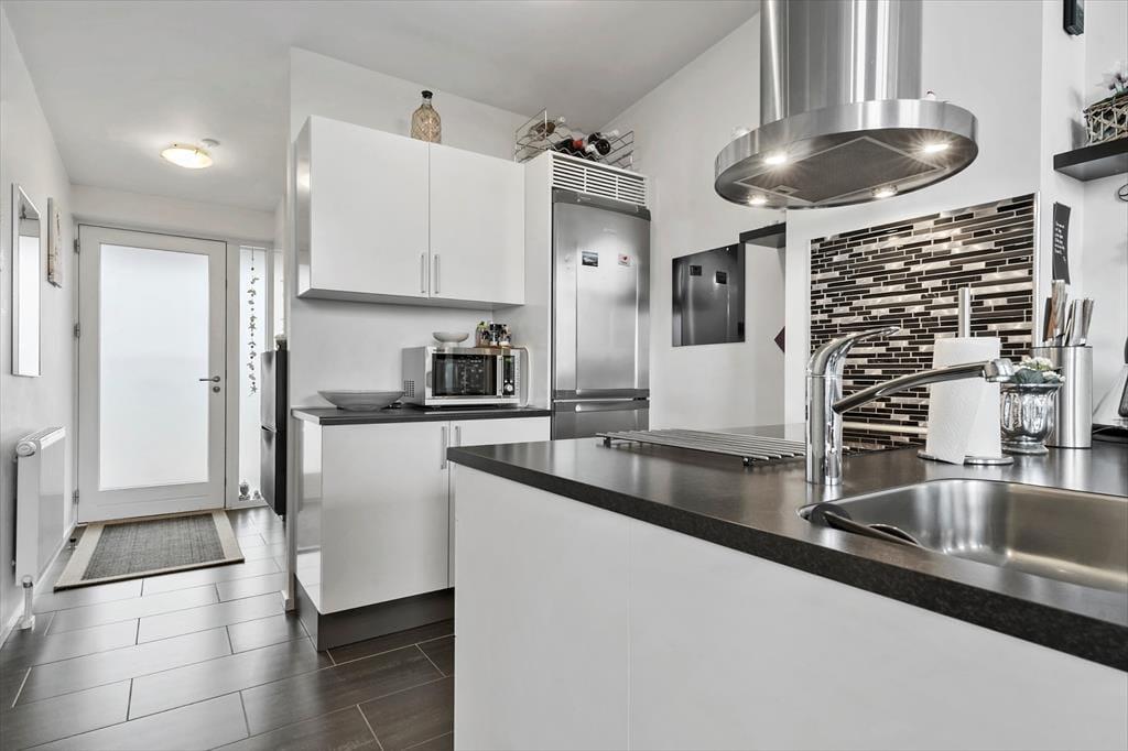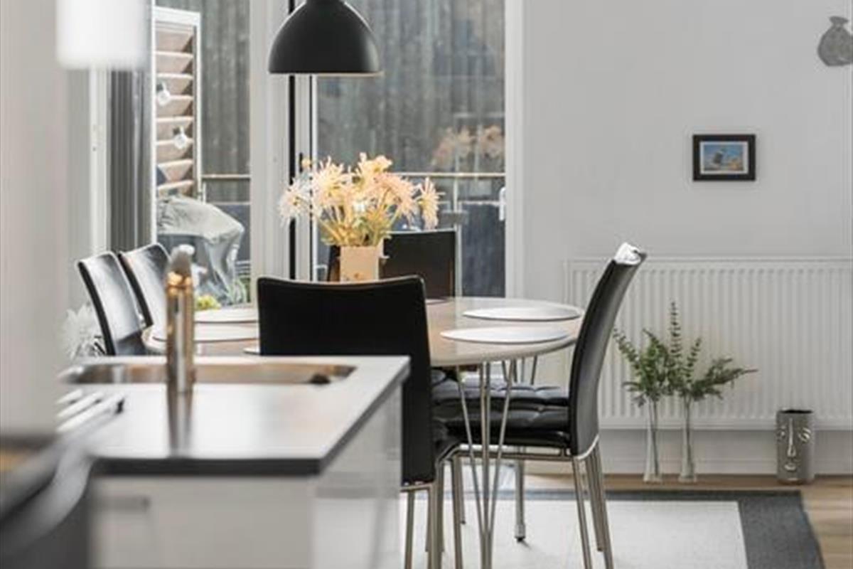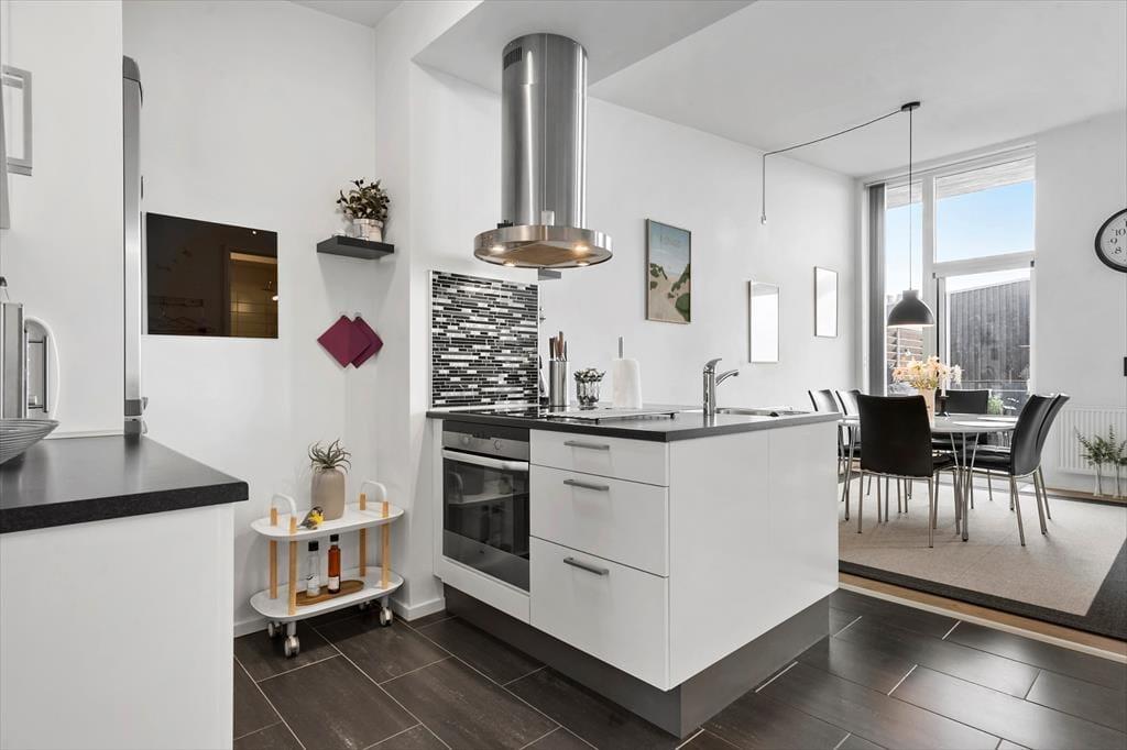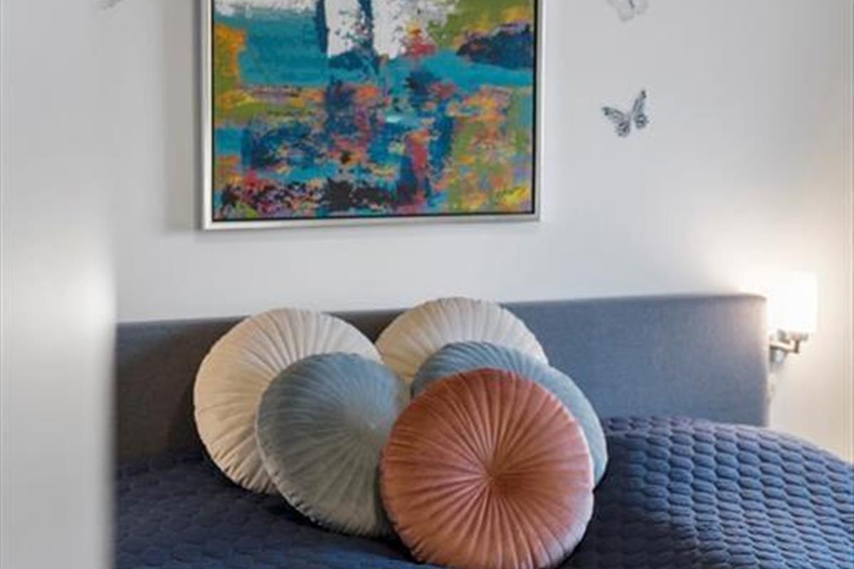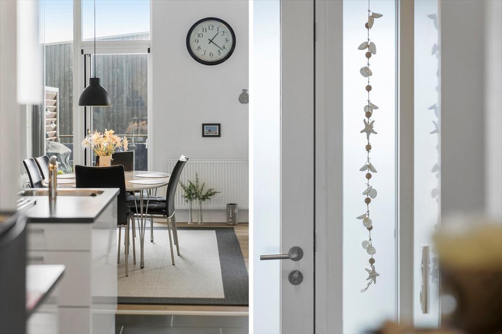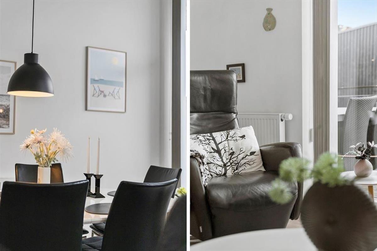 Wenn du die Wohnung betrittst, empfängt dich ein heller und einladender Raum, in dem die stilvolle Einrichtung sofort eine warme und einladende Atmosphäre schafft. Die großen Fenster sorgen nicht nur für einen angenehmen Lichteinfall, sondern bieten auch einen schönen Blick über die Stadt und den Platz in Havneby – perfekt für eine Tasse Kaffee am Morgen oder ein Glas Wein am Abend. Die Wohnung bietet eine harmonische Verbindung zwischen Wohn- und Schlafbereich, was eine gute Funktionalität und ein offenes Design gewährleistet. Du kannst dich im bequemen Sofa entspannen, eine Mahlzeit am Esstisch genießen oder einfach die Aussicht bewundern. Die gemütlichen Details wie Liegestühle und schöne Kunstwerke verleihen dem Raum eine persönliche Note, und die praktische Einrichtung sorgt dafür, dass dein Aufenthalt komfortabel und unkompliziert verläuft.