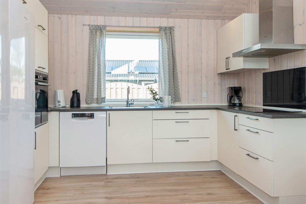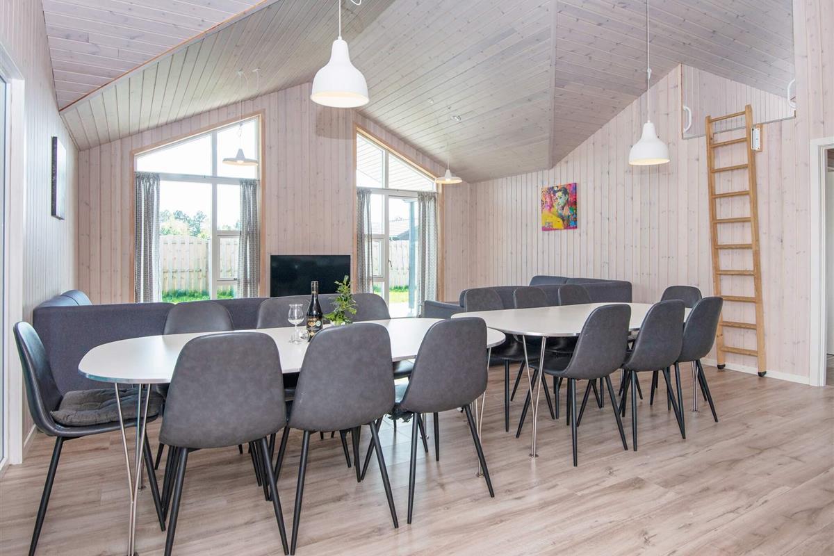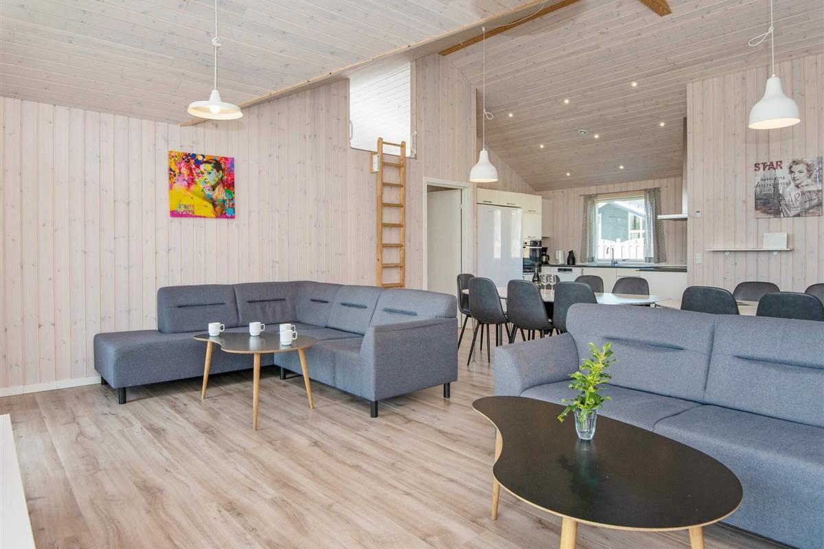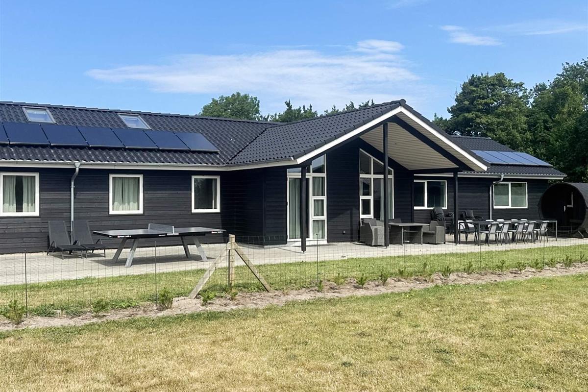 #Das geräumige Ferienhaus hat einen offenen Küchen-/Wohnbereich mit Essecke. Zur guten Küchenausstattung gehören auch Cerankochfeld, Backofen und Geschirrspüler. Das Haus ist generell umfassend ausgestattet und bietet sich mit seinen 5 Schlafzimmern und seinem Schlafboden mit 6 weiteren Schlafplätzen auch für einen Mehrfamilienurlaub an. Dafür stehen drei Badezimmer bereit, eines davon im Anschluss an den Poolbereich mit Whirlpool. Sollte das Wetter mal nicht so mitspielen, gibt es im sogenannten Aktivitätsraum einen Tischkicker sowie einen Gamer-Bereich mit großem TV, Nintendo Classic Mini mit 30 Spielen, u.a. Pac-Man, Galaga, Dr. Mario, etc.