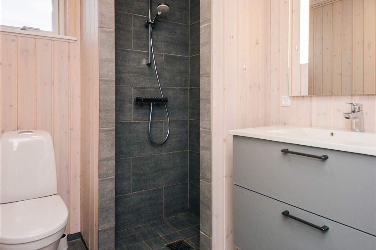 Bad: WC, Waschb., Dusche, Fußbodenheiz.