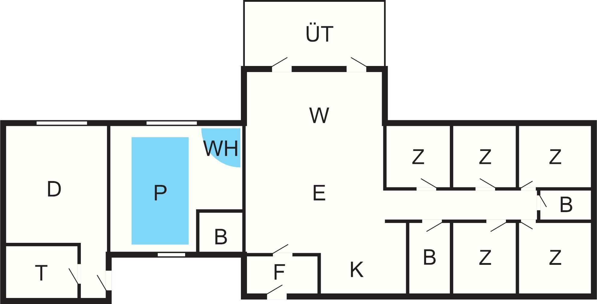 5 Schlafz.: (2B)+(2B)+(2B)+(2B)+(2B), Kinderbett