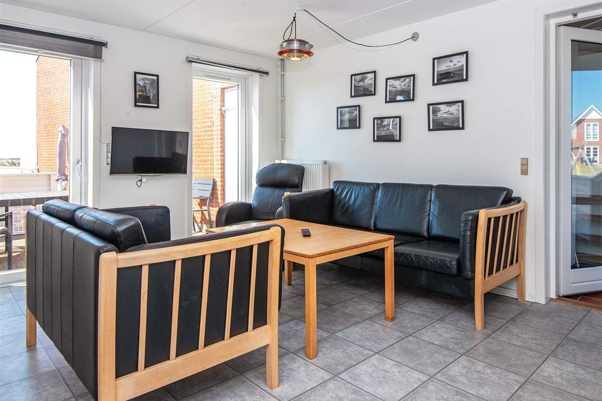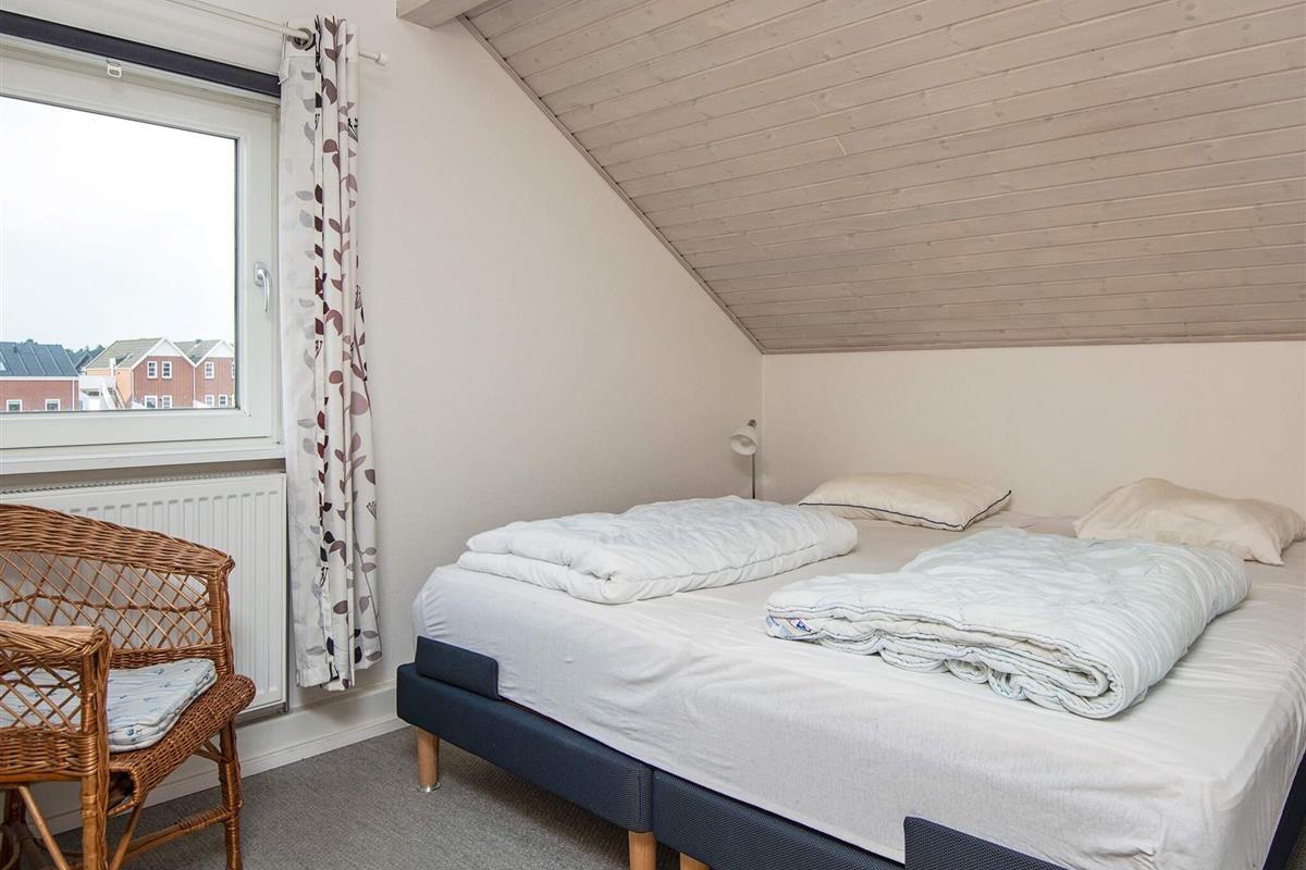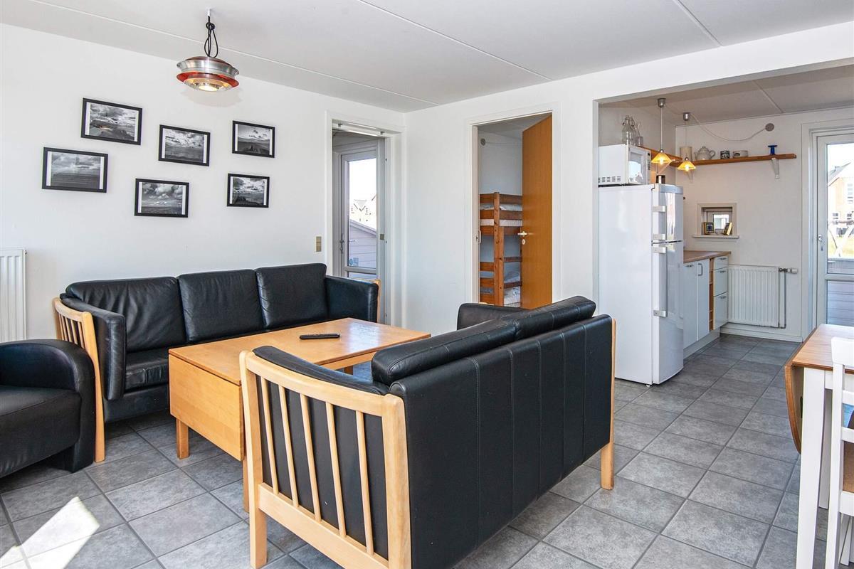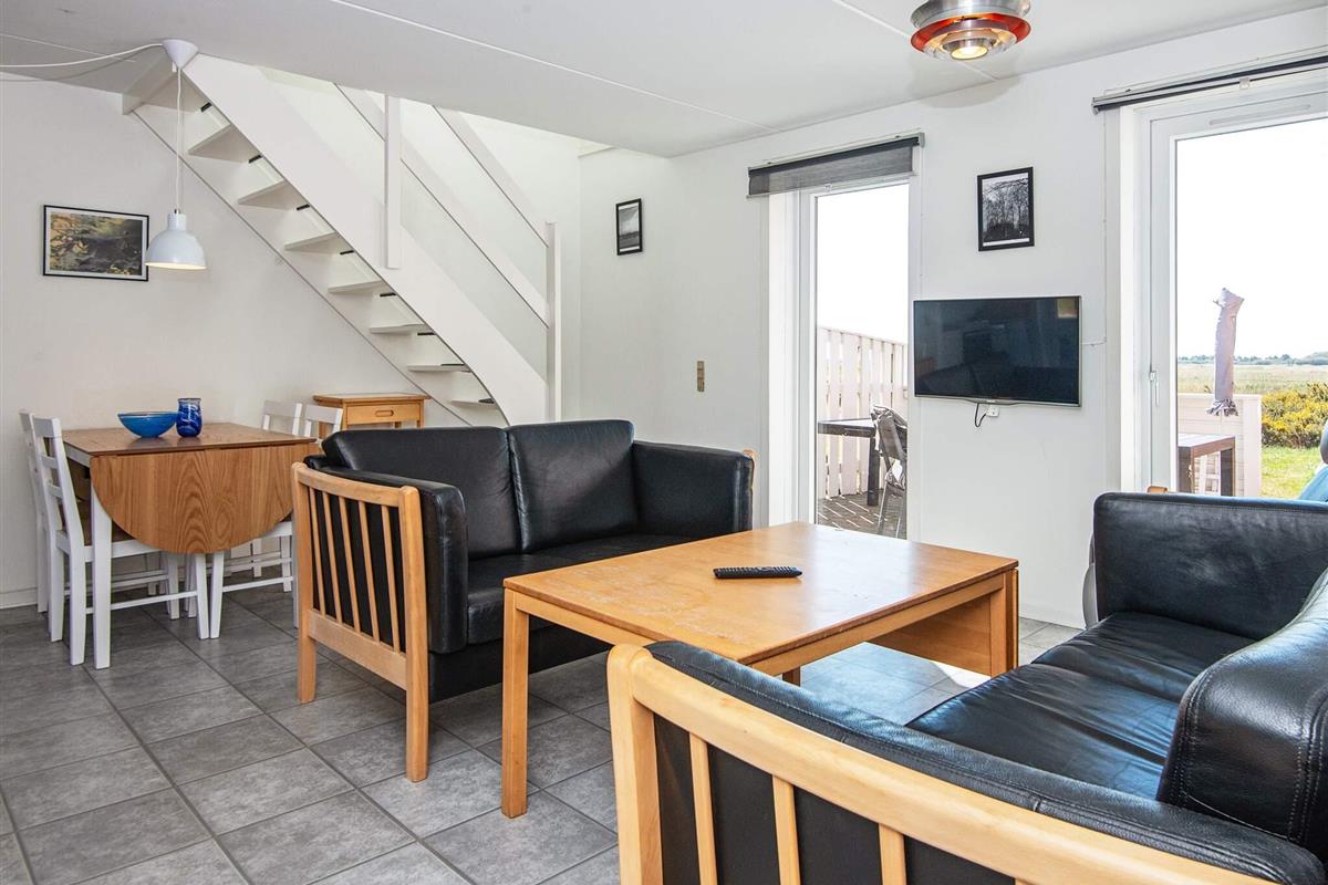 Reihenhaus im Ferienzentrum Rim auf der Insel Rømø mit zahlreichen gemeinschaftlichen Freizeitaktivitäten für Jung und Alt. Das Haus erstreckt sich über zwei Etagen und bietet einen offenen Küchen-/Wohnbereich für das Familienleben. Von dort aus haben Sie Zugang zur privaten Terrasse, auf der Sie grillen und die Sonne genießen können. Im Erdgeschoss befindet sich ein Schlafzimmer mit Etagenbett. Im Obergeschoss befinden sich zwei weitere Schlafzimmer mit jeweils einem Doppelbett und zwei Einzelbetten sowie ein Badezimmer mit Dusche.