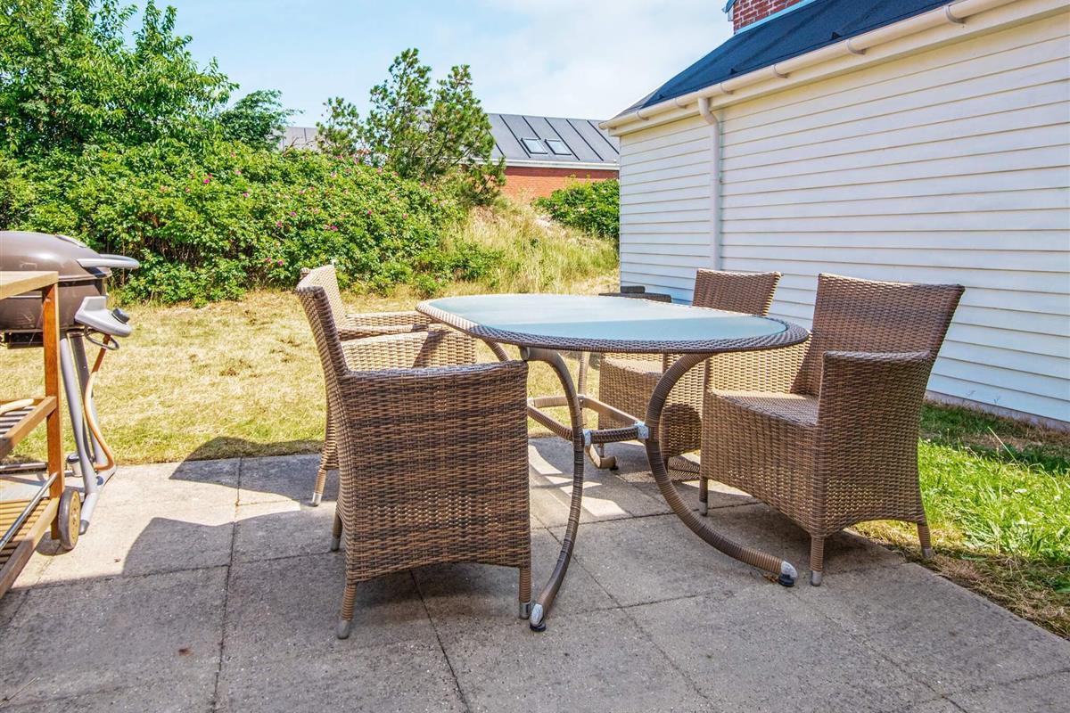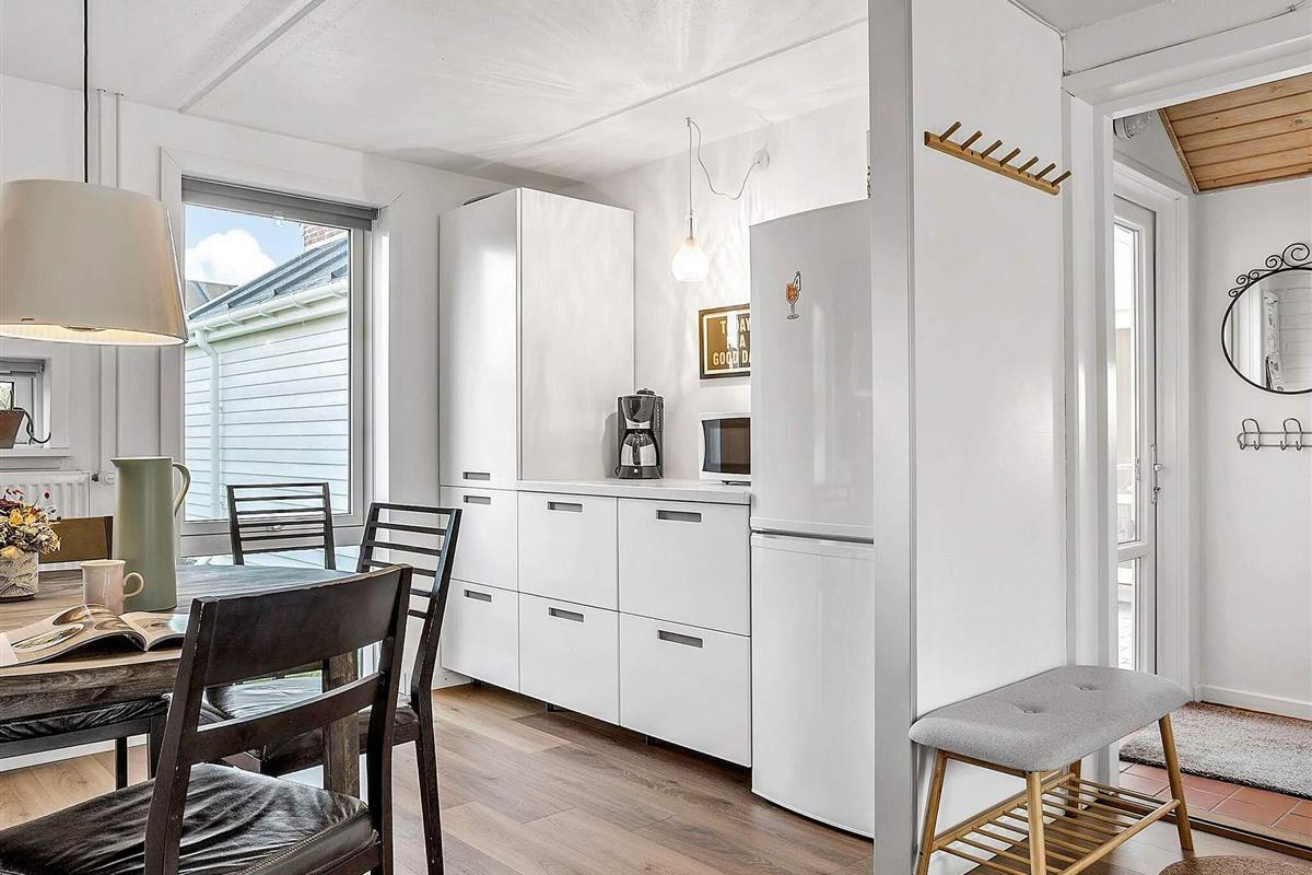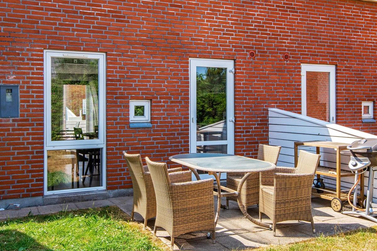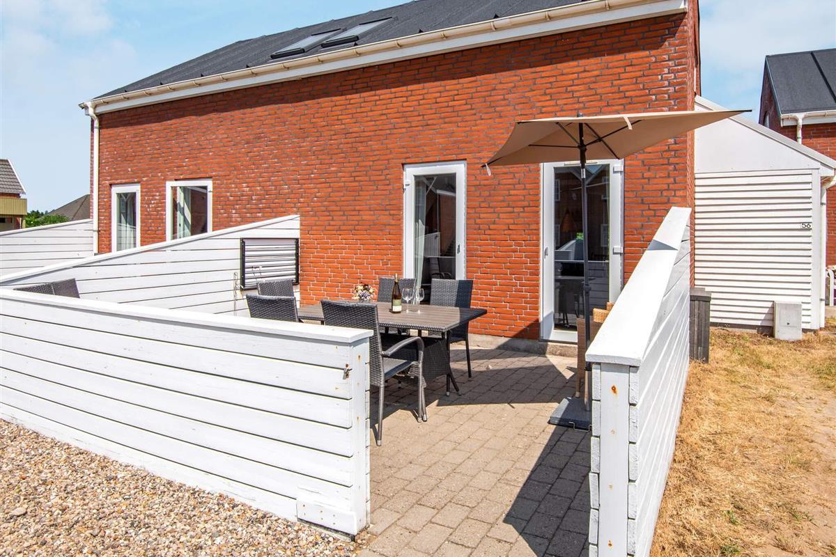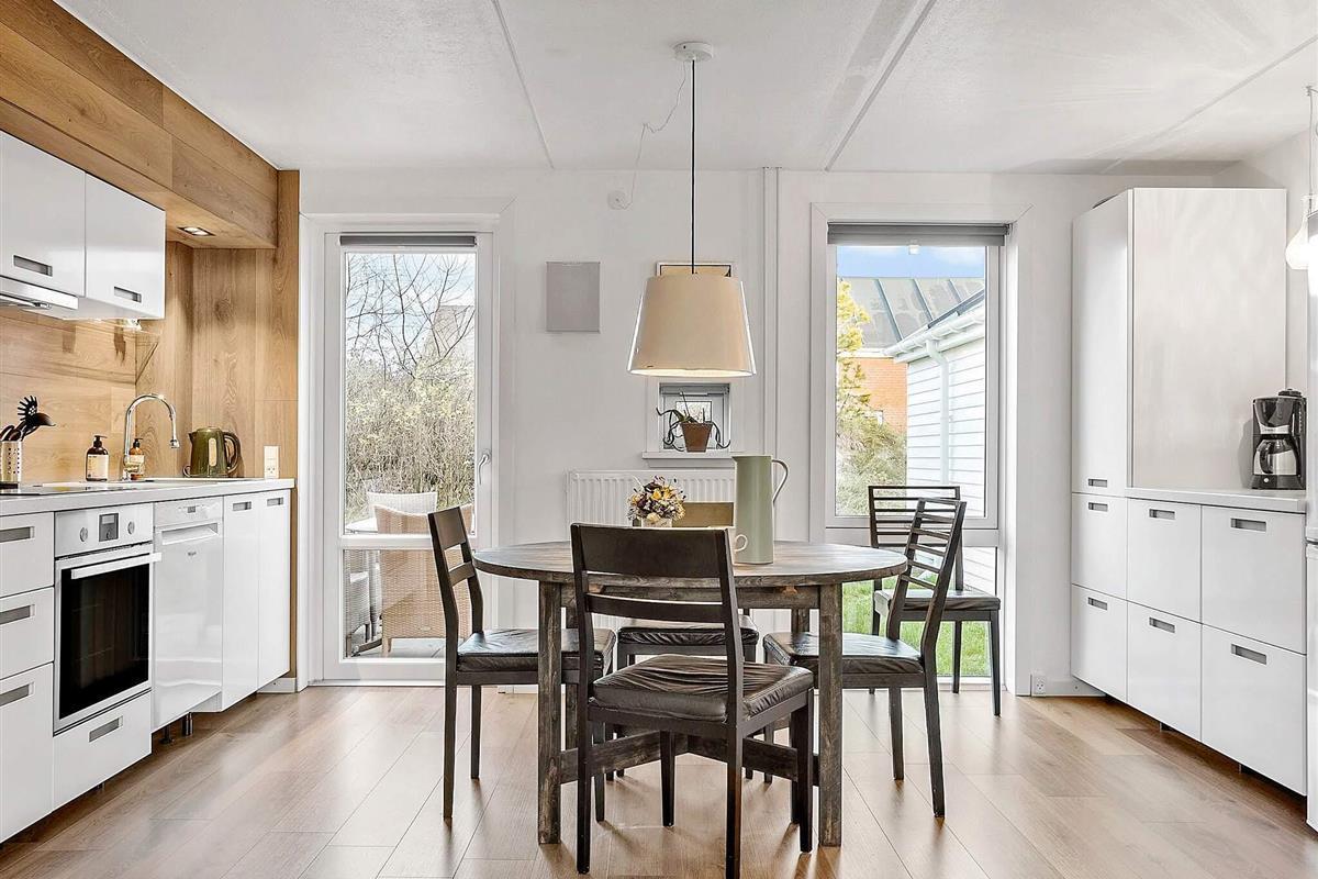 Renoviertes Reihenhaus im Feriecenter Rim auf der Insel Rømø mit vielen gemeinsamen Aktivitäten für Groß und Klein. Das 2018 instandt gesetzte Haus bietet zwei Etagen und hat einen guten, offenen Grundriss. Im Erdgeschoss befindet sich eine große, offene Wohnküche mit neuerer Kücheneinrichtung und direktem Zugang zur großen privaten Terrasse an der Rückseite des Hauses, wo Sie ungestört die Sonne genießen können. An der Vorderseite des Hauses befindet sich eine weitere Terrasse mit Gartenmöbeln. Oben in der 1. Etage liegen zwei Schlafzimmer; eines mit zwei Einzelbetten, die ggf. zusammengestellt werden können, das zweite mit Doppelbett und TV. Zudem schönes Badezimmer mit Dusche und Waschmaschine im Haus. Zwei extra Schlafplätze auf einer Schlafcouch im Wohnzimmer als Ausweichmöglichkeit.