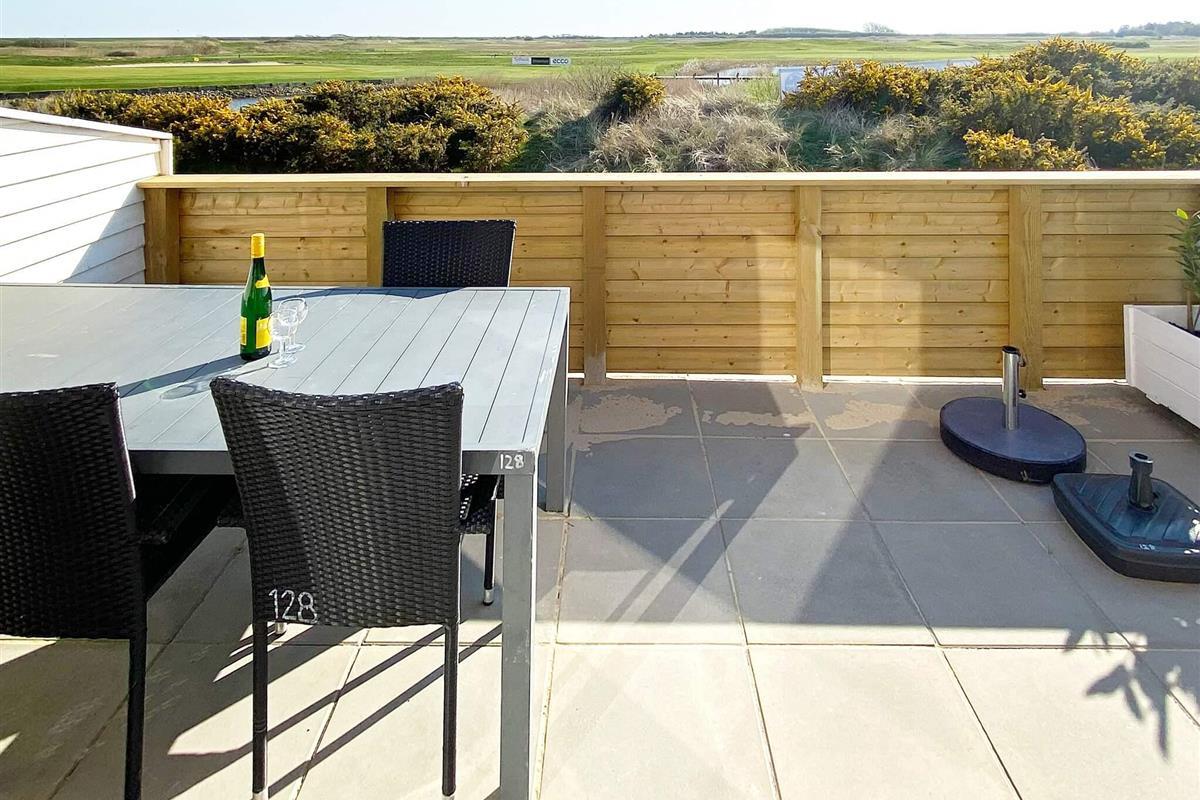 Vom Wohnzimmer aus haben Sie einen herrlichen Blick zum nahen Golfplatz und Zugang zu einer schönen großen Südterrasse, auf der Sie grillen können, während Sie die Aussicht zum Schiffsverkehr von und nach Havneby genießen. Auf dieser Terrasse scheint ab vormittags bis abends die Sonne. Wenn Sie Ihren Kindern lieber auf dem nächstgelegenen Spielplatz auf der beliebten Hüpfburg beim Spielen zusehen möchten, dann können Sie diese von der nach Norden ausgerichteten Terrasse vor dem Haus einsehen. Dort steht ein Tisch für den Morgen- oder Abendkaffee.