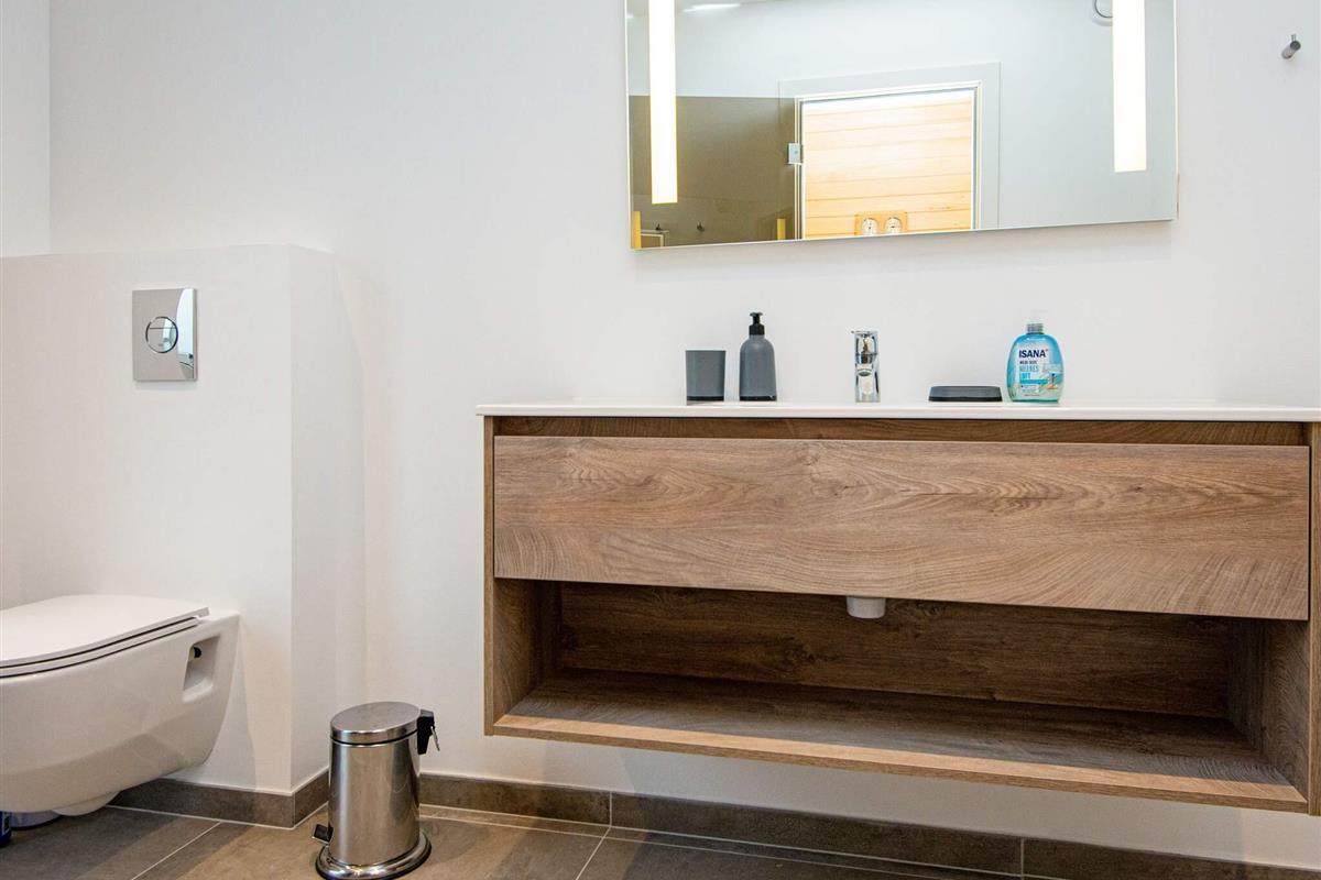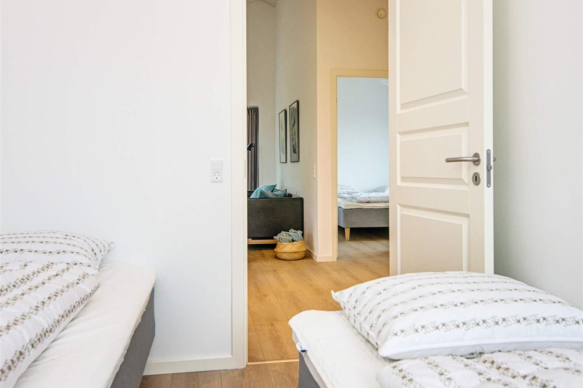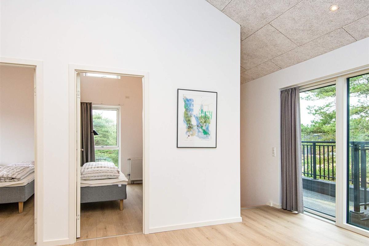 Es gibt insgesamt vier Schlafzimmer und zwei Badezimmer. Das Badezimmer im Erdgeschoss bietet Zugang zu einer Sauna. Im ersten Stock befindet sich ein Wohnzimmer mit Fernseher und Spielkonsole für Kinder und Junggebliebene. Von hier aus haben Sie Zugang zu einem schönen Balkon mit Blick auf die wunderschöne Plantagenlandschaft mit Heidekraut und flechtenbedeckten Dünen. Im Wohnzimmer bietet das Schlafsofa Platz für bis zu zwei Personen.